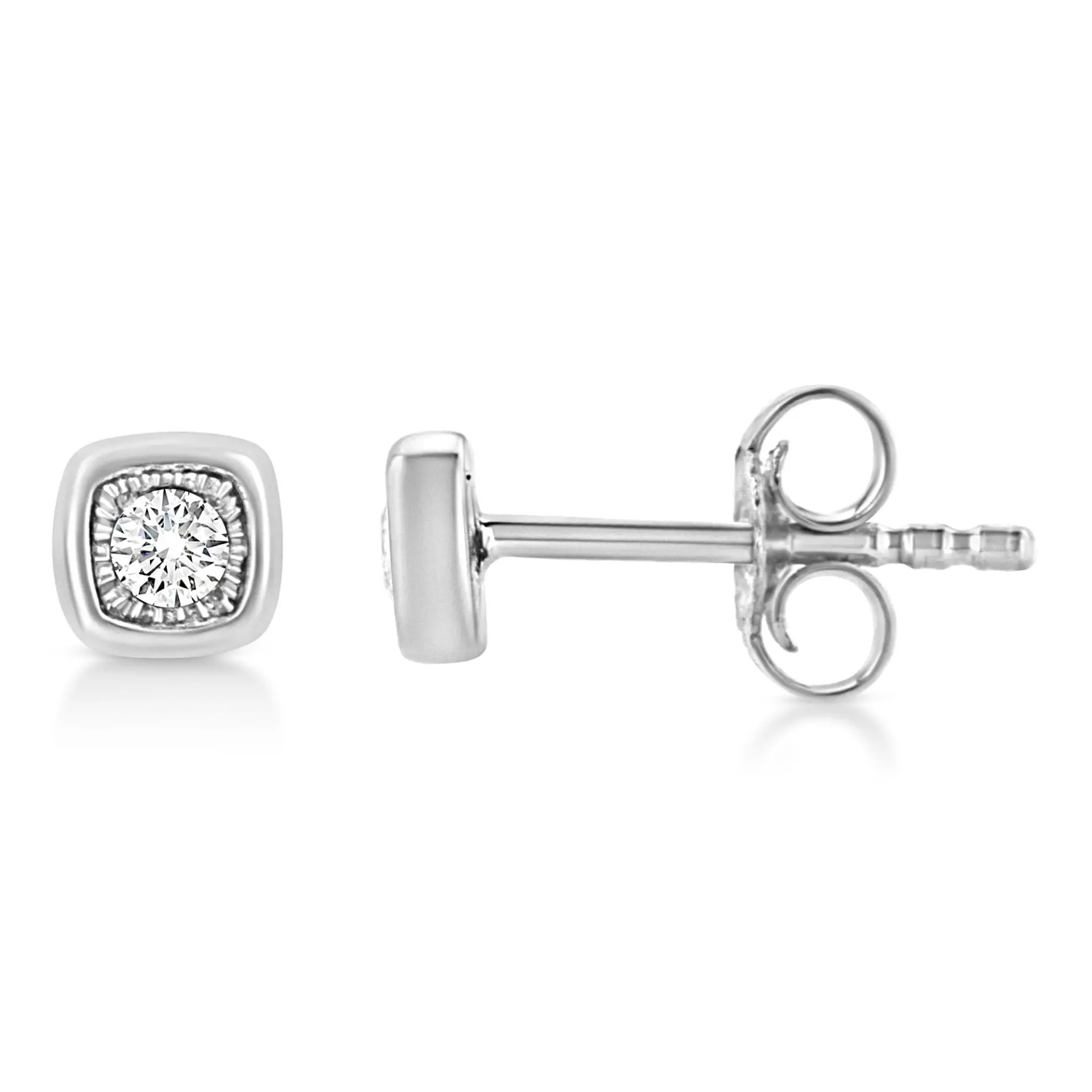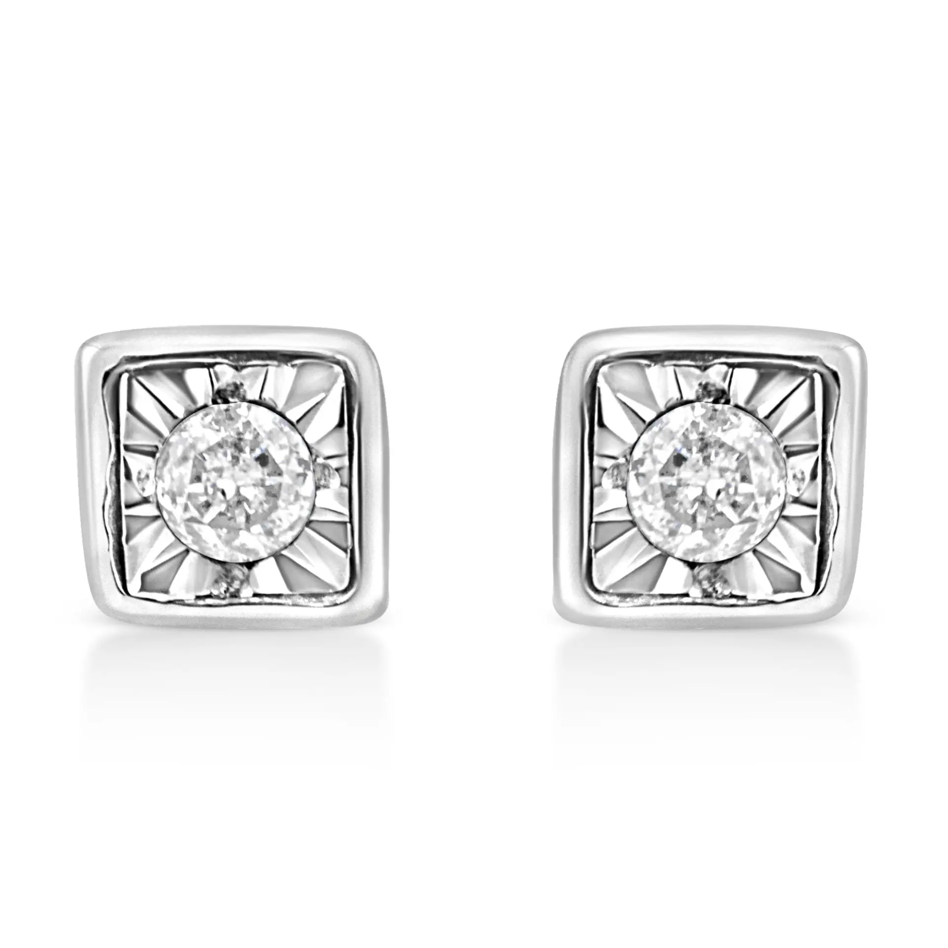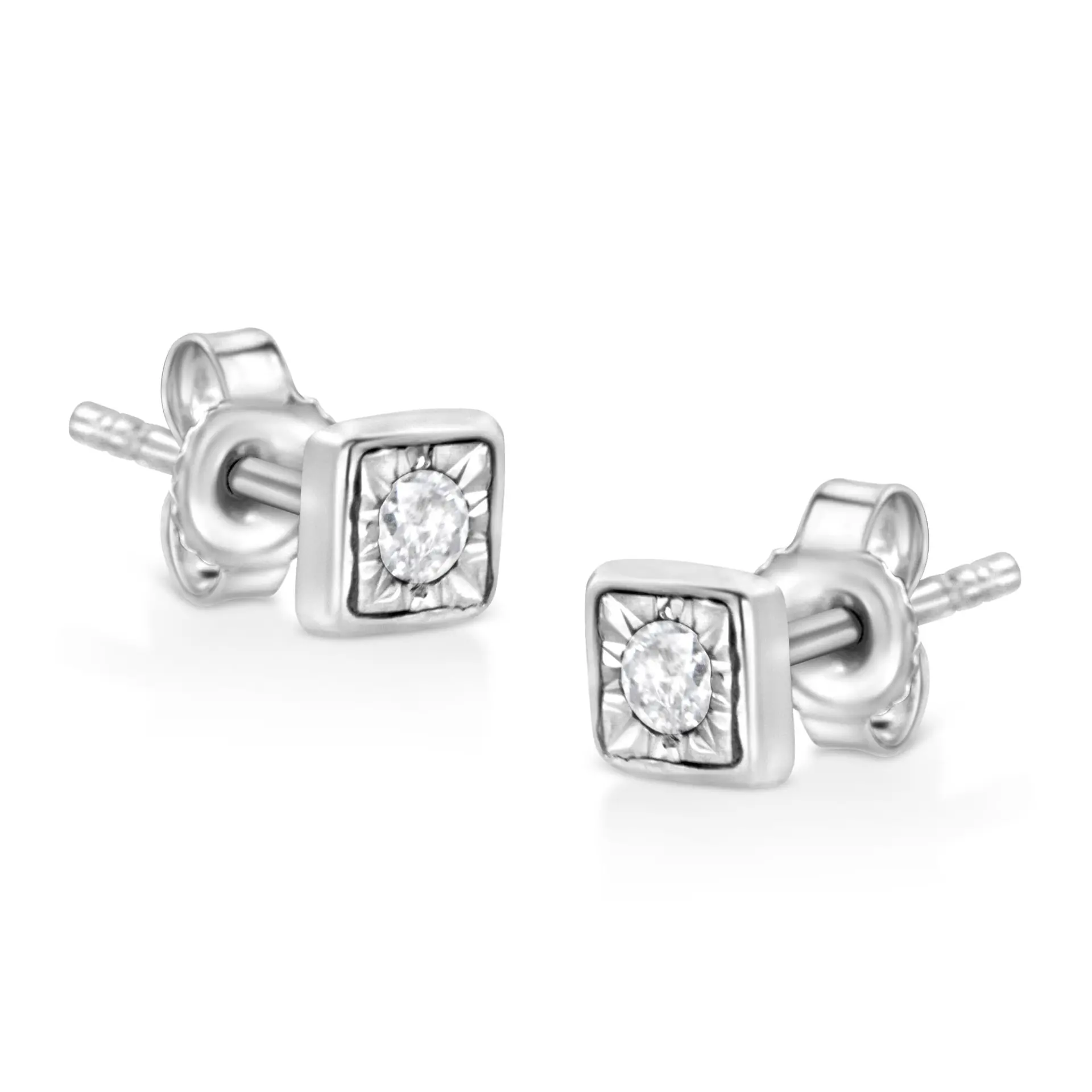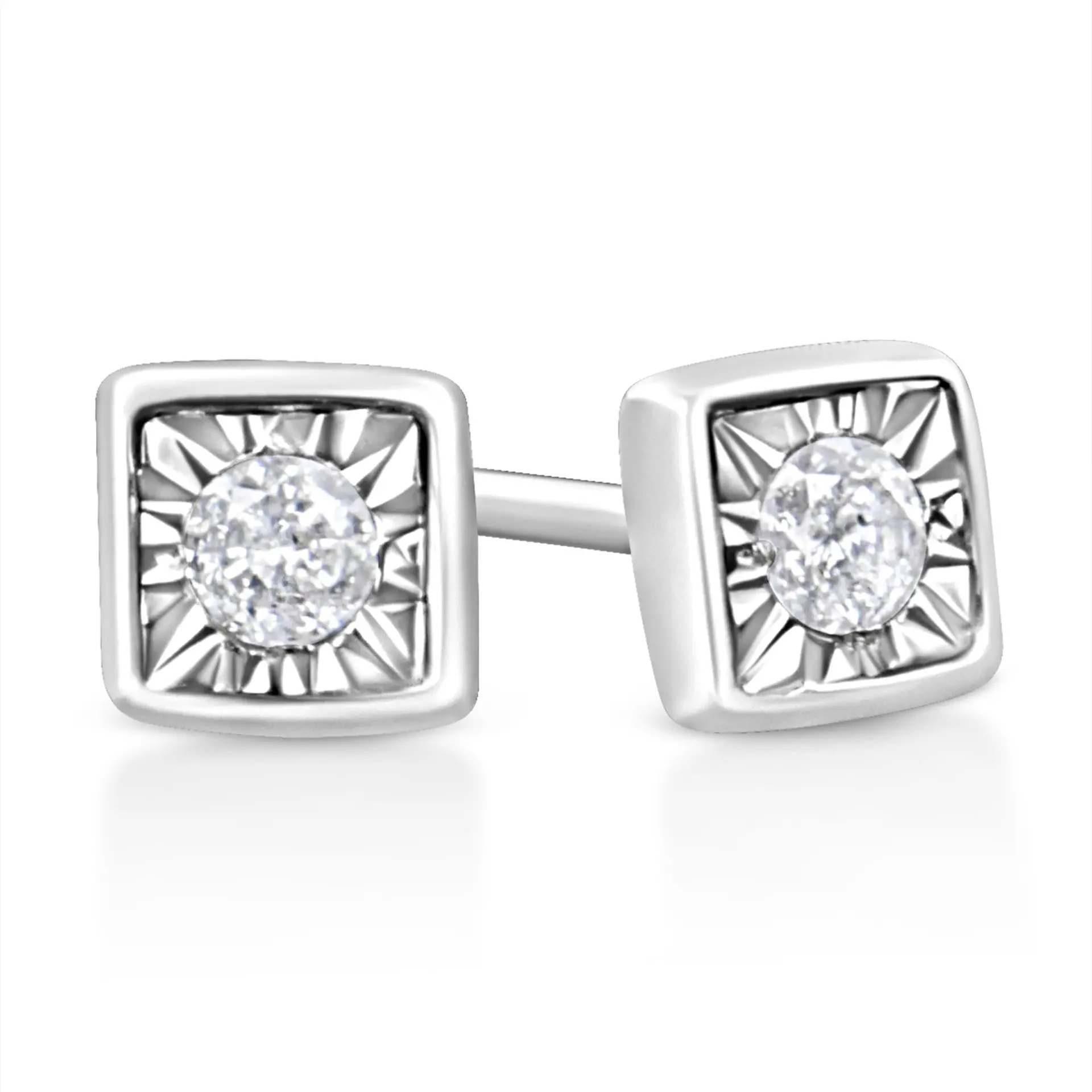 .925 Sterling Silver 1/10 Cttw Miracle-Set Diamond Stud Earrings (I-J Color, I2-I3 Clarity) – Choice of Shapes