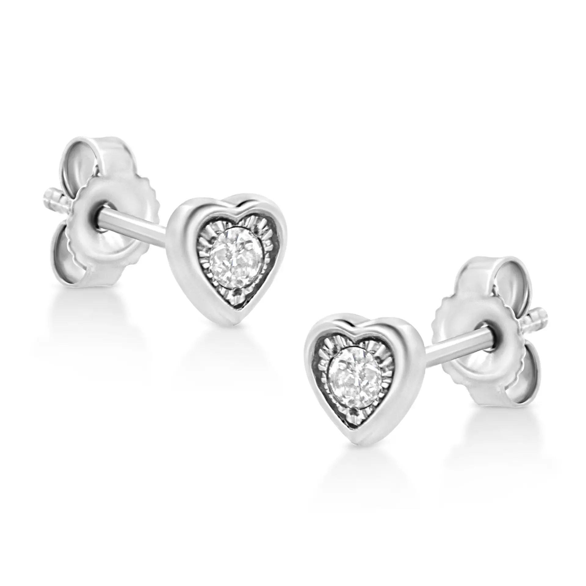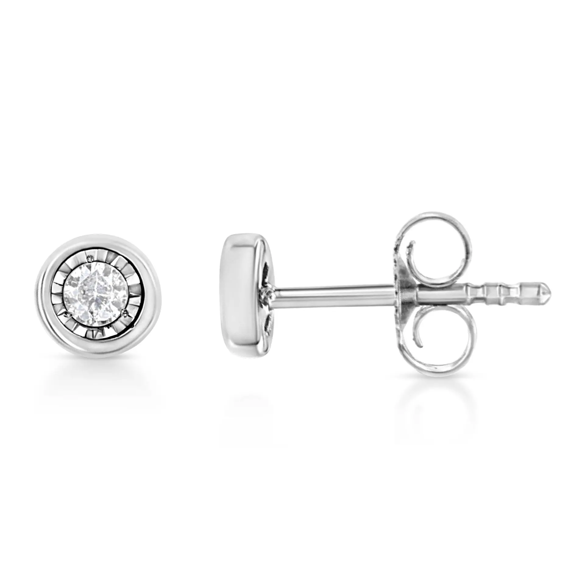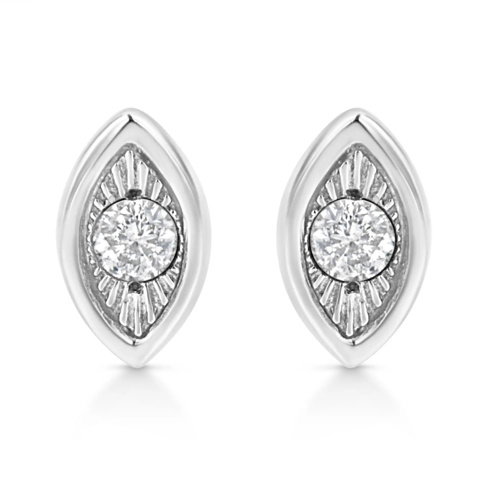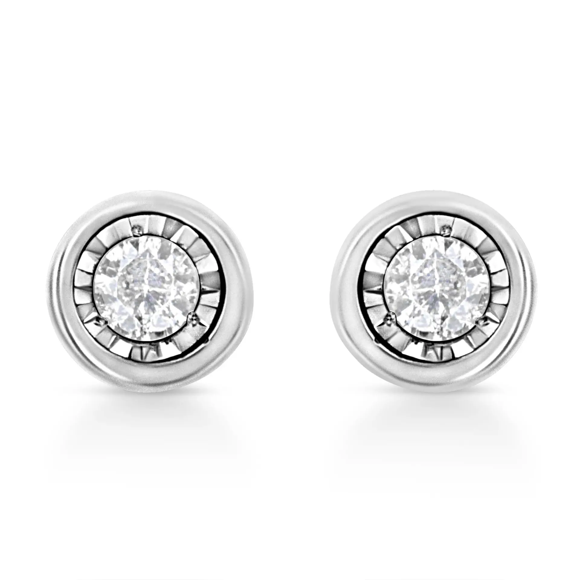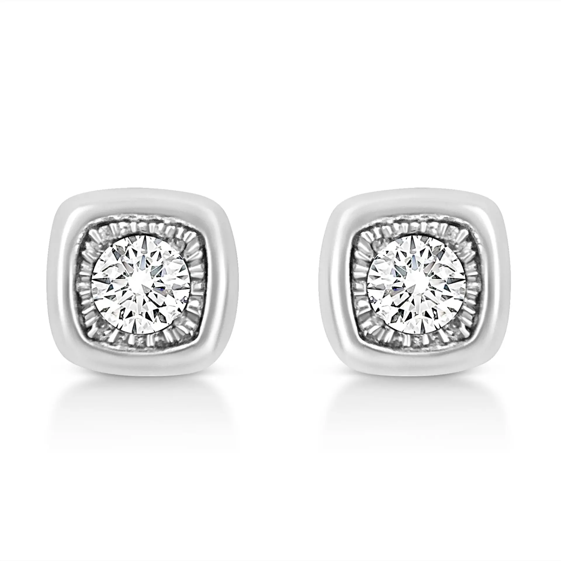 .925 Sterling Silver 1/10 Cttw Miracle-Set Diamond Stud Earrings (I-J Color, I2-I3 Clarity) – Choice of Shapes