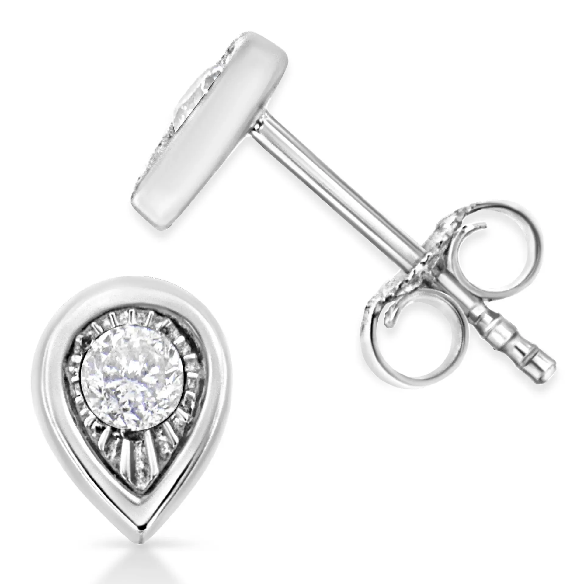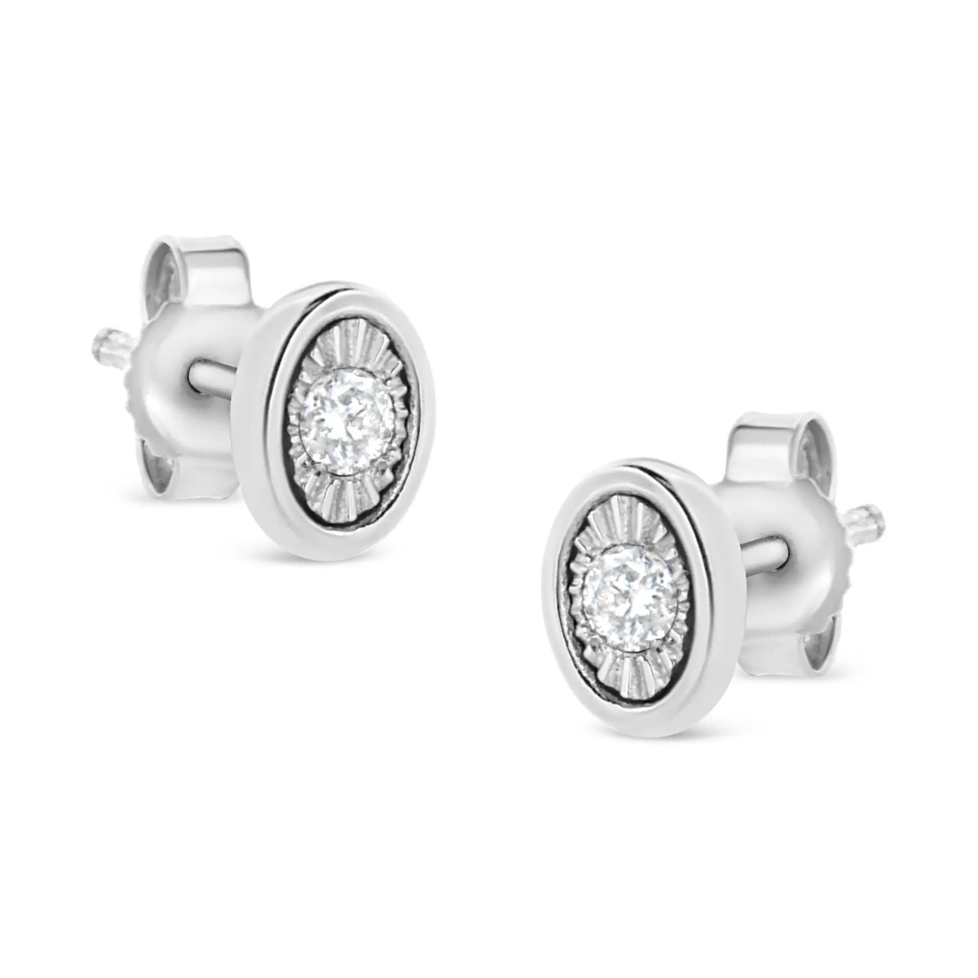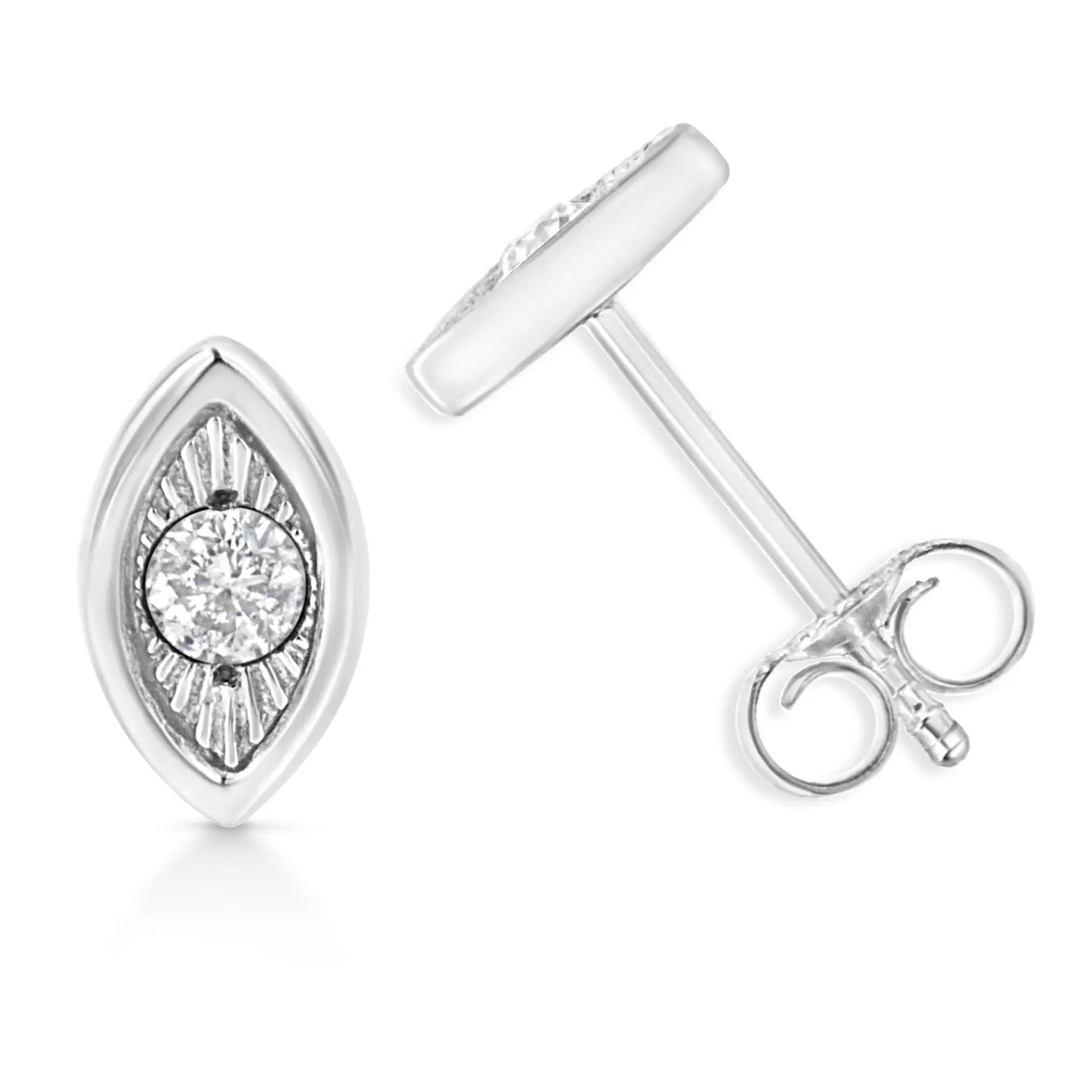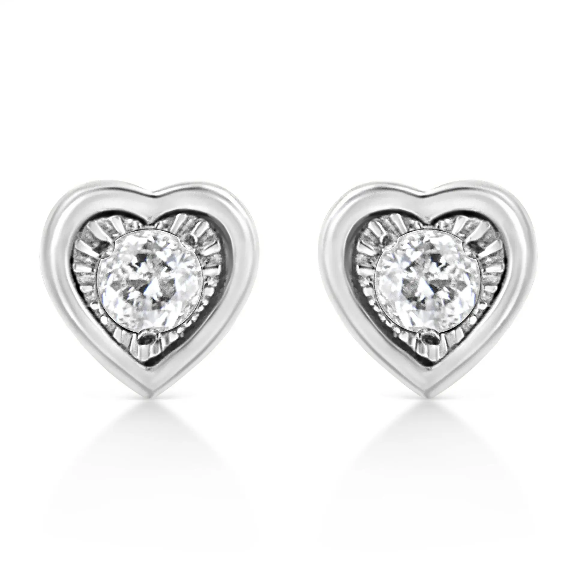 .925 Sterling Silver 1/10 Cttw Miracle-Set Diamond Stud Earrings (I-J Color, I2-I3 Clarity) – Choice of Shapes
