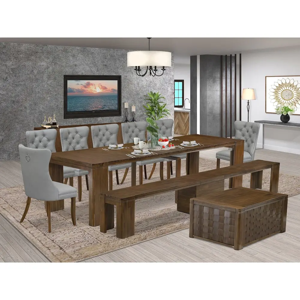 Discover Luxe by East West Furniture, our exclusive premium furniture brand, and immerse yourself in its unmatched sophistication. Luxe by East West Furniture introduces this 10-piece expandable dining set, placing a strong emphasis on versatility. It encompasses 7 dining chairs, 1 coffee table, 1 extendable dining bench, and an expandable dining table. This adaptability ensures you can precisely tailor your seating and table arrangement to meet your individual needs and preferences. Featuring an extendable table with an elegant Antique Walnut tabletop and legs that mirror the Antique Walnut finish of the coffee table, this dining set offers a cohesive and harmonious look. The dining chairs provide comfortable seating with Light Beige Linen Fabric upholstery, complemented by matching Antique Walnut legs. The bench seats maintain the timeless Antique Walnut finish. This carefully made dining set is expertly built from durable Acacia hardwood, ensuring long-lasting use and maintaining its attractive appearance. Your kitchen’s modern dining set features elegant chairs with premium Linen Fabric seats and stylishly designed backrests.