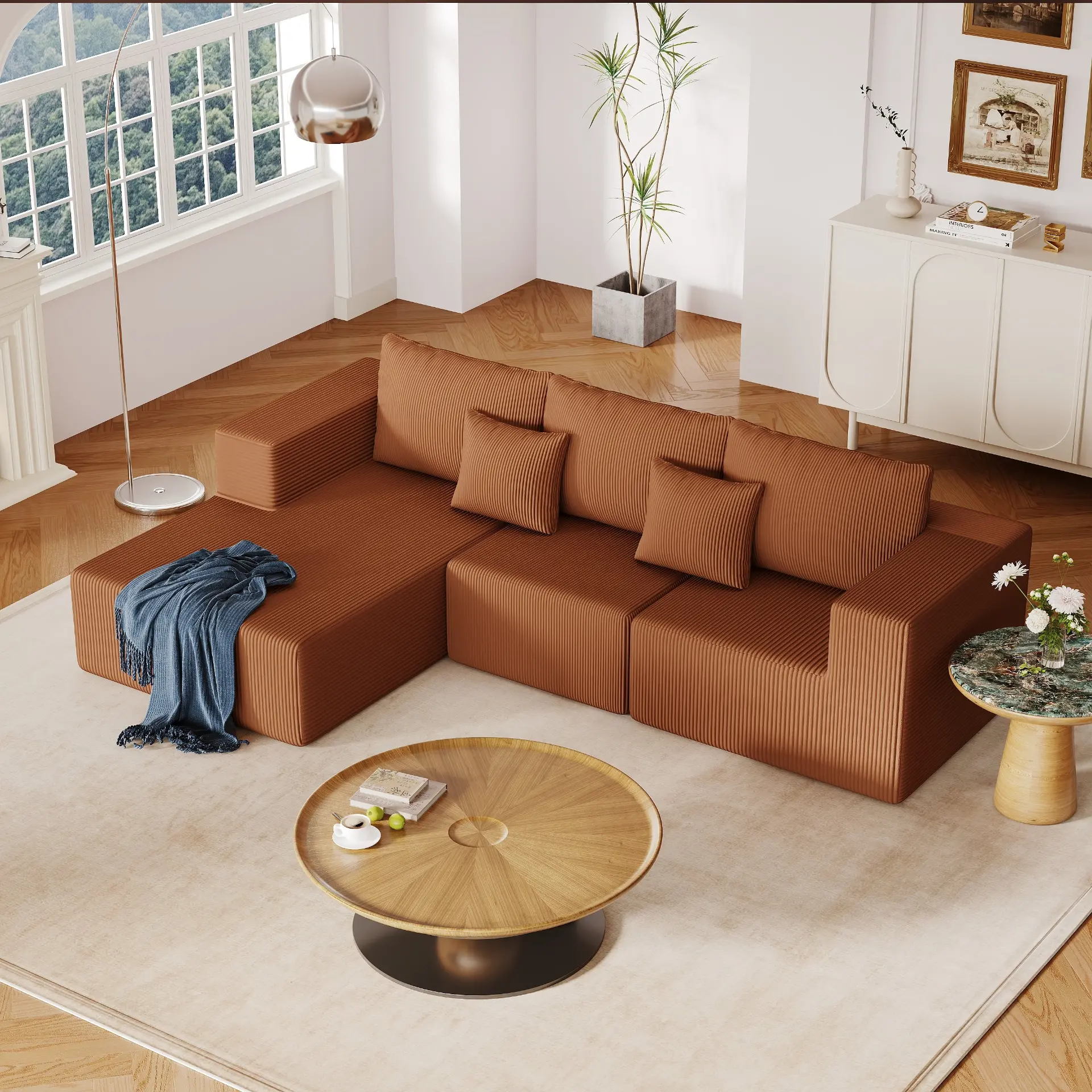 108.3′ Sectional Foam Couch,L Shape Sofa with Chaise Lounge,Modular Cloud Sofa for Living Room,Upholstered Corduroy Couch Reddish Brown