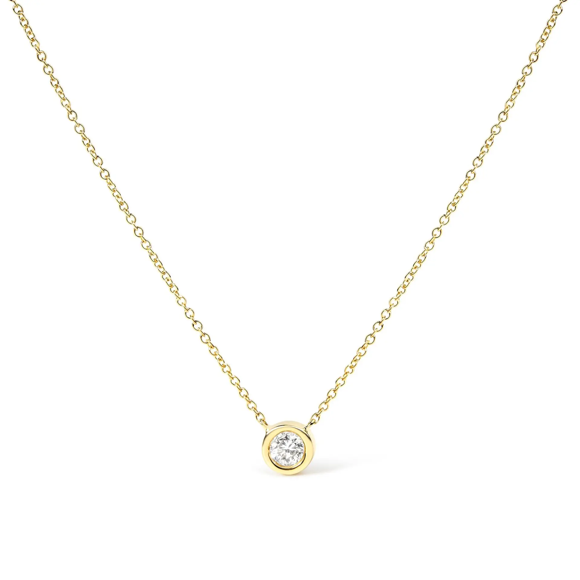 10K Gold 1/10 Carat Round Brilliant-Cut Diamond Modern Bezel-Set Solitaire 16″-18″ Pendant Necklace