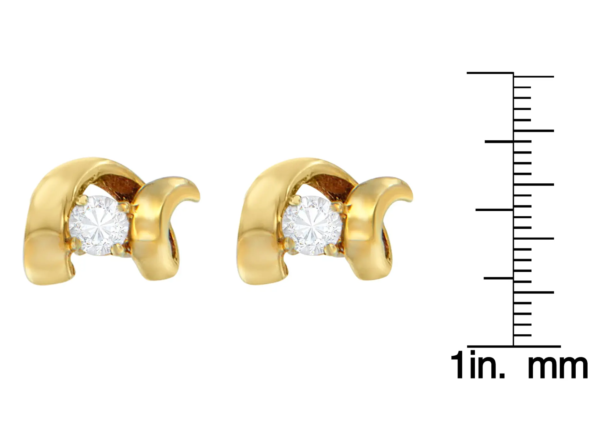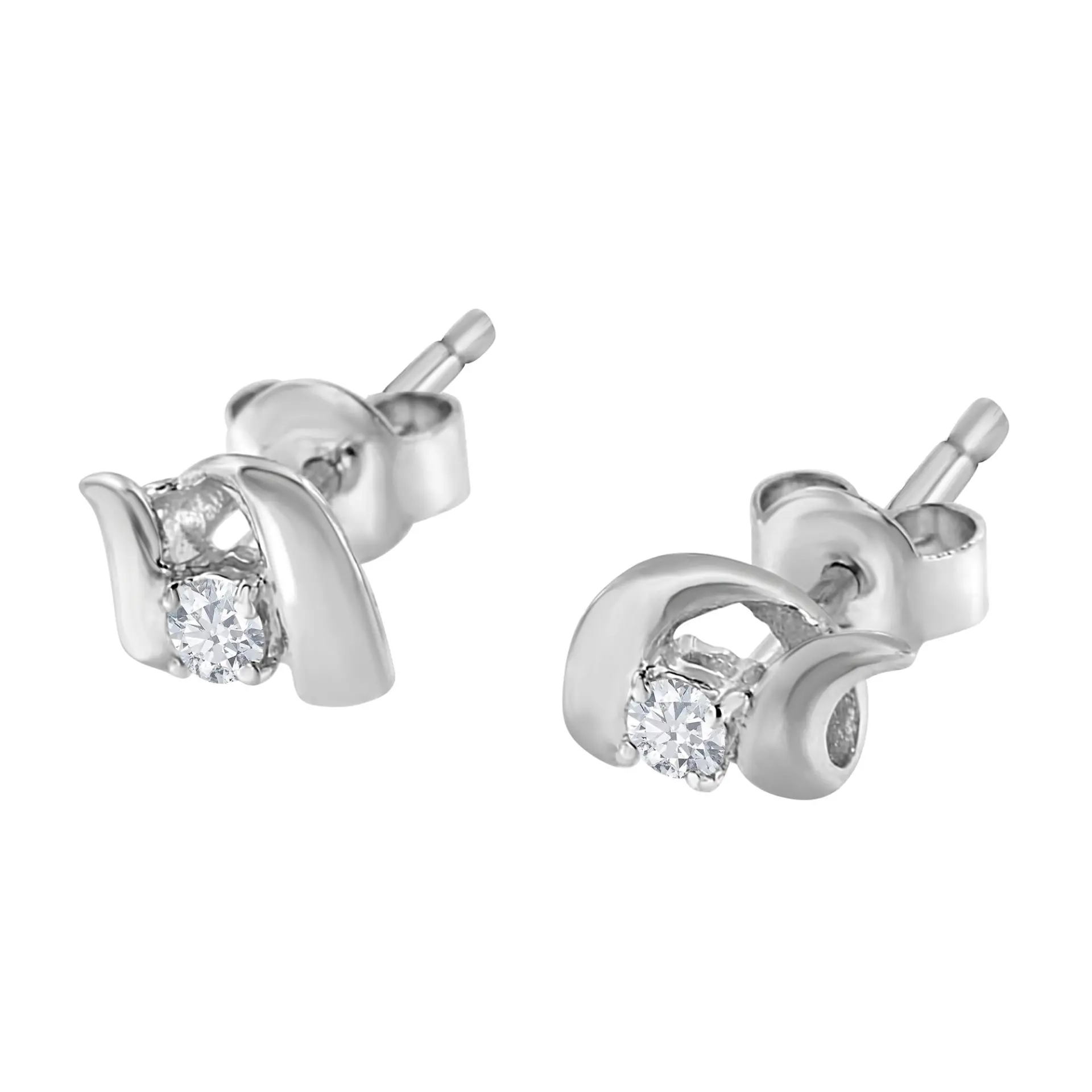 Elegant and timeless, these gorgeous 10K gold solitaire stud earrings feature round, brilliant cut diamonds held inside a curl of gold. The earrings feature pushback closures with notched posts and friction backs for secure, comfortable wear all day long. This authentic design is crafted of your choice of real 10 karat white or yellow gold, a precious metal that will keep a tarnish-free shine for years to come. These twist stud earrings make a great gift for any special occasion! These stud style earrings are subtle enough for casual affairs but sparkle in formal settings as well. Coordinate these earrings with your favorite diamond necklace or other diamond jewelry to create a complete ensemble.