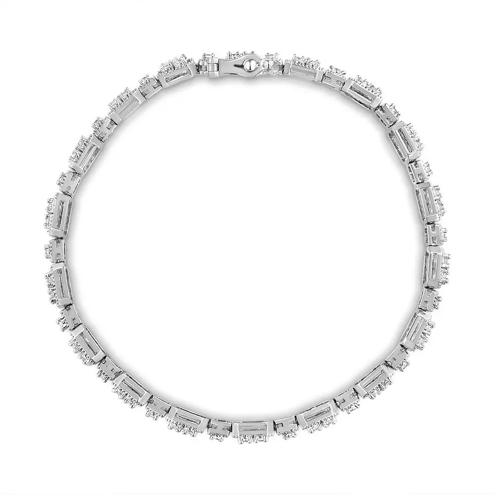Showcasing a glamorous look to illuminate your every style choice, this stylish link bracelet features an array of shimmering diamonds in a square silhouette for a modern edge. This sophisticated design showcases square-shaped links of alternating sizes, each outlined with intricate milgrain borders. The larger boxed squares feature four, prong-set round diamonds, while the smaller squares each feature just one diamond. This geometric motif is certain to elevate your style and mood with its sparkling array of diamonds of which total 2.0 cttw and hold an approximate J-K Color and I2-I3 Clarity. Crafted of genuine 10k white gold, this elegant piece fastens securely with a box with clasp. It is 7.25 inches long, best for small and medium sized wrists.