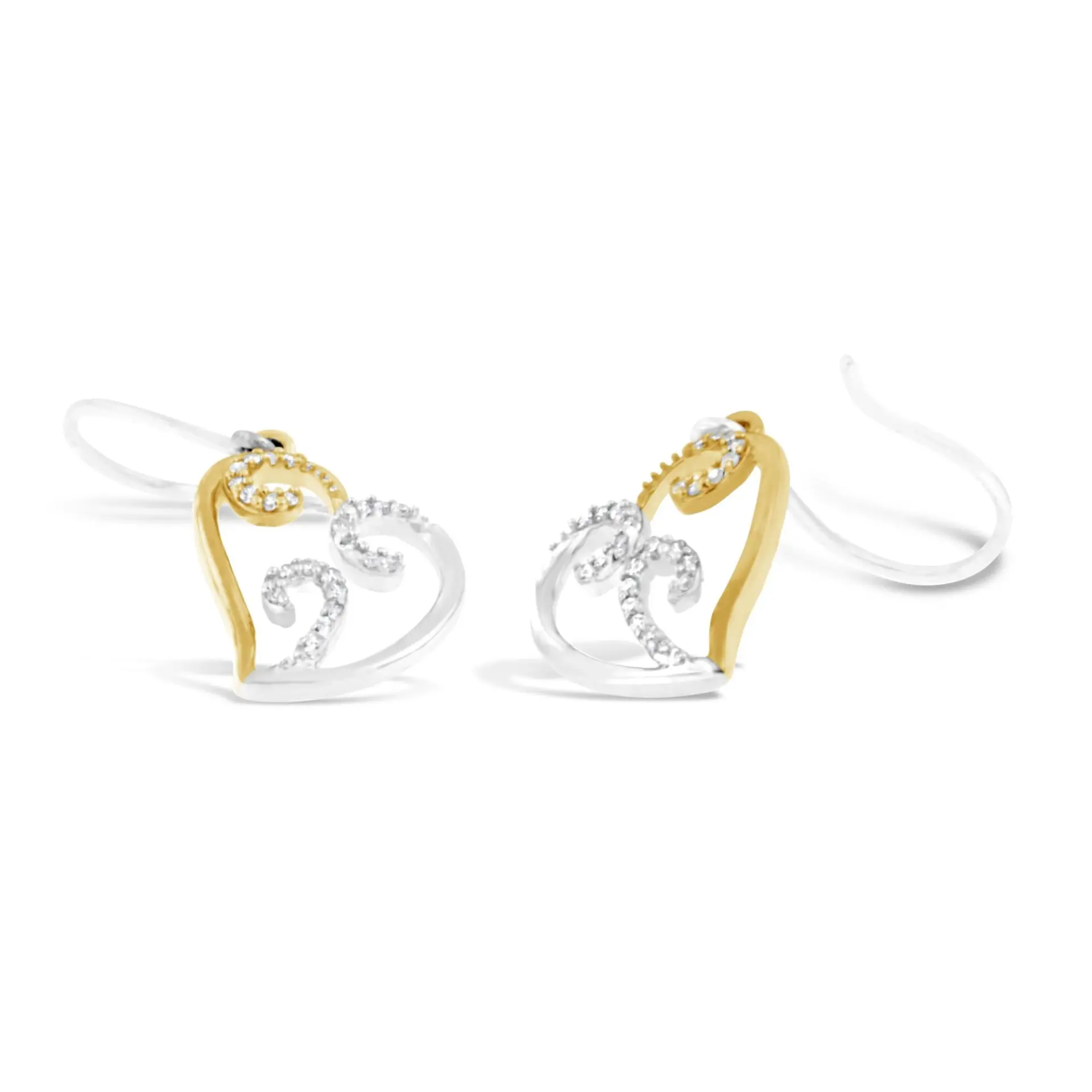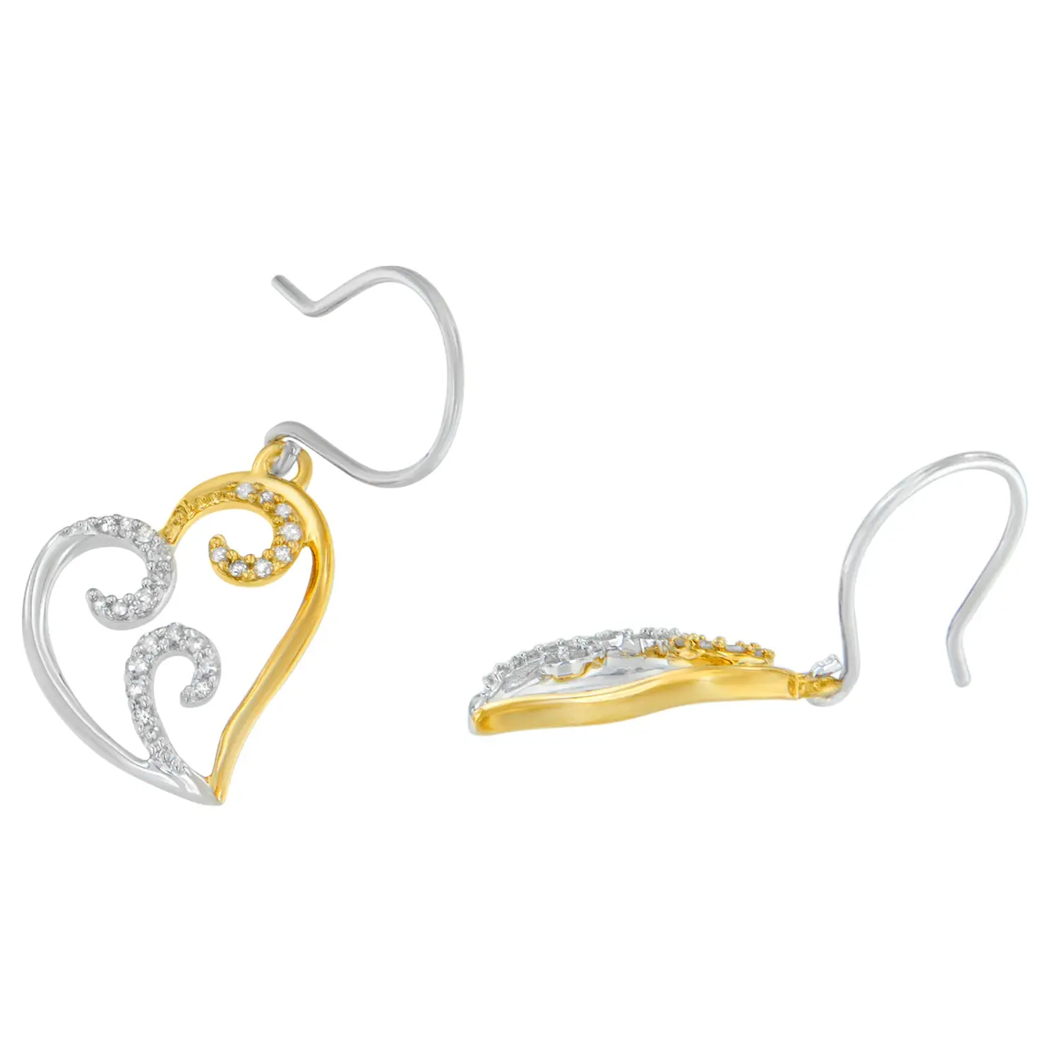 10K Two-tone Gold Round Diamond Heart Dangle Earrings (1/4 cttw, I-J Color, I2-I3 Clarity)