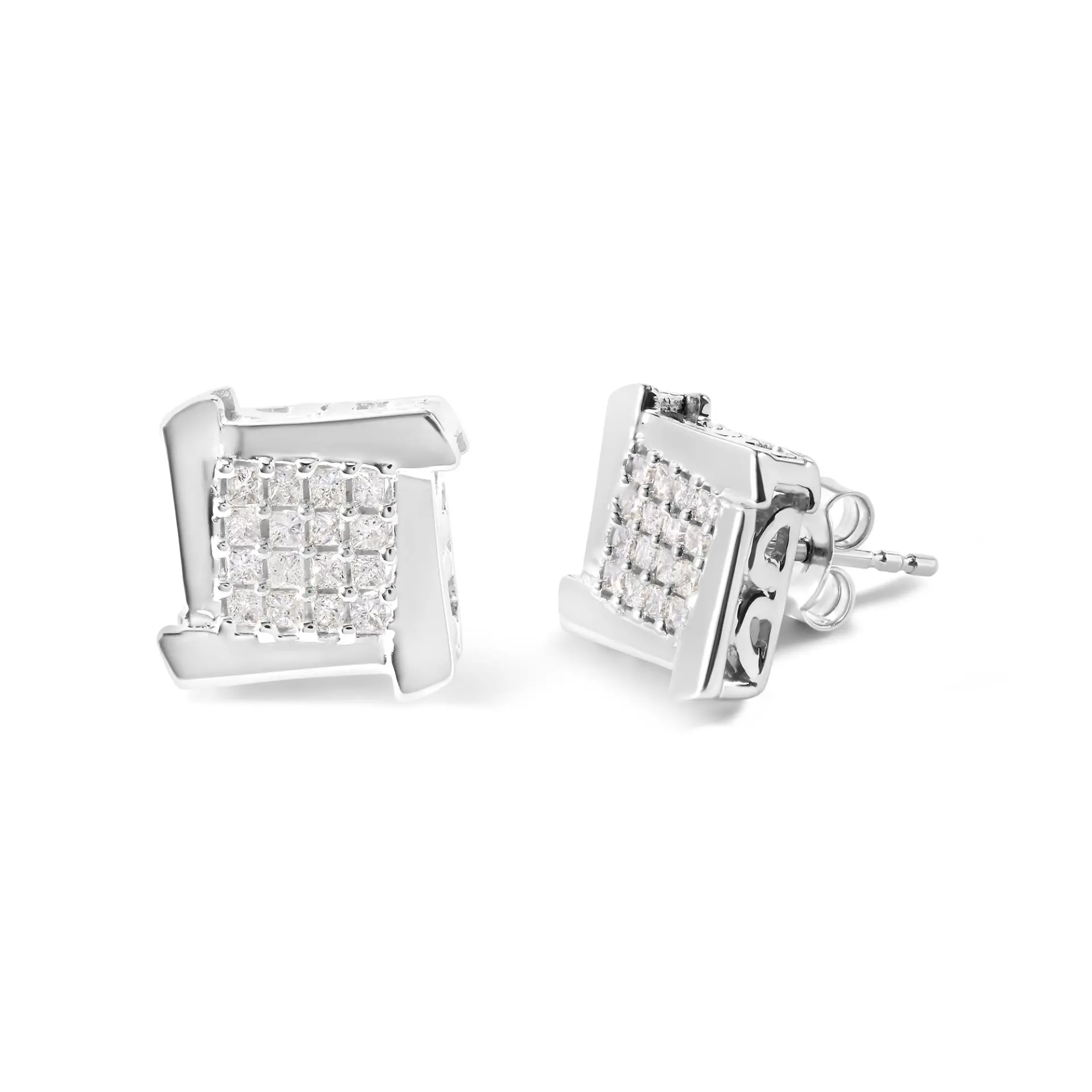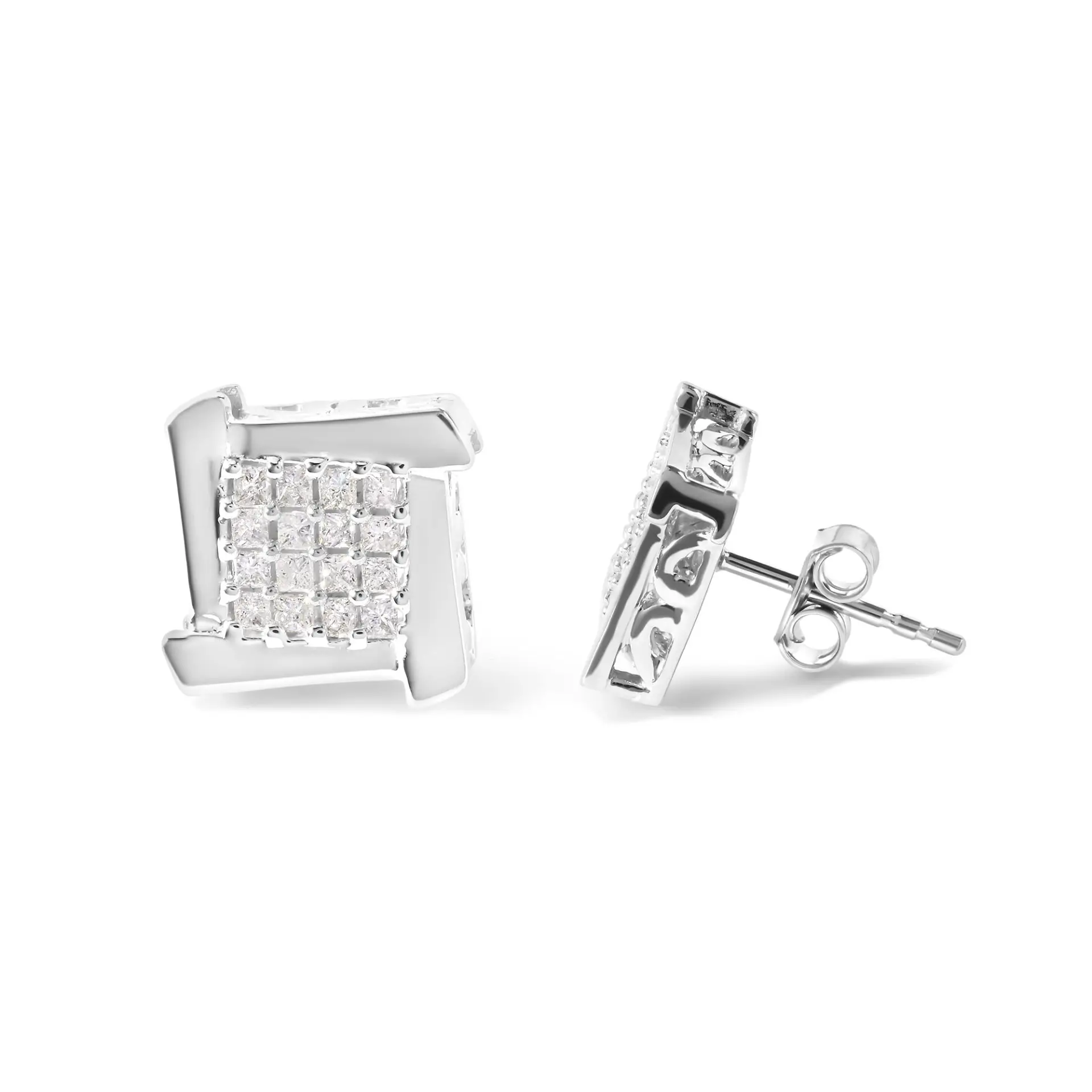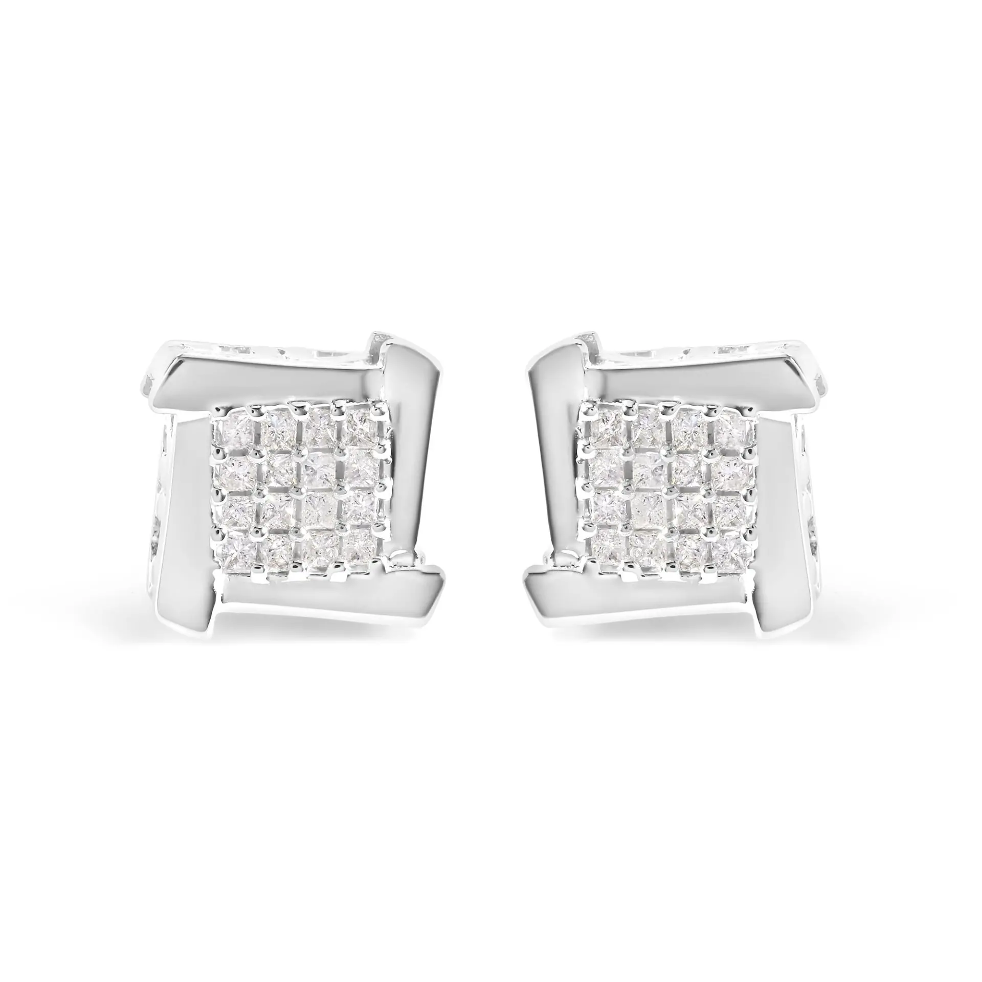 10K White Gold 1/2 Cttw Composite Princess Diamond Square and Swirl Stud Earrings (I-J Color, I1-I2 Clarity)