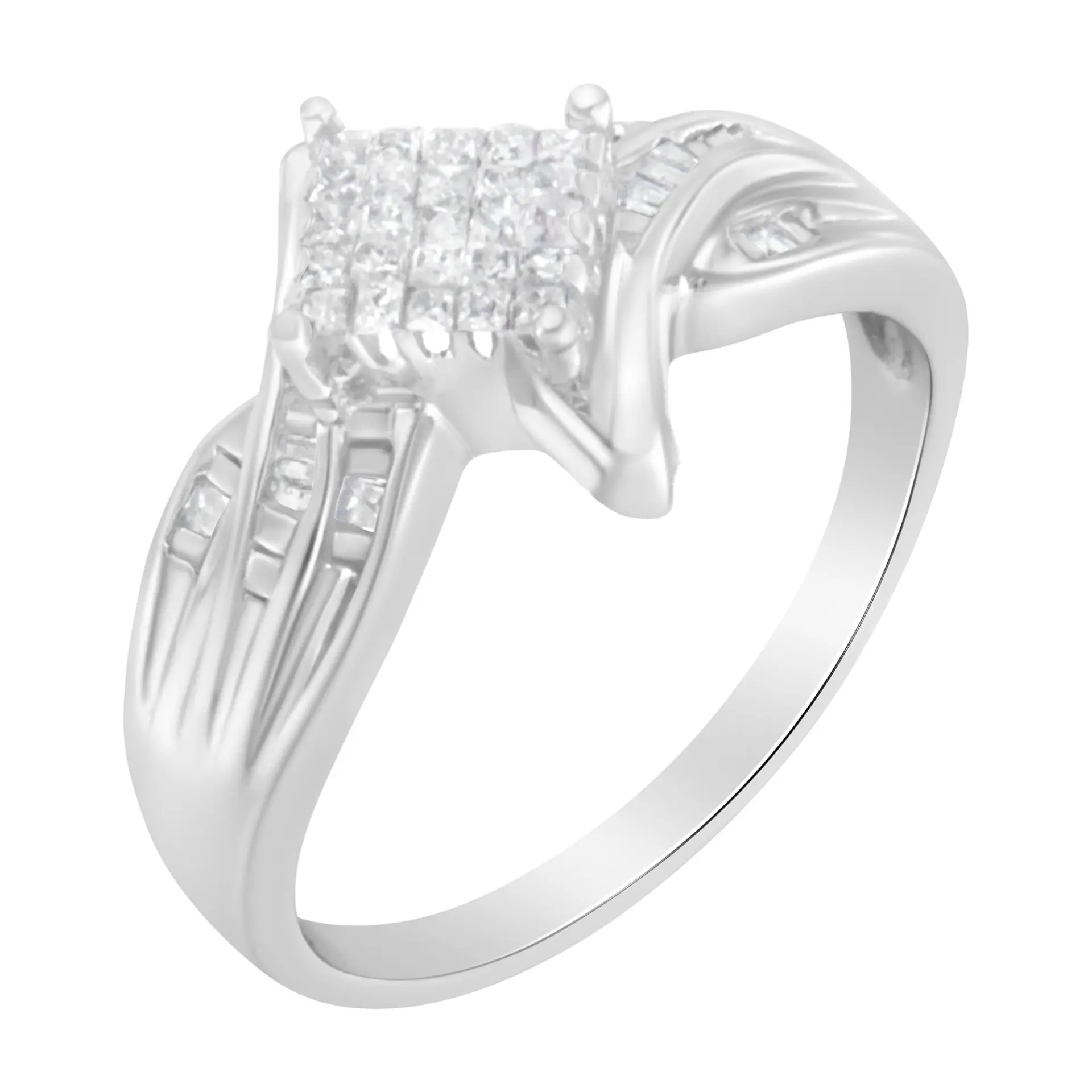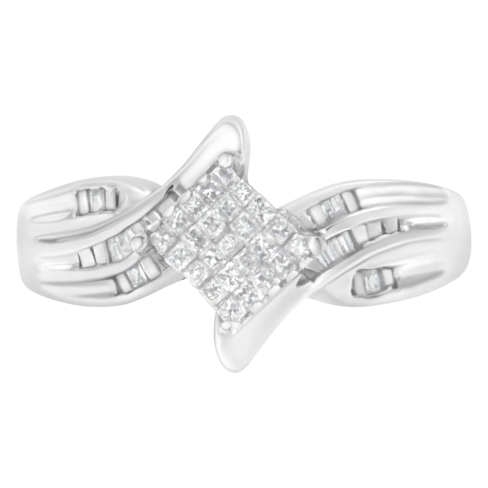 10K White Gold 1/3 Cttw Princess and Baguette Cut Diamond Bypass Style Cocktail Ring (I-J Color, I1-I2 Clarity)