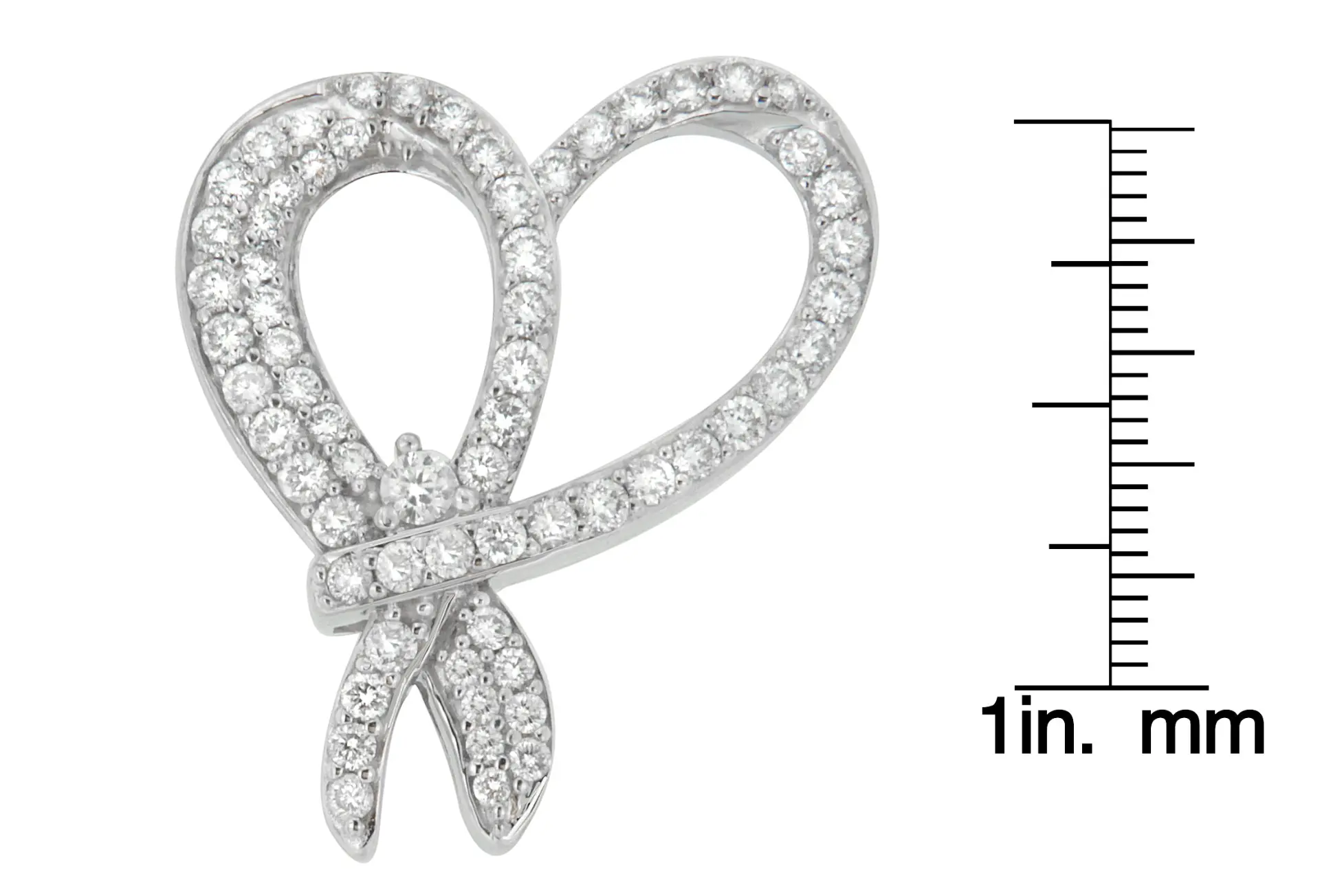Embrace your feminine side with this radiant heart bow pendant. Chiseled to perfection, the piece of jewelry is crafted of 10 karats white gold and is finely polished with grace. It is adorned with gleaming one karat of round cut diamonds, which is set in white gold. Whatever the occasion is, this pendant makes a perfect selection to wear with any outfit.