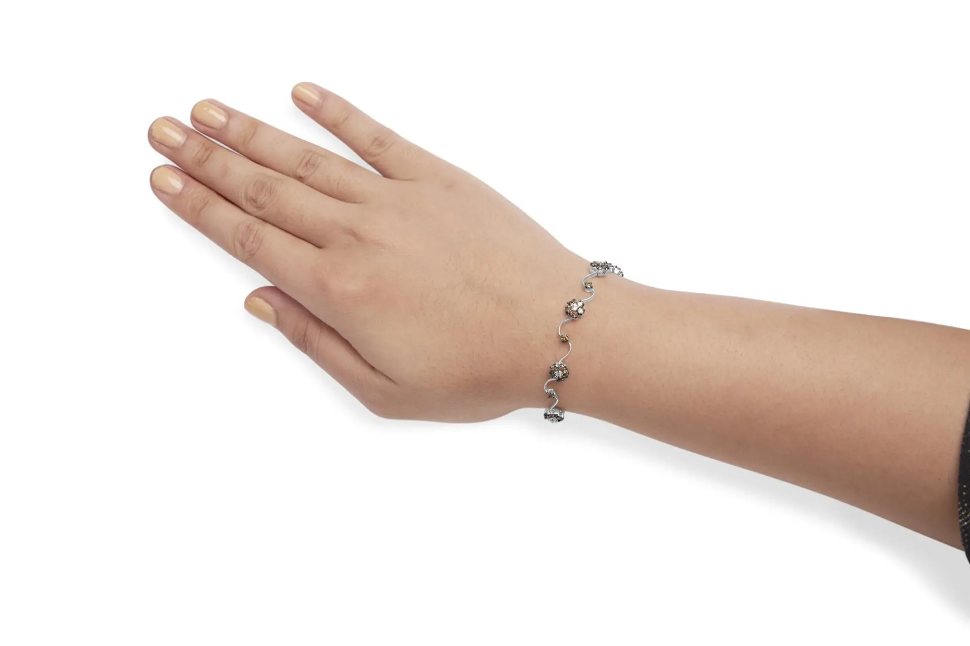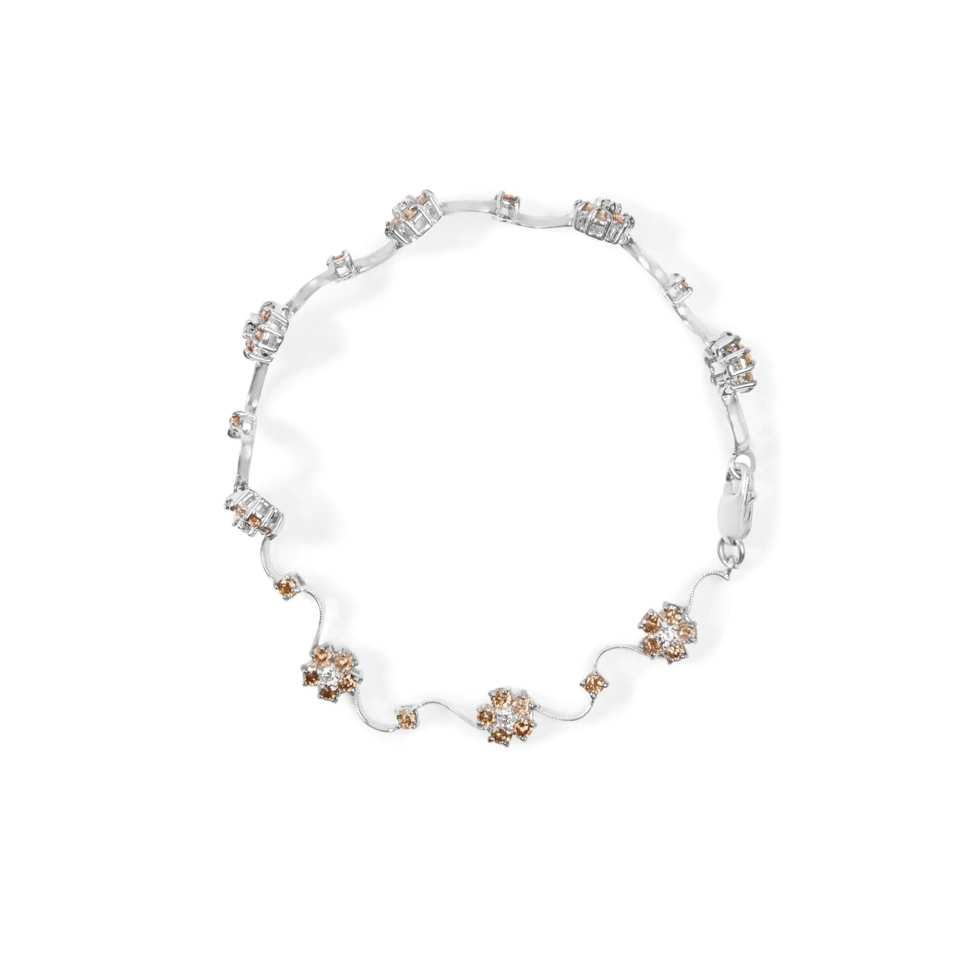 Encapsulate grace around your wrist with this exquisite 10K white gold floral cluster bracelet, a masterpiece of craftsmanship and design. Plated with luminous rhodium for a sleek, timeless finish, this 7-inch piece embodies elegance in motion. Its unique design features delicate clusters and stations of radiant champagne and sparkling white diamonds, totaling an impressive 4.0 carats. These natural diamonds, meticulously color-treated to enrich their champagne hues, dance in harmony with light, cascading a spectrum of dazzling reflections. The bracelets secure lobster claw clasp ensures that this stunning arrangement of H-I color and SI2-I1 clarity diamonds remains a part of your collection for a lifetime.