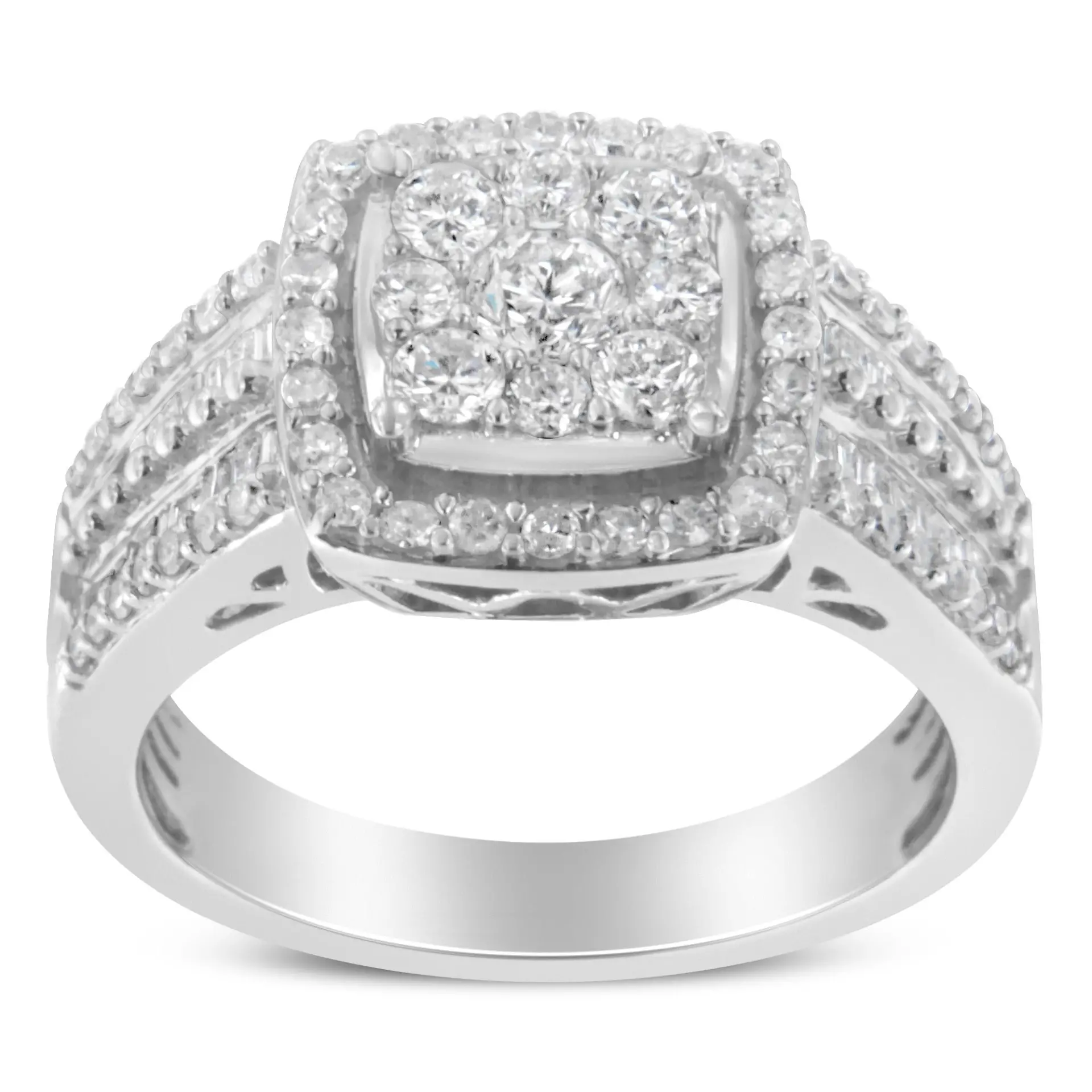 10K White Gold Diamond Cluster Ring (1 Cttw, H-I Color, I1-I2 Clarity)