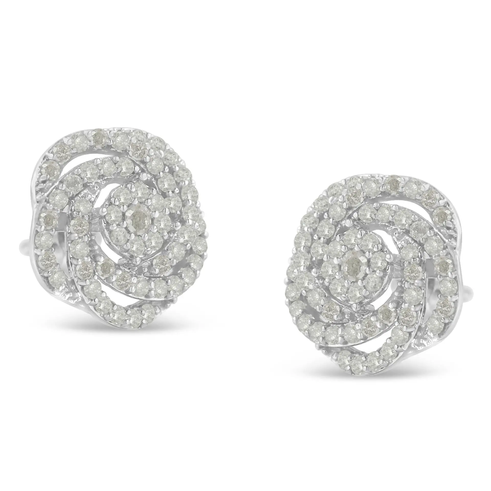 Dazzle all those around you with this white gold, rose shaped cluster stud earrings. Composed of 108 round cut diamonds that make up a total of 1 ct., this piece is meticulously designed to add a bit of shimmer to her face. Give a touch of elegance to any outfit, casual or formal, with these fabulous studs. Set in a prong setting, these studs come with a push back mechanism for a secure fit.