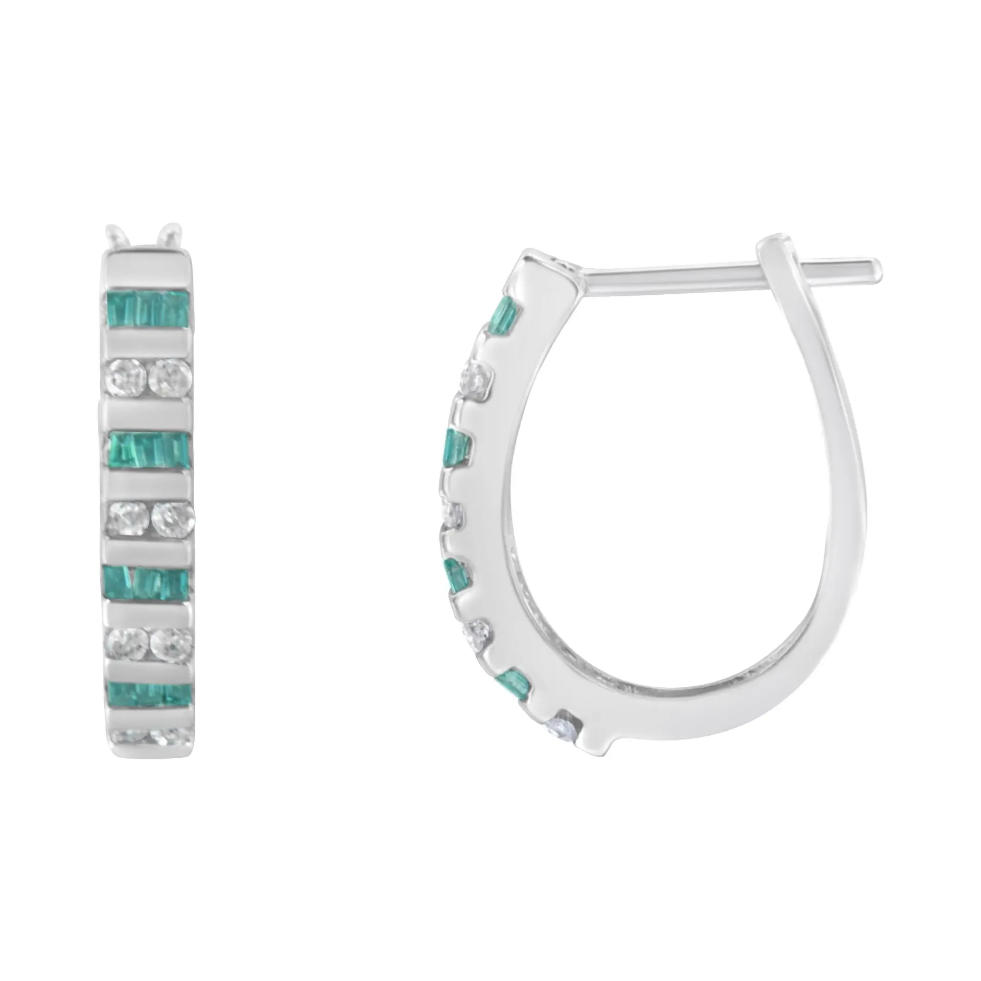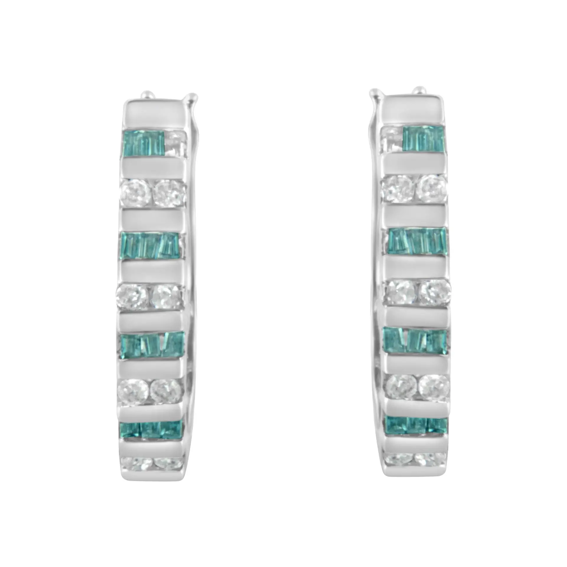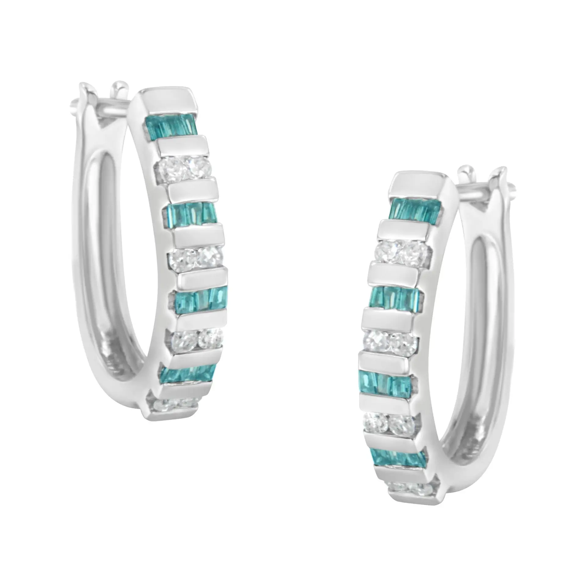 10k White Gold Round and Blue Baguette Diamond Hoop Earrings (0.50 cttw, I-J Color, I2-I3 Clarity)