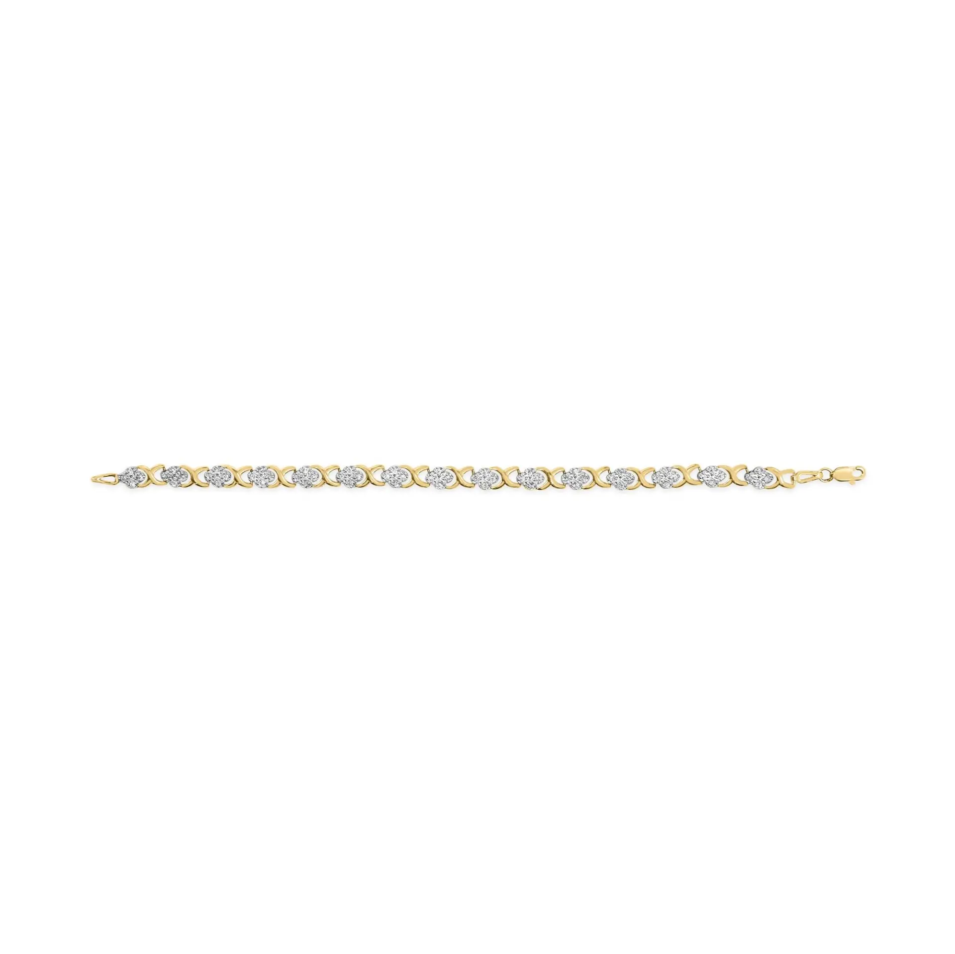 10K Yellow Gold 1.00 Cttw Diamond 5 Stone Floral Cluster and “X” Link 7″ Bracelet (I-J Color, I3 Clarity)