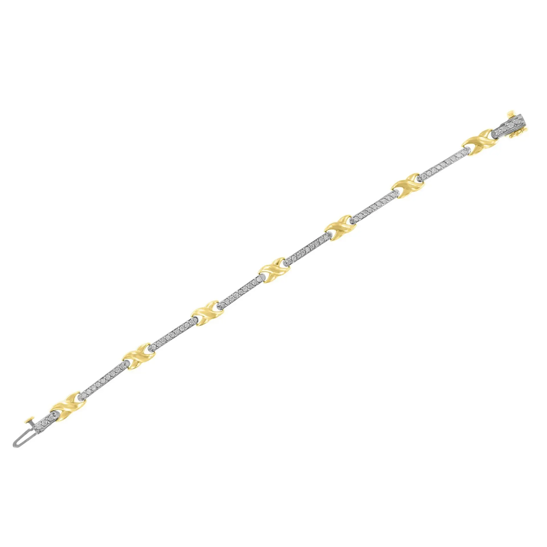 This stunning 10K yellow gold bracelet is a must-have for any trendy lady. With a total diamond weight of 1.00 cttw and embellished with 61 round, natural diamonds, this pave set X-link bracelet is sure to be eye-catching. The I-J color diamonds sparkle brilliantly against the yellow gold setting. The prong setting ensures that the diamonds are securely in place, while the lobster claw clasp makes it easy to put on and take off. This bracelet is perfect for any occasion, whether it’s a night out on the town or a casual day at the office. Don’t miss out on this beautiful piece of jewelry that will make you feel confident and chic.