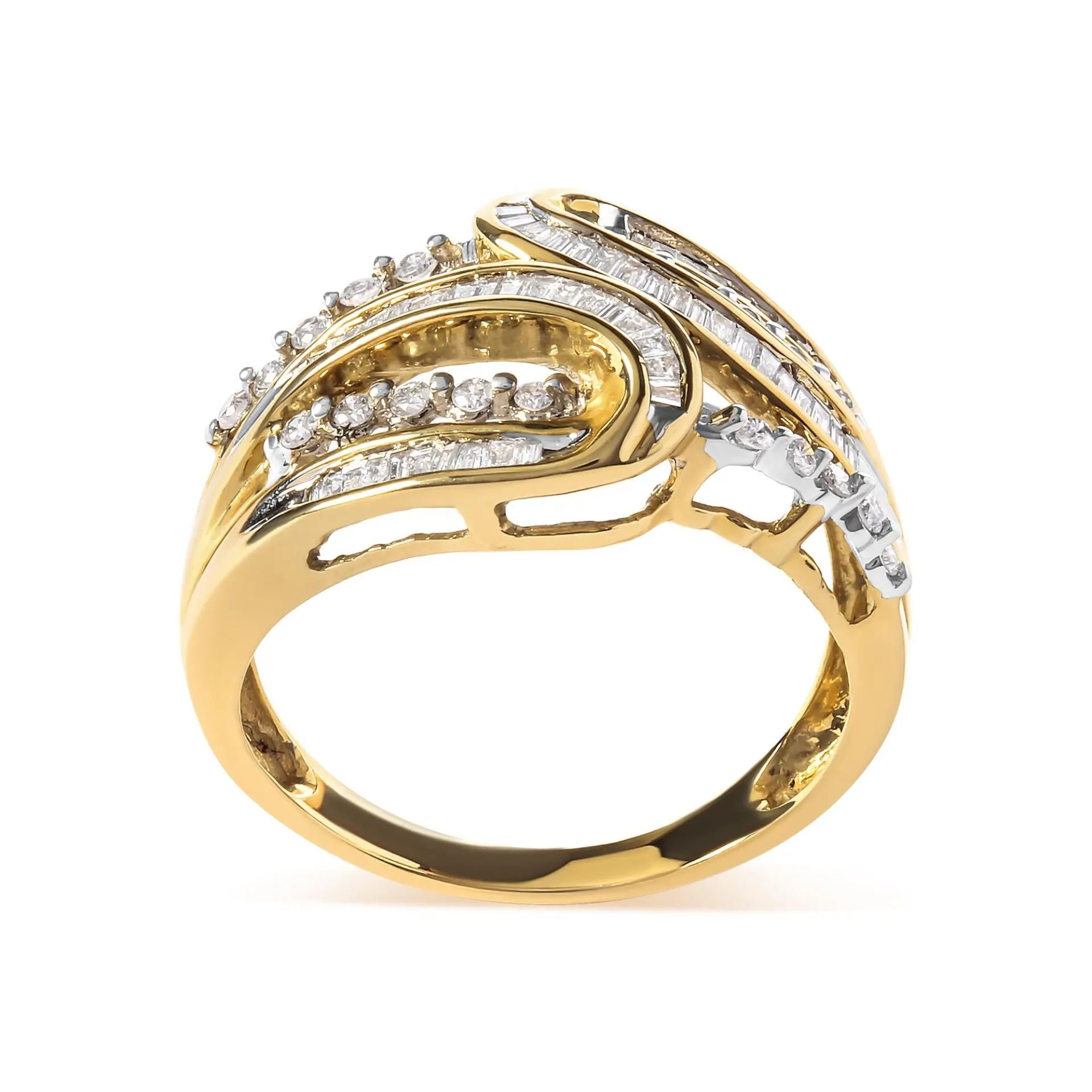 10K Yellow Gold 1/2 Cttw Round and Baguette cut Diamond Open Space Bypass Ring (H-I Color, SI2-I1 Clarity)