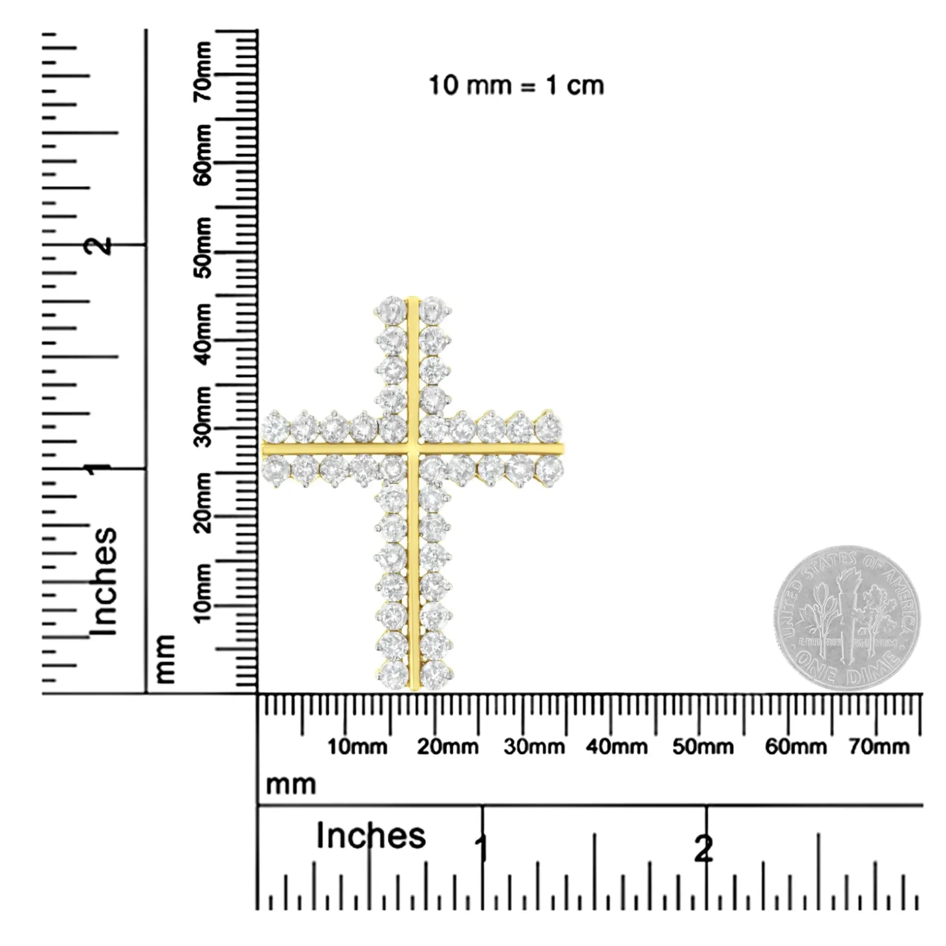 10K Yellow Gold 4.0 Cttw Diamond Two Row Cross 18″ Pendant Necklace (J-K Clarity, I1-I2 Color)