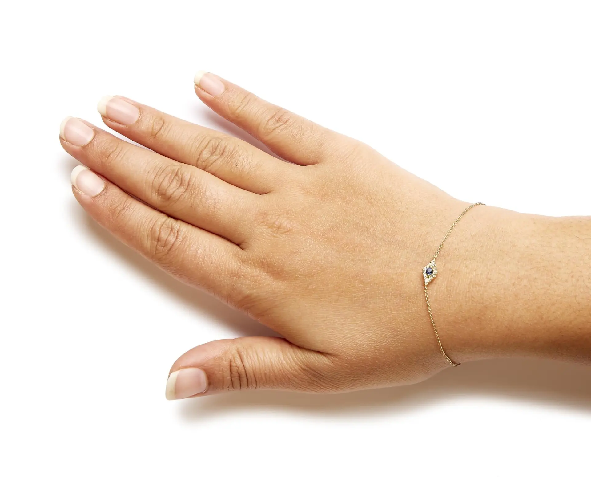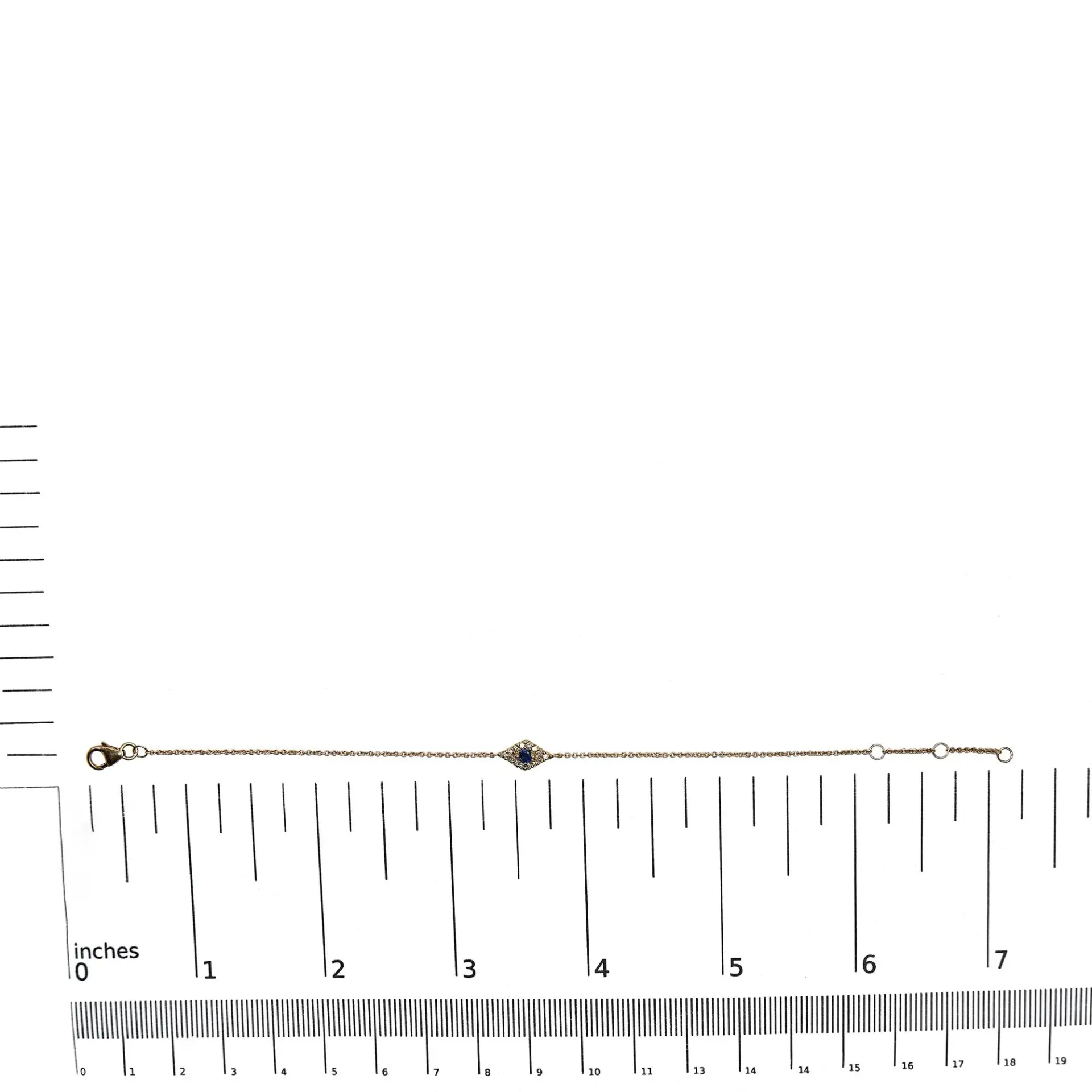 Introducing a captivating masterpiece that will mesmerize onlookers and add a touch of enchantment to your ensemble. Crafted with exquisite artistry, this 10K Yellow Gold Blue Sapphire and Diamond Accent Evil Eye Station Link Bracelet is a true symbol of protection and style. The vibrant blue sapphire, treated to enhance its captivating hue, rests delicately in a 2-prong setting, radiating a mesmerizing glow. Adorned with 15 dazzling round diamonds, the evil eye design offers a unique and mystical allure. The H-I color diamonds, set in a pave setting, further enhance the brilliance of this piece. With a lobster claw clasp, this bracelet ensures a secure fit, while the 7″ length makes it perfect for women of all ages. Elevate your jewelry collection with this stunning bracelet that effortlessly combines elegance and spirituality.