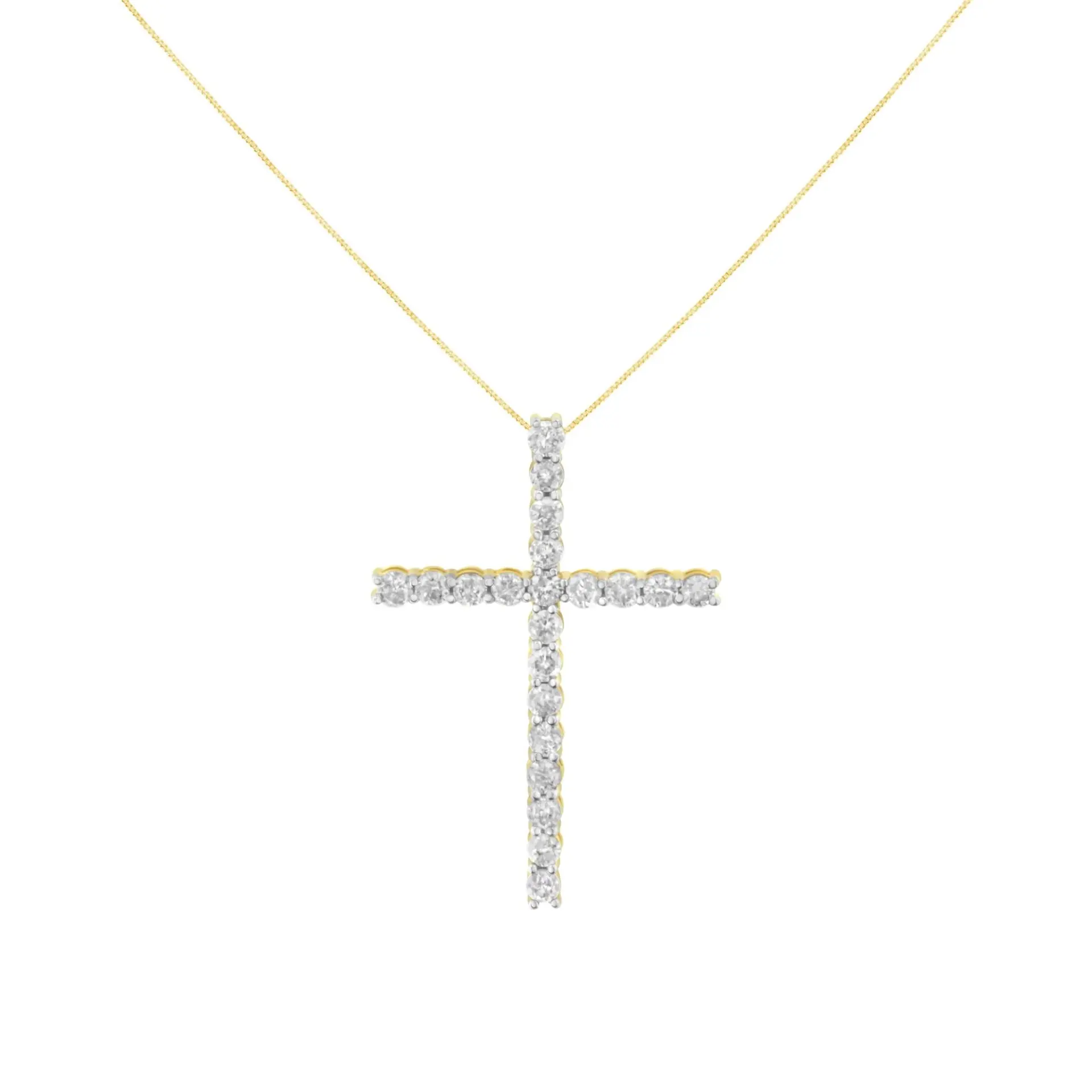 10K Yellow Gold Plated .925 Sterling Silver 4.0 Cttw Round Cut Diamond Cross Pendant Necklace (J-K Color, I1-I2 Clarity) – 18″