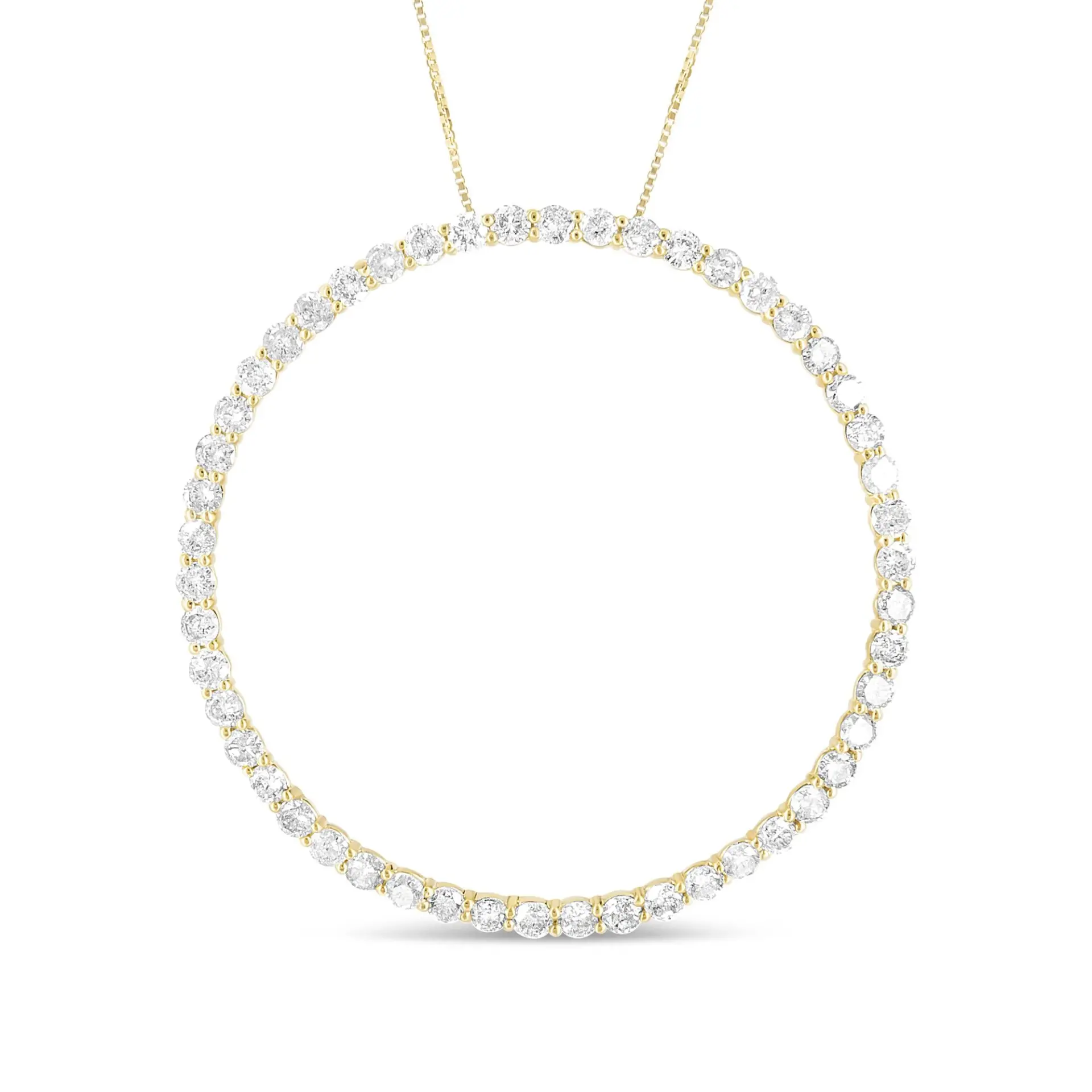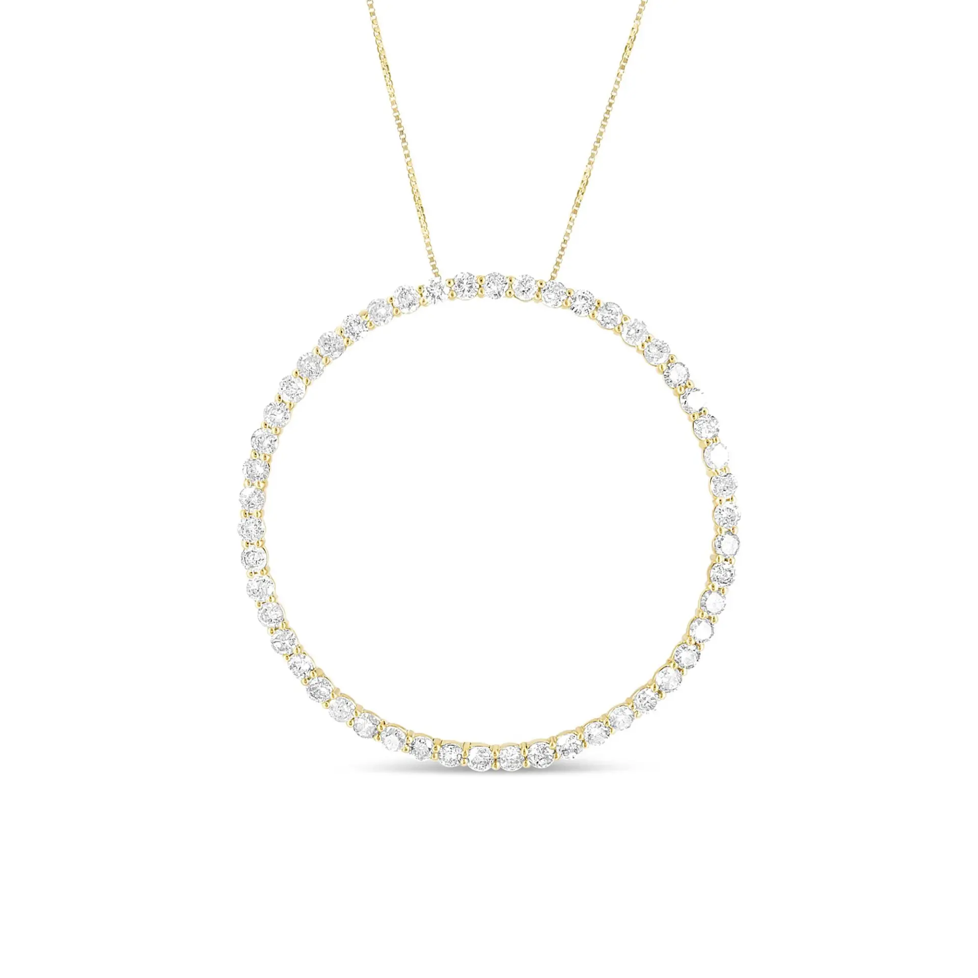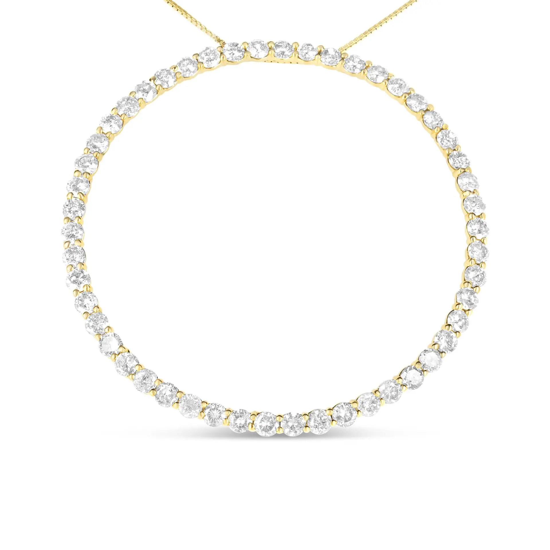 Made to stun, this diamond necklace is truly the one of our dreams. The focal point of the piece lies in the 10K yellow gold-plated .925 Sterling Silver pendant thats embellished with 50 natural round diamonds in prong setting, totalling to 4 cttw. Perfectly adorning your decolletage, its cinched to a rope chain necklace that measures at 18 inches.