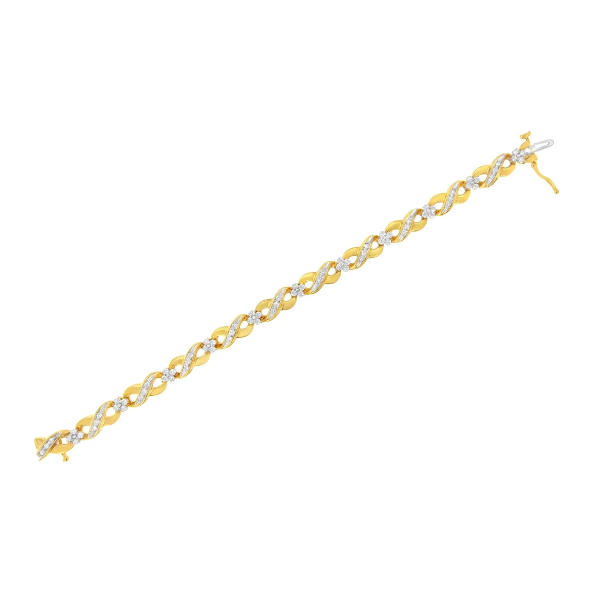 The infinity symbol represents the idea of forever, just like the love you share together. Capture that sentiment with this beautiful bracelet, which features an endless loop of diamond-embellished yellow gold bands that come together for a dazzling display.