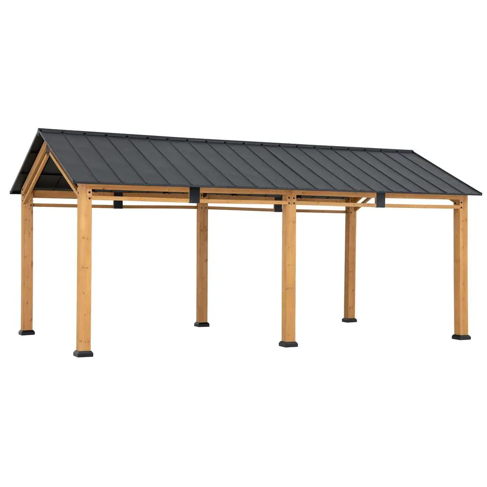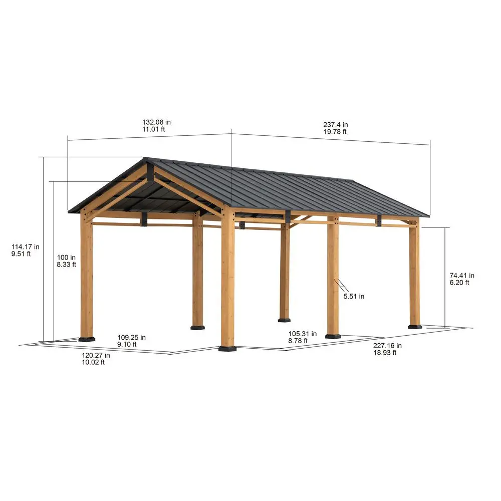 Durable & Stability Structure: This wood carport is made of a durable and sturdy steel roof that provides shade from the sun or keeps the rain out, while the premium cedar wood frame and components create a contemporary aesthetic. Stylish Design: This 11×20 ft carport features a gable roof for a stylish design and is a great addition to the exterior of almost any home or building structure. It is an ideal choice whether as a carport or sun shade gazebo for your outdoor patio. Versatile & Customizable: A movable ceiling hook is provided for this cedar wood carport for suspending lighting (not included) to illuminate your backyard evening gatherings. Multiple Scenery Application: Size: 237.4 in. L x 132.1 in. W x 114.2 in. H, weight: 610.67 lbs. This metal frame wood carport is a perfect addition to various outdoor living spaces, such as patios, decks, backyards, lawns, Porch, and etc. Easy to Assemble: This wood carport is very easy to assemble and comes with illustrated assembly instructions and is backed by an experienced customer service team ready to answer any questions that may arise.