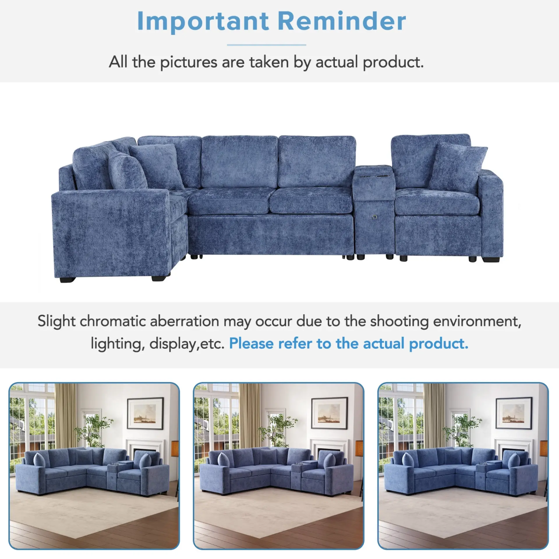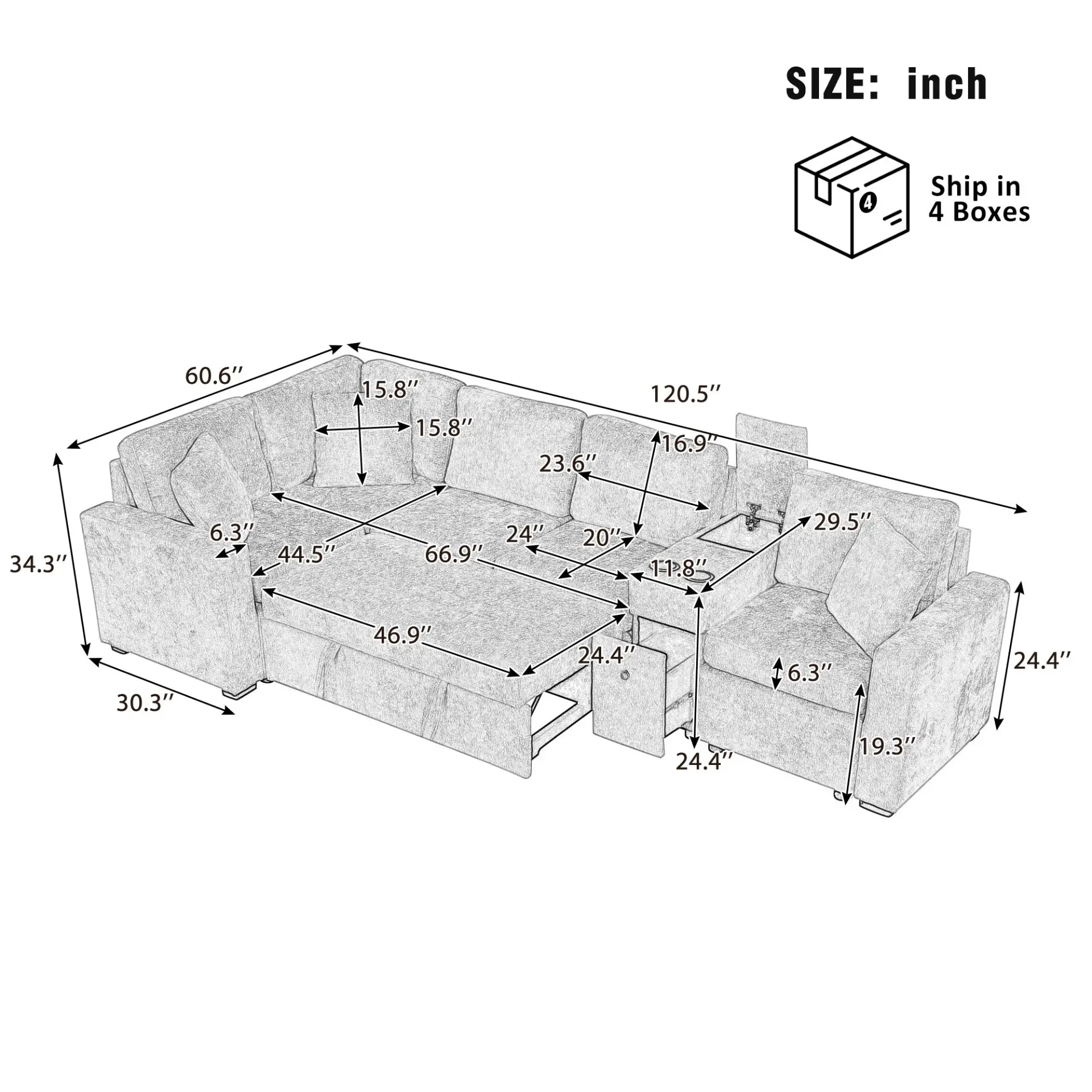 | Overall Dimension | Overall:120.5’D x60.6W x 34.3’H Comer Sofa:31.1’D x31.1W x 34.3’H Loveseat Sofa with Sofa Bed:47.6’D x30.3W x 34.3’H Single Sofa:23.2’D x30.3W x 34.3’H Seat Cushion Thicknss:6.3′ |