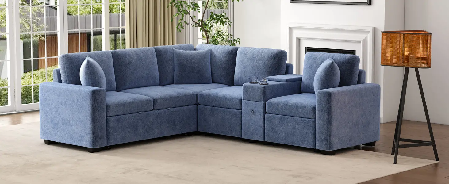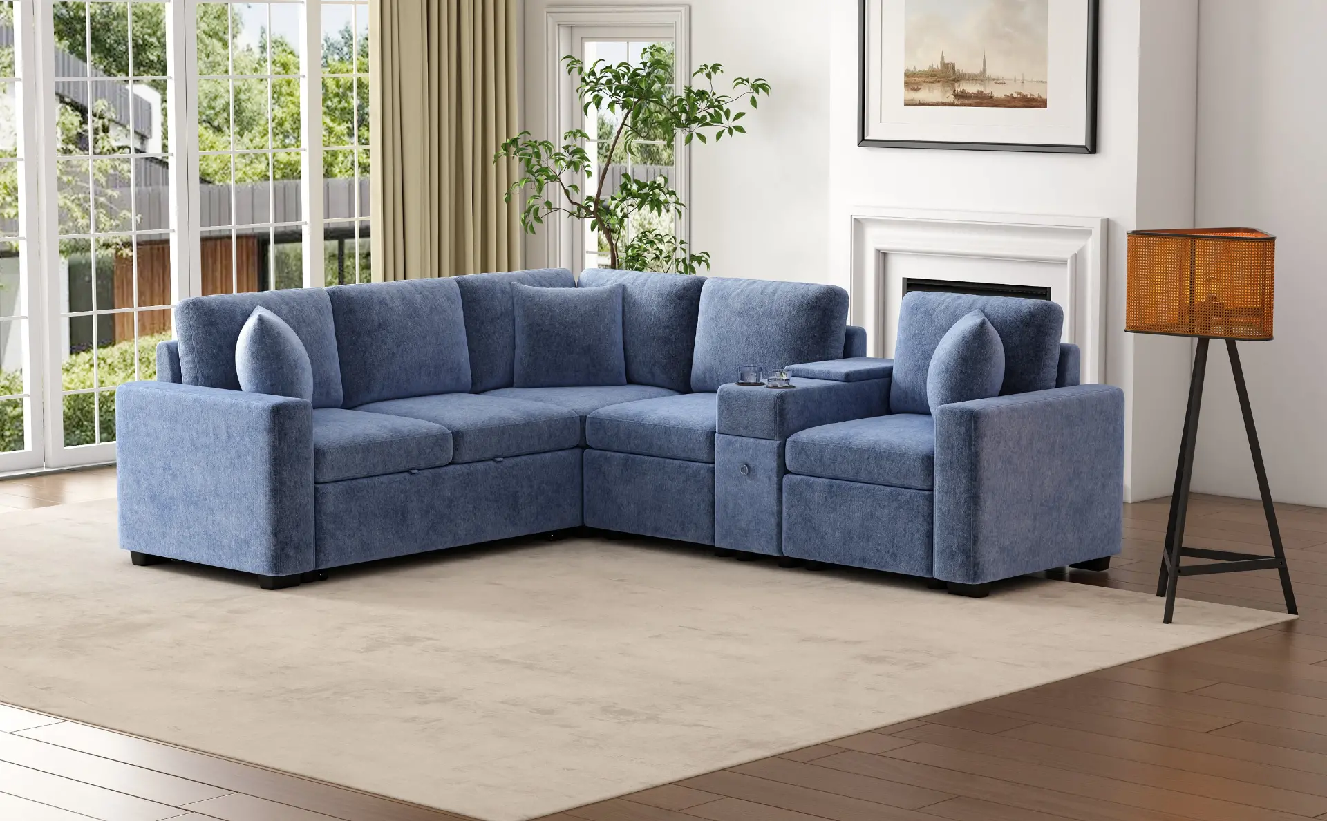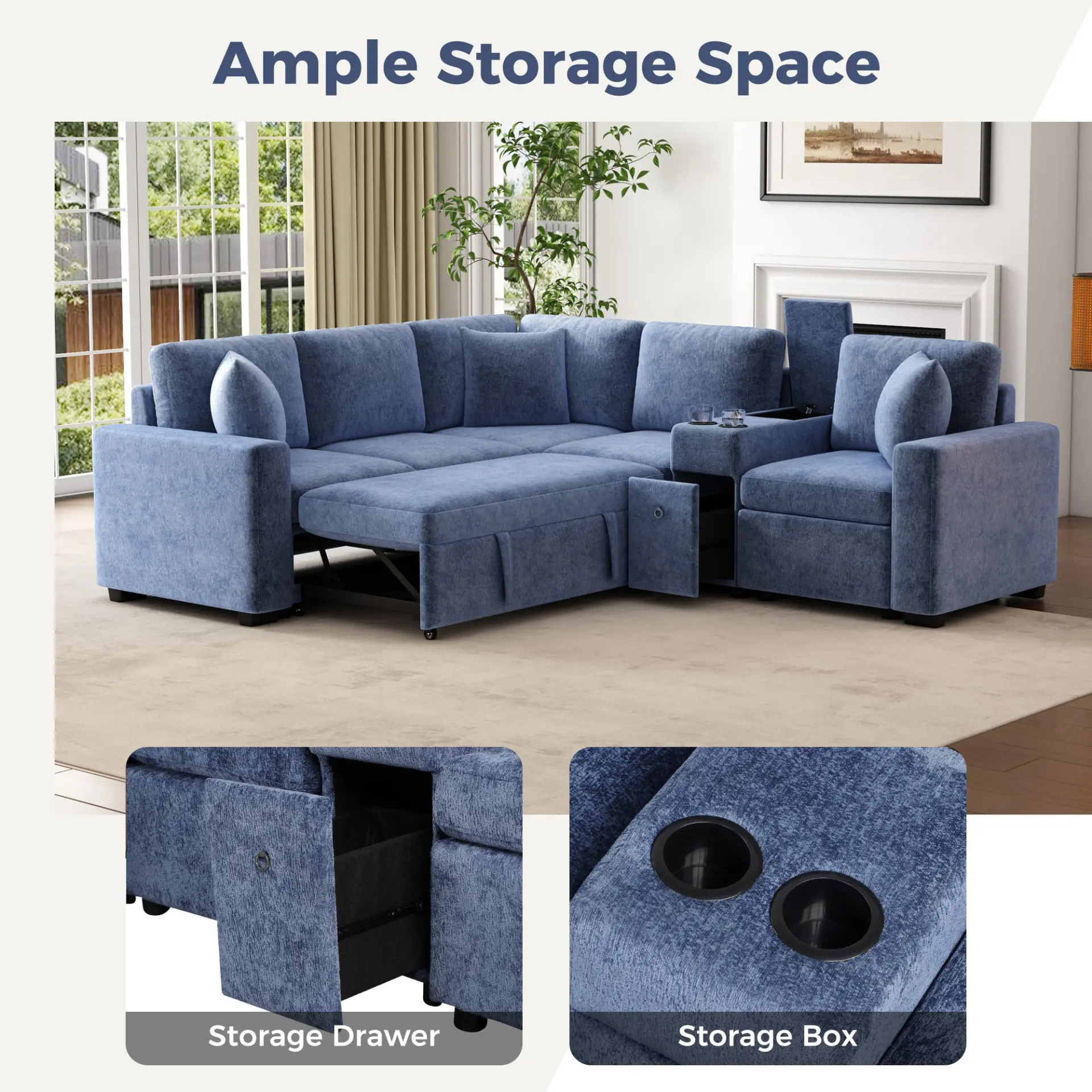 This versatile modular pull-out sofa offers a perfect blend of functionality, comfort, and style. Its customizable design allows for three different configurations, while the effortless pull-out bed provides a spacious 67W 44.5D sleeping area, making it ideal for guests and multifunctional spaces. Smart storage solutions, including a hidden armrest compartment and spacious drawer, help keep essentials organized and clutter-free. The built-in cup holders add convenience, while adjustable, removable pillows enhance comfort. Wrapped in luxurious chenille fabric, this sofa offers a soft, breathable, and durable upholstery, making it the perfect addition to any modern home.