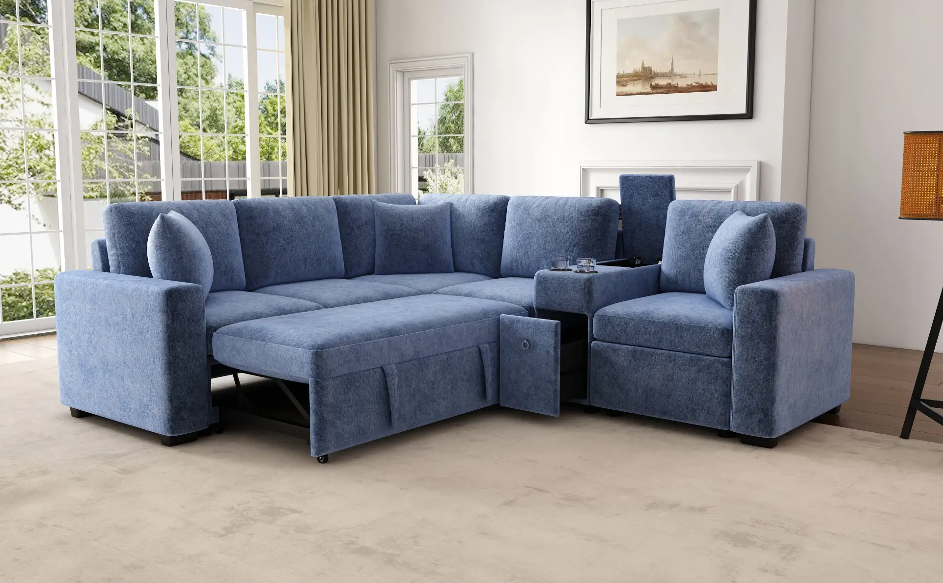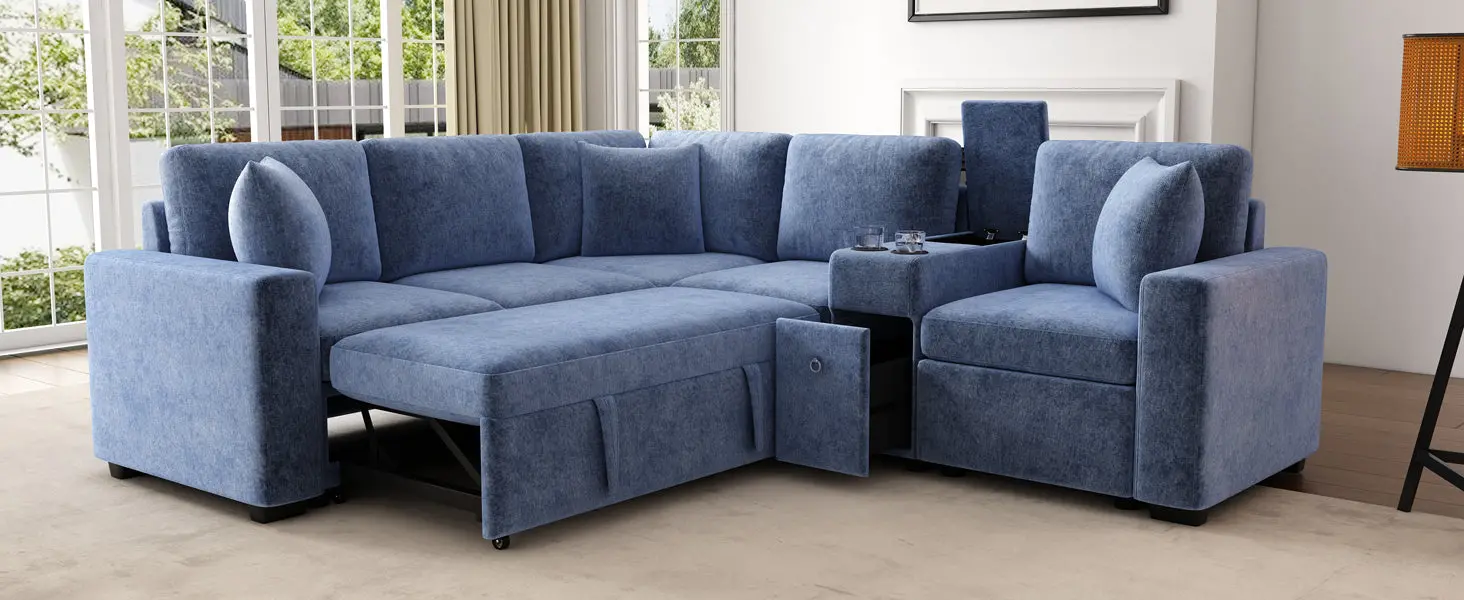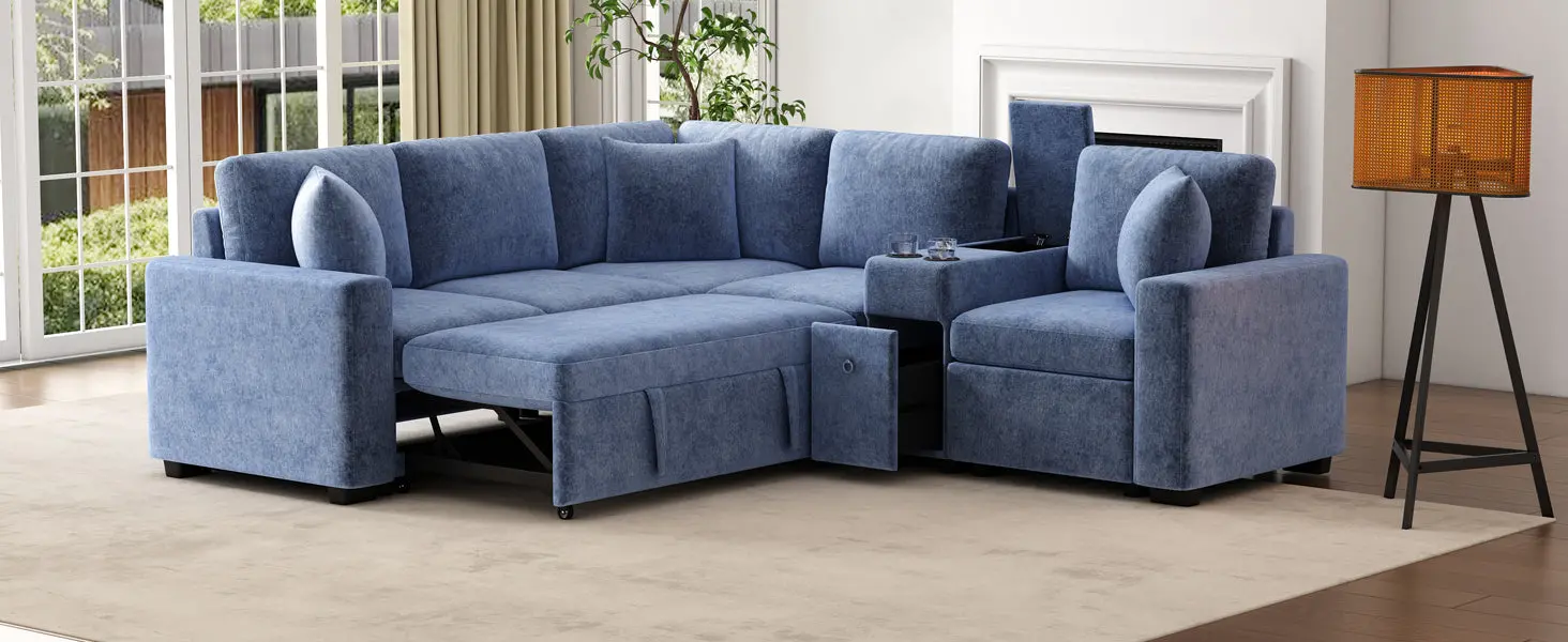 - Customizable Modular Design This innovative pull-out sofa features a fully modular structure, allowing you to effortlessly rearrange and configure it into four different layouts to suit your living space and lifestyle needs.