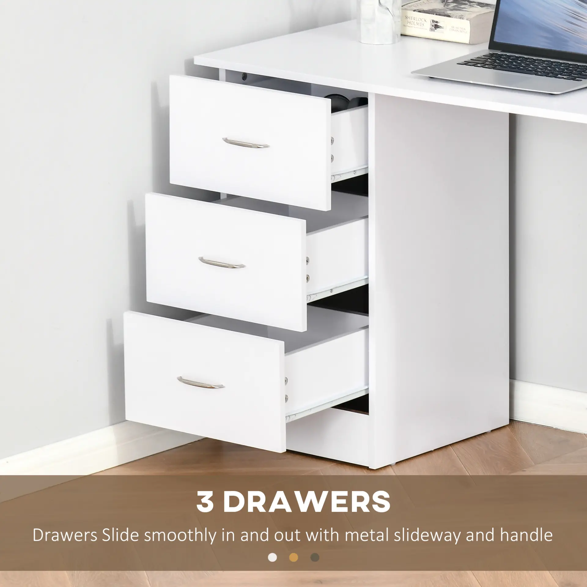 Maintain a contemporary and minimalistic workspace using HOMCOM’s desk with drawers. Crafted from durable particle board, this study table showcases a clean boxy design in a neutral colour, ideal for various home office environments. It offers three enclosed drawers and three open shelves, providing a balanced solution for work essentials and decor. The drawers feature convenient handles for a polished finish.