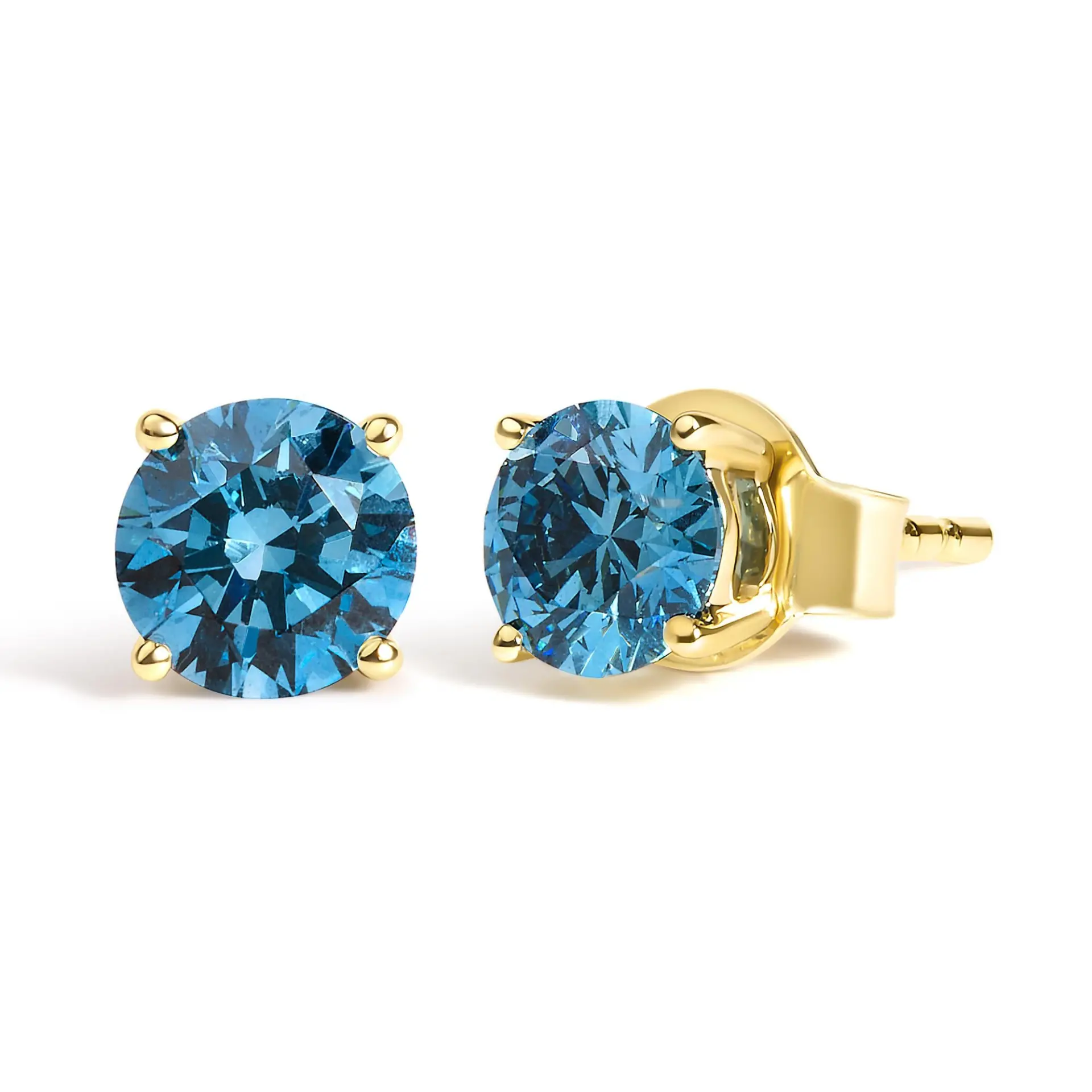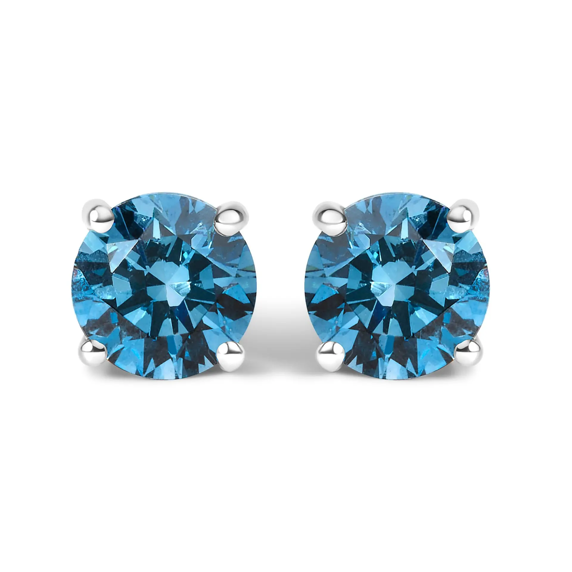 These beautiful minimalist diamond stud earrings are a must-have staple for your jewelry wardrobe and add a pop of color to any outfit. These earrings, which come in gleaming 14K white gold, are expertly cast into classic four prong settings, which frame stunning lab-grown blue diamonds. These comfy post earrings feature two round-brilliant shaped diamonds, and for security they utilize screw back closures to allow you to wear them with confidence every day. These would be an excellent gift for a bride, bridesmaids, your mother, sister, daughter, or wife! They are easily paired with casual outfits for daytime looks, or to elevate an elegant evening look. Classic and timeless, these are a perfect choice for a romantic or special event like an anniversary, a birthday, Mother’s Day, or Valentine’s day – you just can’t go wrong with this gorgeous style! Each diamond is approximately 1 1/2 carats for a 3 carat total weight.