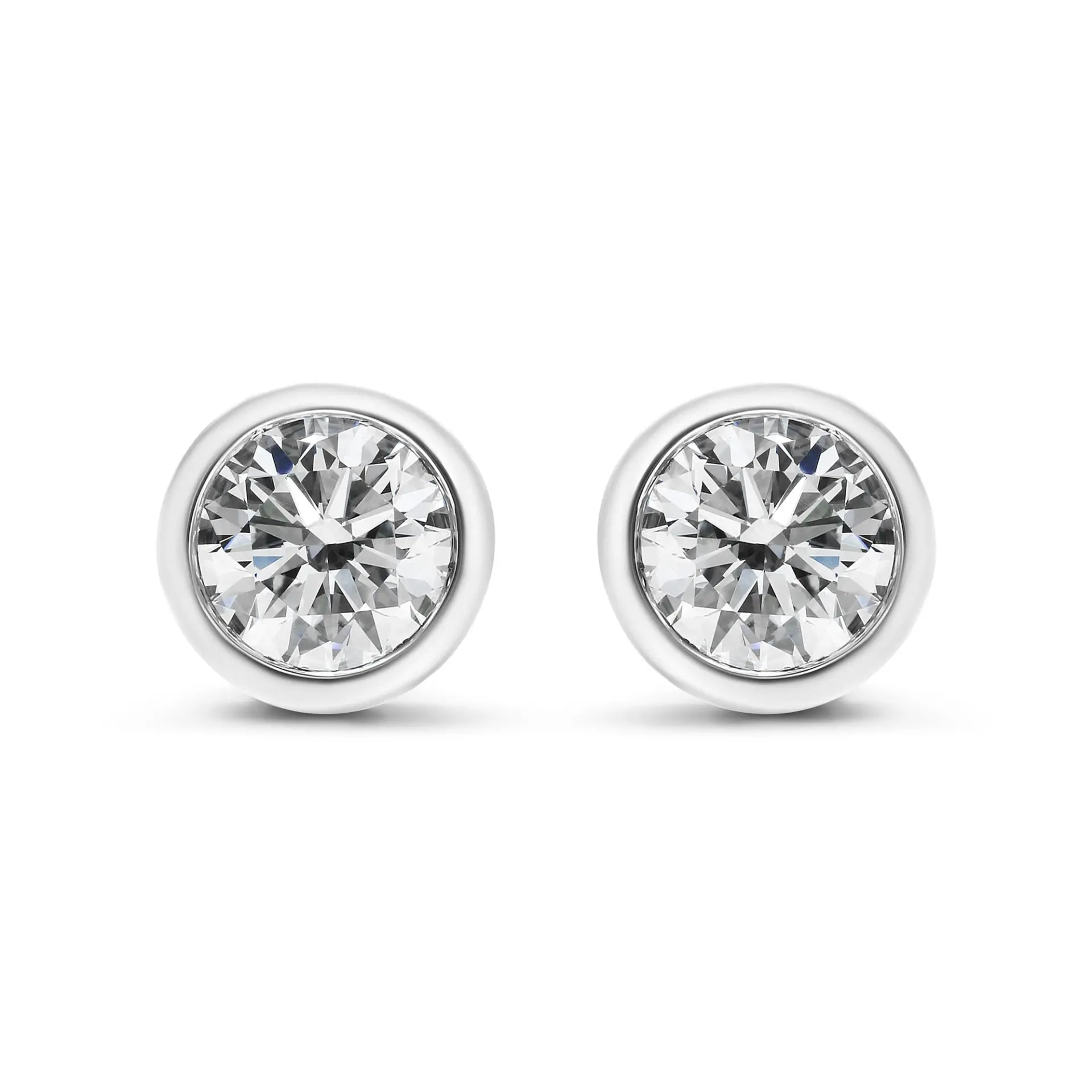 These luxurious earrings are a must-have for any woman who appreciates quality and style. Made from 14K white gold, they feature lab-grown diamonds that have been expertly cut into a classic round shape. The diamonds have a stunning G-H color and a sparkling VS2-SI1 clarity, ensuring they catch the eye with every wear. The bezel setting adds a touch of elegance, while the screw on earring finding ensures a secure and comfortable fit. And with a total diamond weight of 1 carat, these earrings are sure to make a statement. Not only are they beautiful, but they are also a responsible and eco-friendly choice. Add a touch of glamour to any outfit with these exquisite earrings.