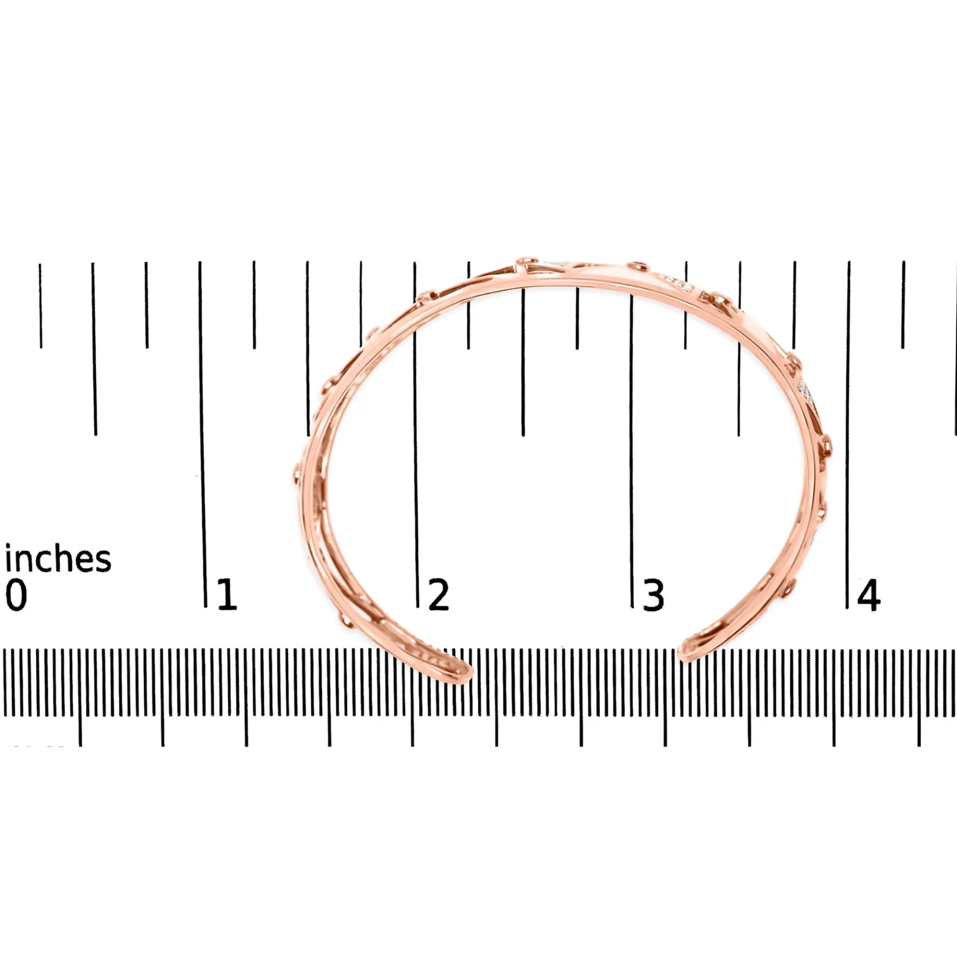 14K Rose Gold 5/8 Cttw Diamond with Pink Tourmaline Open Cuff Bangle with White Enamel (G-H Color, SI1-SI2 Clarity) – 7″