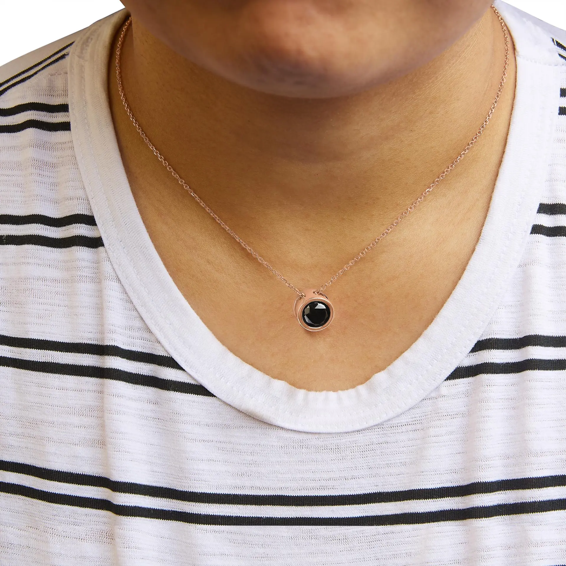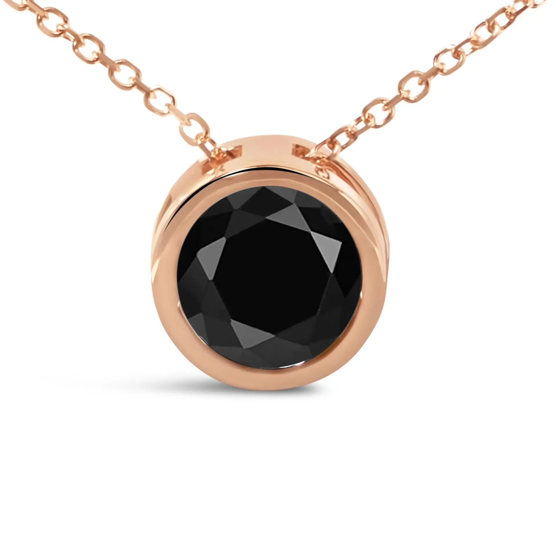 Immerse yourself in the opulence of sophistication with this exquisite necklace, where a 7.0-carat treated black diamond, of natural origin, takes center stage. Its deep, opaque hue, enriched through careful treatment, contrasts stunningly against the warm embrace of 14K rose gold. Encased in a robust bezel setting, this round-cut gem exudes the essence of modern luxury. Hanging gracefully from an 18-inch cable chain of equal opulence, its minimalistic charm is designed for the discerning individual. A secure spring-ring clasp whispers promises of everlasting elegance. This piece is not just a testament to superior craftsmanship but a gateway to a lifestyle replete with understated elegance, making it an unmissable treasure in your collection.