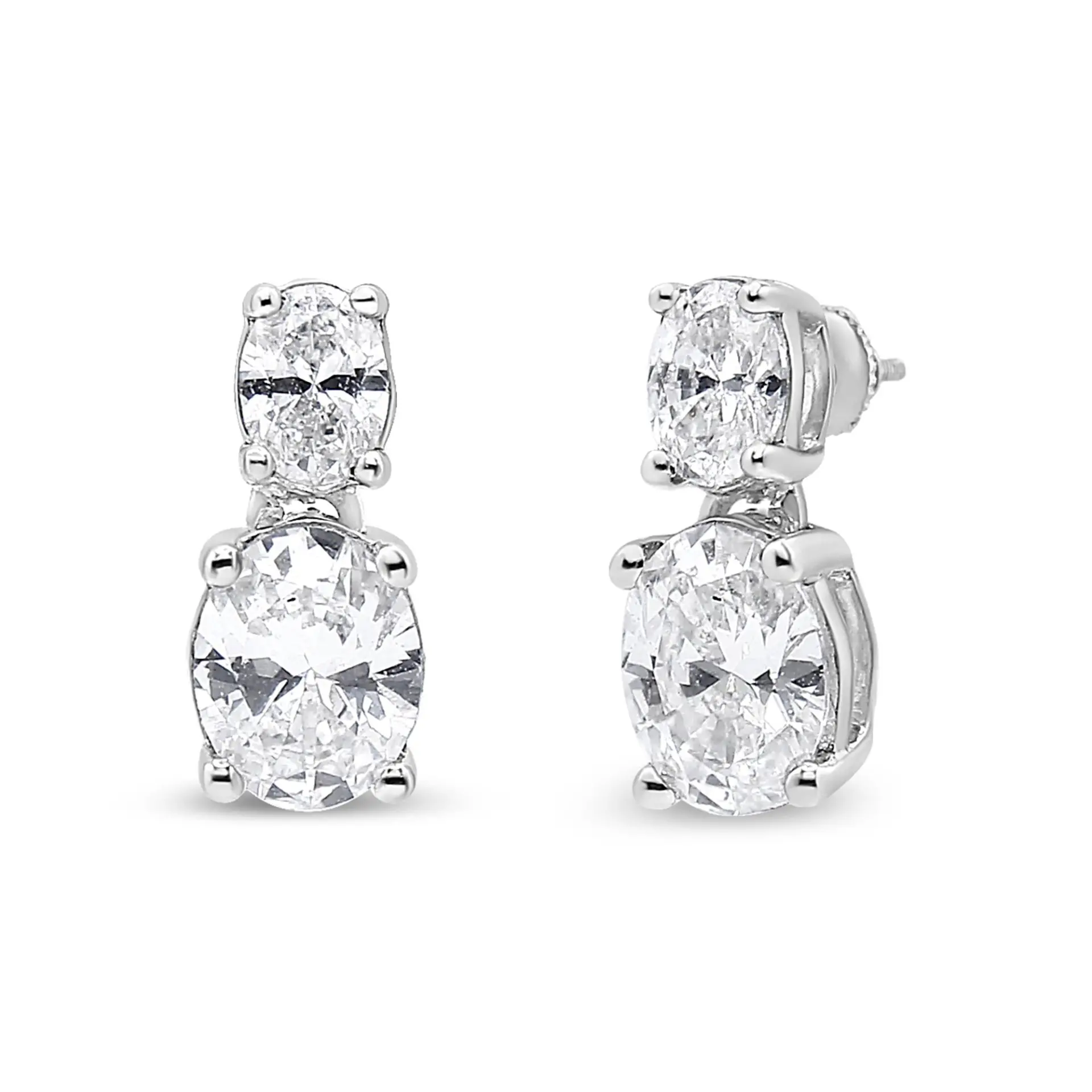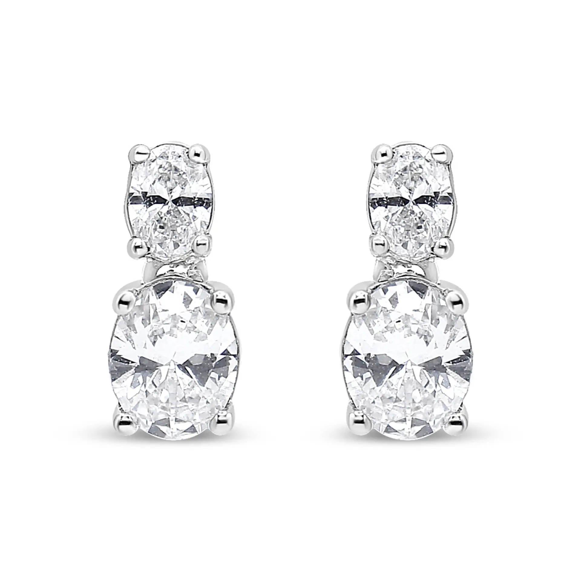 14K White Gold 1.0 Cttw Oval Lab Grown Diamond 2 Stone Drop and Dangle Stud Earrings (G-H Color, VS2-SI1 Clarity)