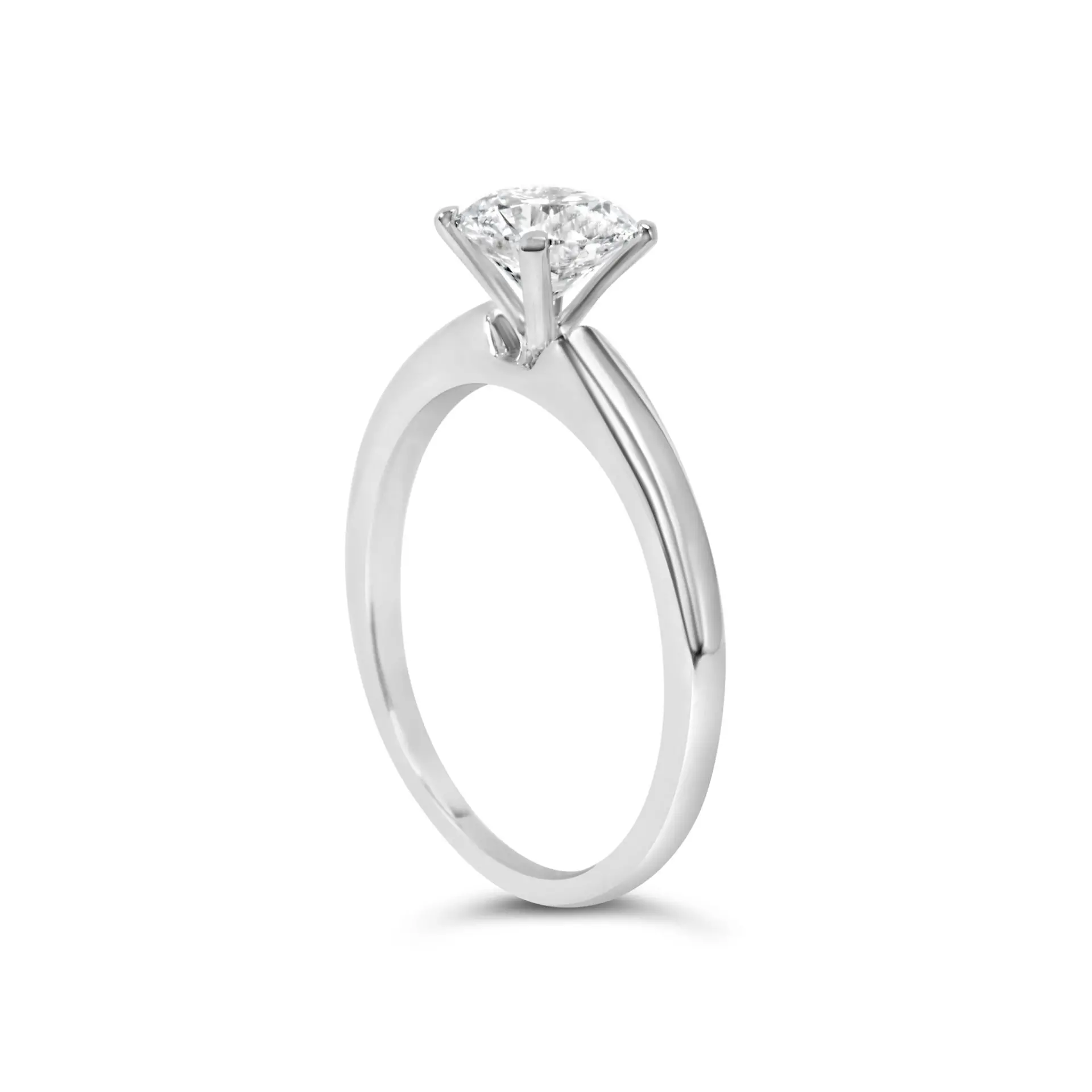 Embrace timeless elegance with this exquisite 14K white gold solitaire engagement ring, rhodium-plated for a contemporary finish that dazzles in its simplicity. At the heart lies a mesmerizing lab-grown diamond, a testament to both modernity and tradition, ethically sourced and brilliantly crafted to mirror the deepest emotions. This 1.0 carat round brilliant cut jewel is securely nestled in a classic four-prong setting, ensuring it captures every fleck of light. It boasts a pristine F-G color rating, radiating a pure, icy whiteness, complemented by a clarity of VS2-SI1, with its minor inclusions invisible to the naked eye, creating a spectacle of sparkle with every gesture. Designed for daily wear, this ring’s polished, smooth band promises a comfortable embrace, making it not only a symbol of love but also a perfect testament to enduring style and commitment.