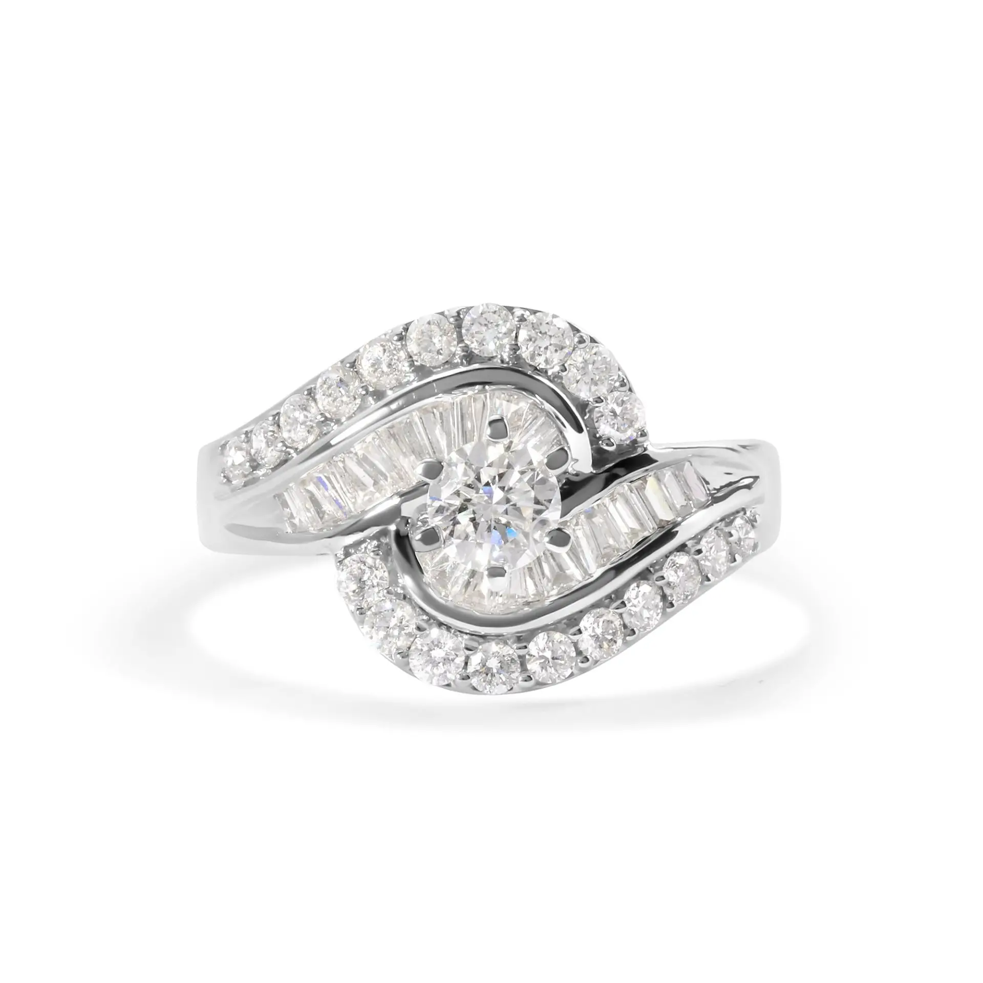 Be the first to review “14K White Gold 1.00 Cttw Round and Baguette cut Diamond Swirl Cocktail Ring (H-I Color, SI2-I1 Clarity)”