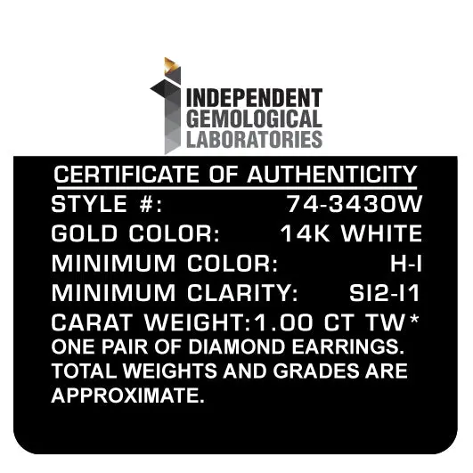 Be the first to review “14K White Gold 1.00 Cttw Round Brilliant-Cut Near Colorless Diamond Classic 4-Prong Stud Earrings (H-I Color, I1-I2 Clarity)”