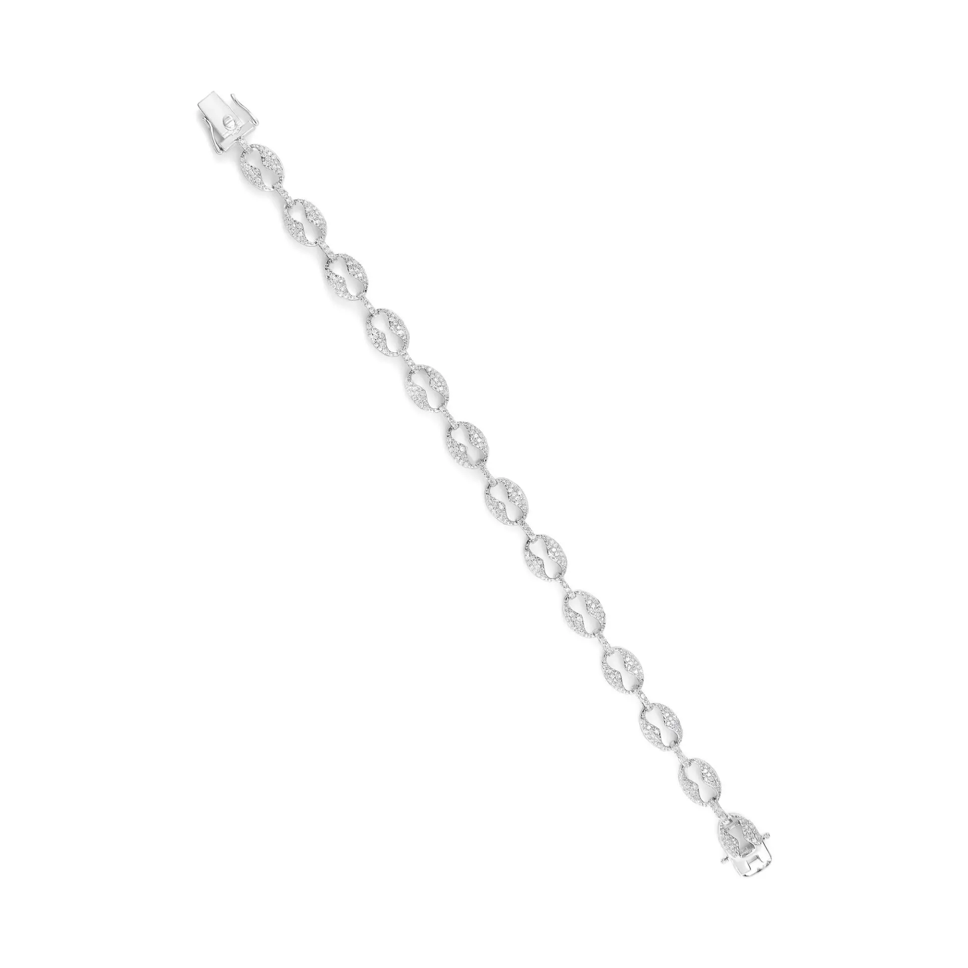 Adorn yourself with the exquisite beauty of this 14K White Gold Diamond Link Bracelet. The bracelet features 360 natural round-cut diamonds with an impressive 1.5 cttw weight that dazzle with their I-J color and I1-I2 clarity. Each diamond is meticulously set in a prong setting, ensuring maximum light reflection and brilliance. The links are crafted in 14K white gold, adding a touch of luxury and sophistication to any outfit. Its 7″ length and secure box clasp ensure that it stays perfectly in place, while the timeless design makes it the perfect accessory for any occasion. Whether you’re treating yourself or gifting it to someone special, this diamond link bracelet is sure to be treasured for years to come. Elevate your style and embrace the timeless beauty of this magnificent piece of jewelry.