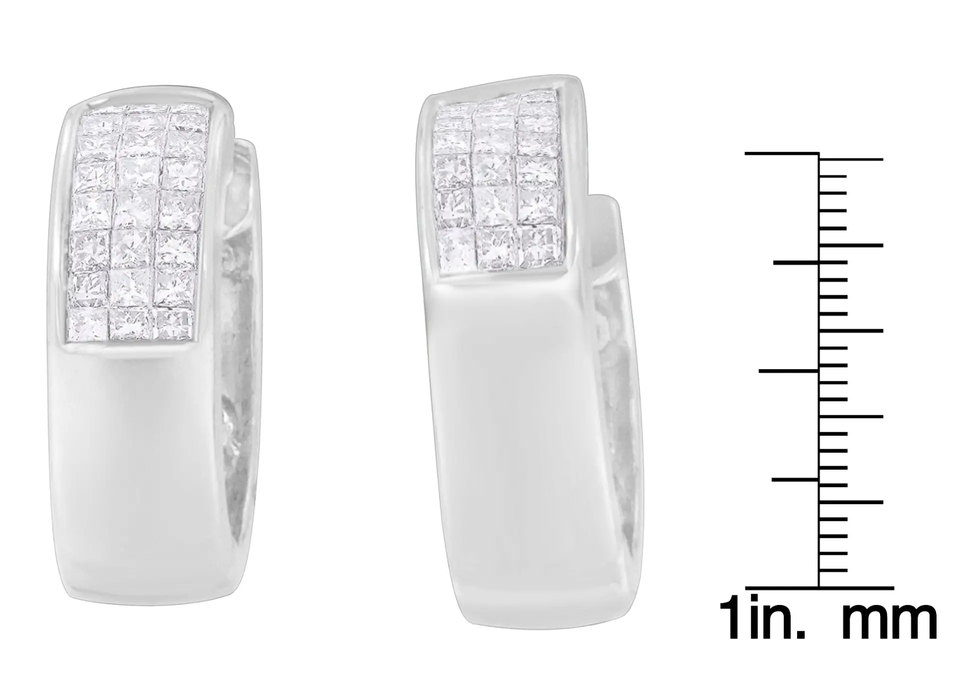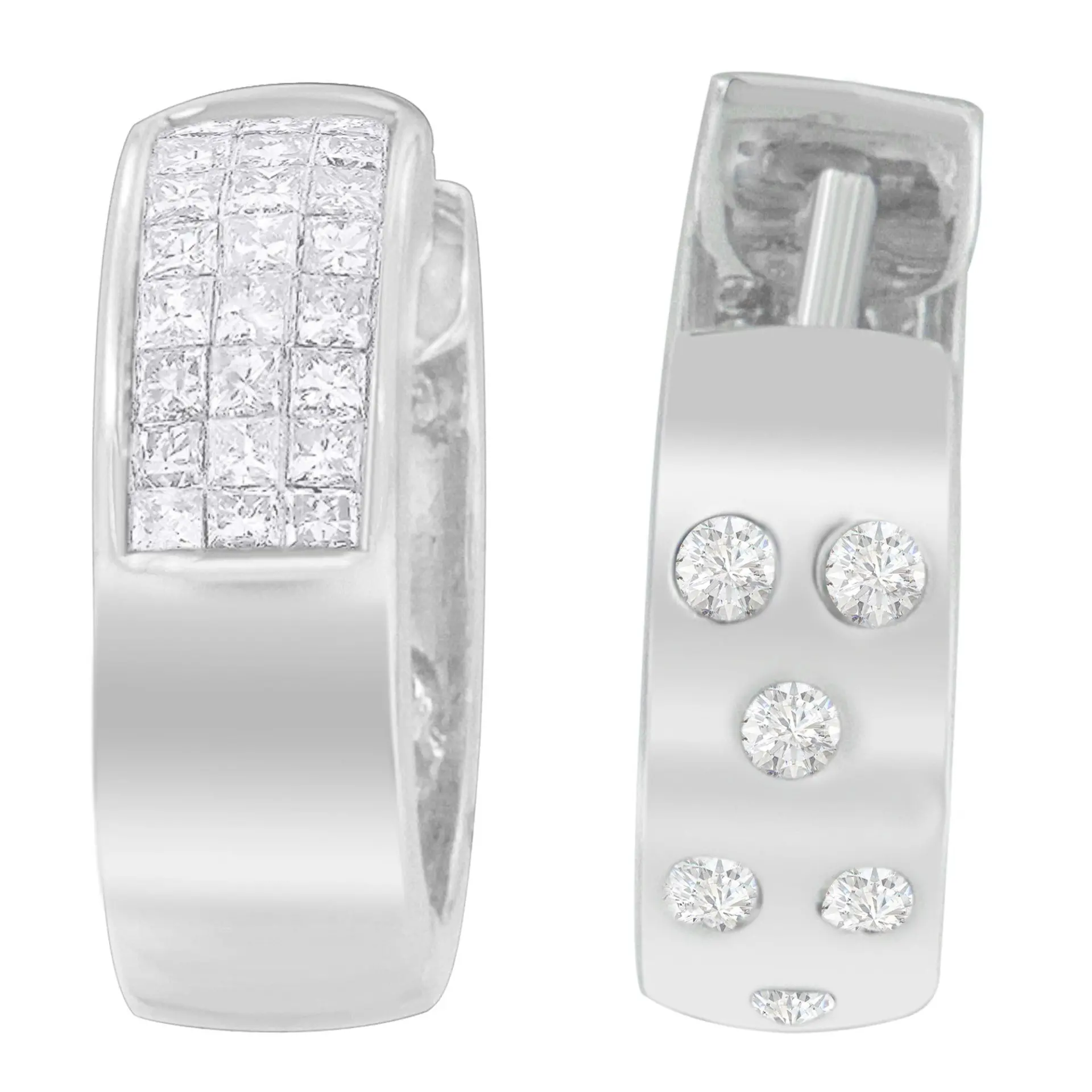 14K White Gold 1 1/8 cttw Princess and Round Cut Diamond Huggie Earrings (H-I, VS1-VS2)