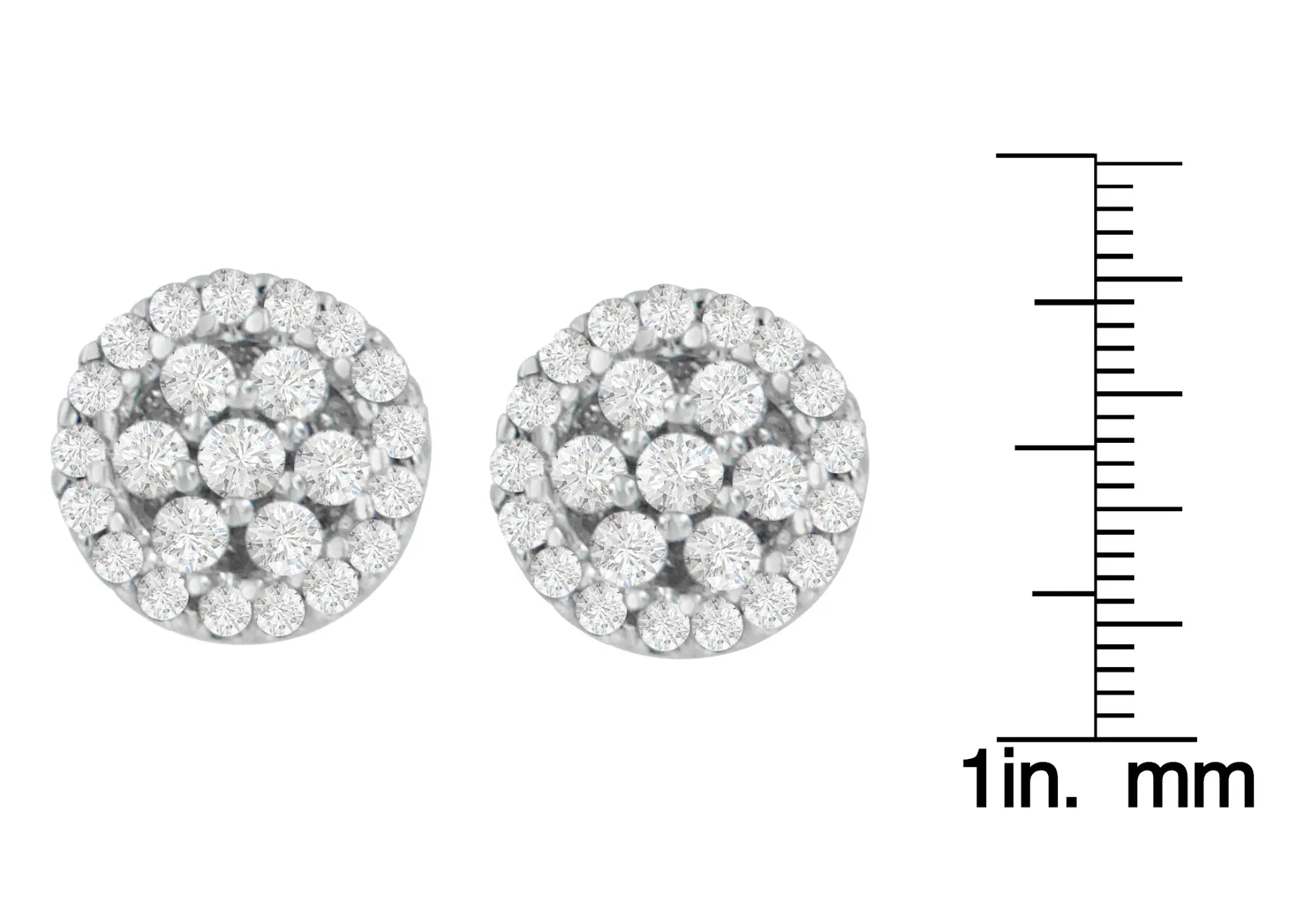 14K White Gold 1/2 Cttw Brilliant-Cut Diamond Halo-Style Cluster Round Button Stud Earrings (H-I Color, I1-I2 Clarity)