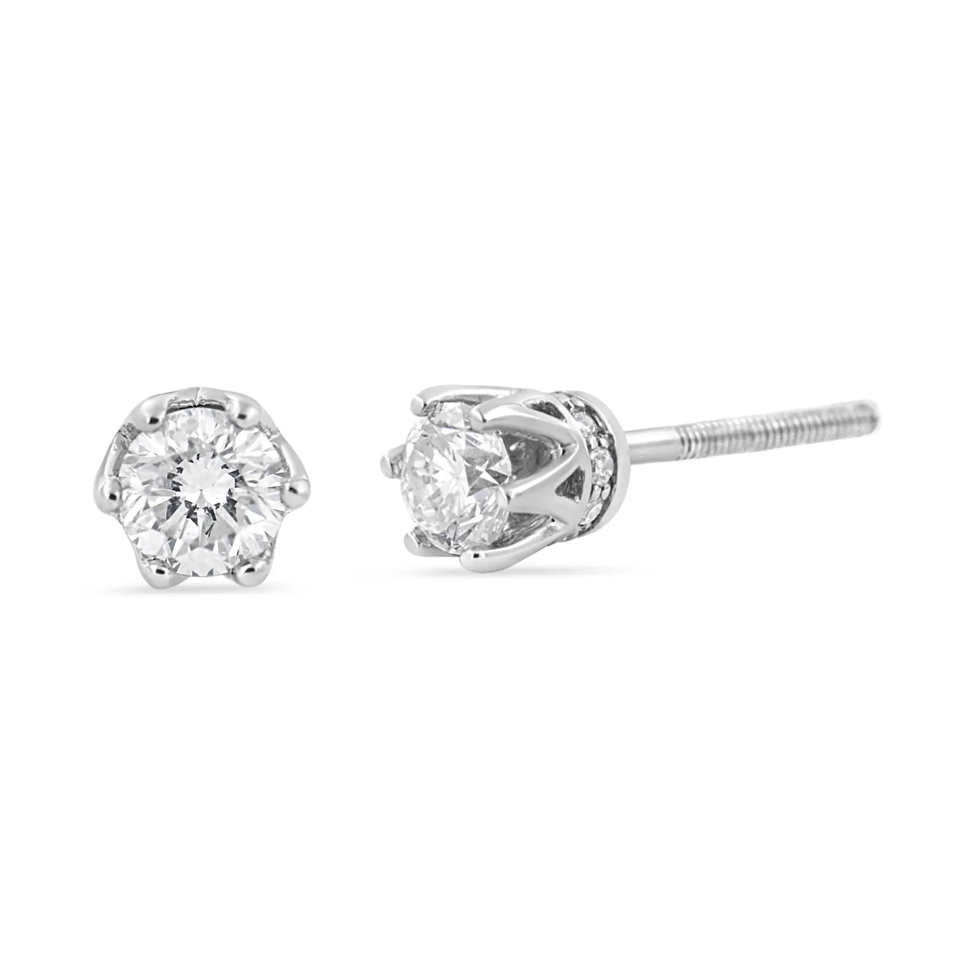 Be the first to review “14K White Gold 1/2 Cttw Round Diamond 6 Prong Crown Stud Earrings (I-J Color, I1-I2 Clarity)”