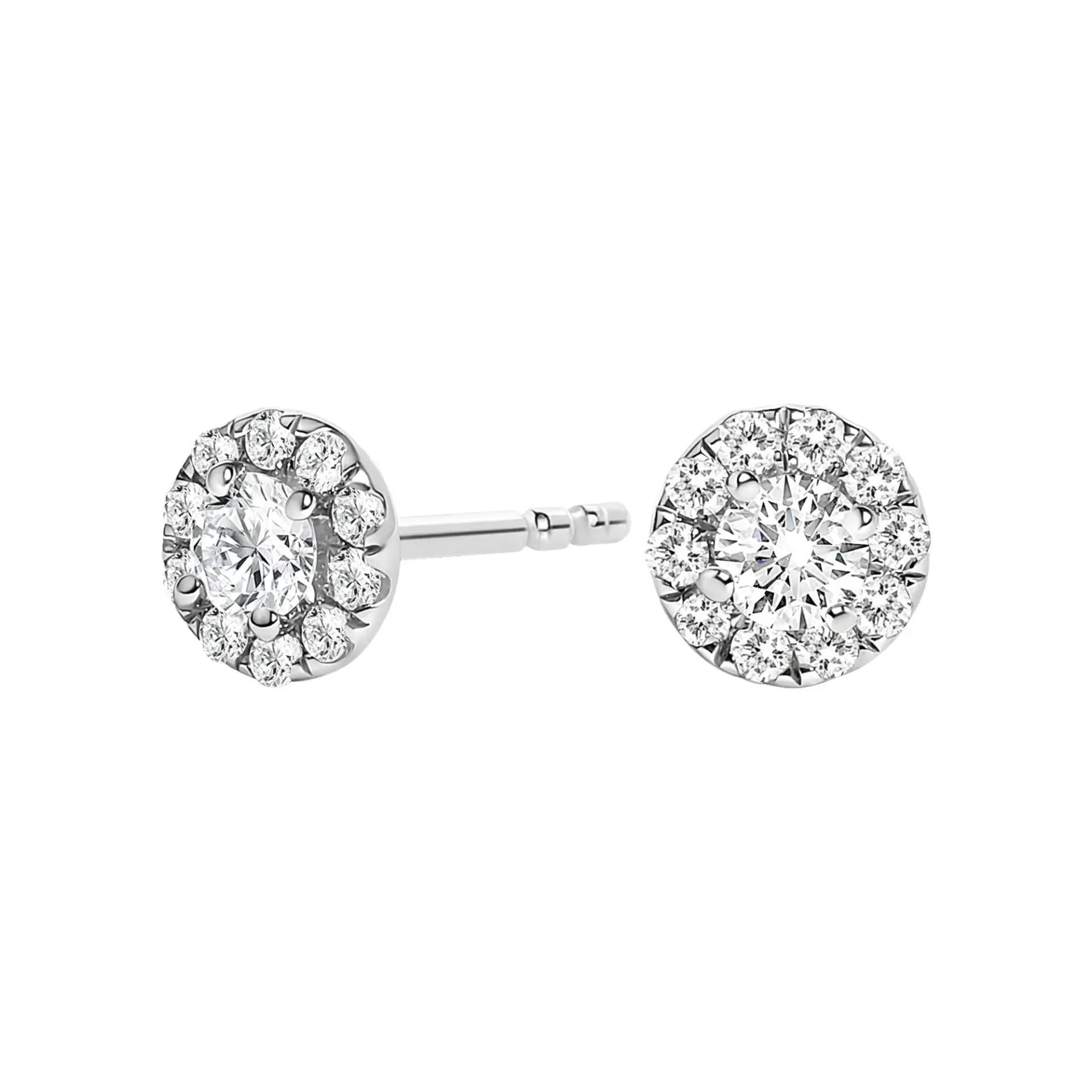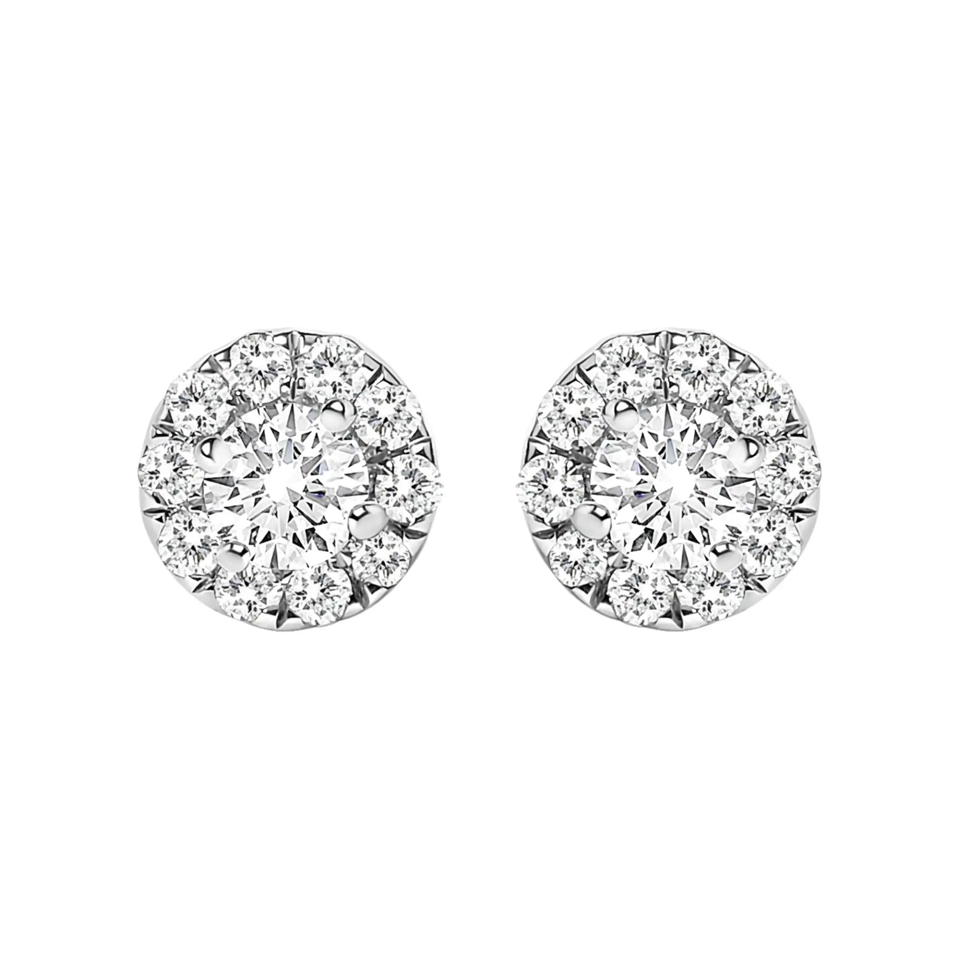 Discover the exquisite blend of modern elegance and ethical luxury with these 14K white gold halo stud earrings. Each piece centers a lustrous lab-grown diamond, weighing approximately 3/8 carat, surrounded by a scintillating halo of meticulously matched stones. These lab-grown jewels not only promise a heritage of responsible sourcing but also dazzle with an F-G color and VS1-VS2 clarity, ensuring a gleam that catches the light with every turn. The rhodium plating over the white gold enhances its durability and adds an extra touch of gleam, making them not only a statement of style but of sustainability. Whether it’s a gift to cherish or a personal treat, these earrings offer timeless sophistication with a clean conscience.