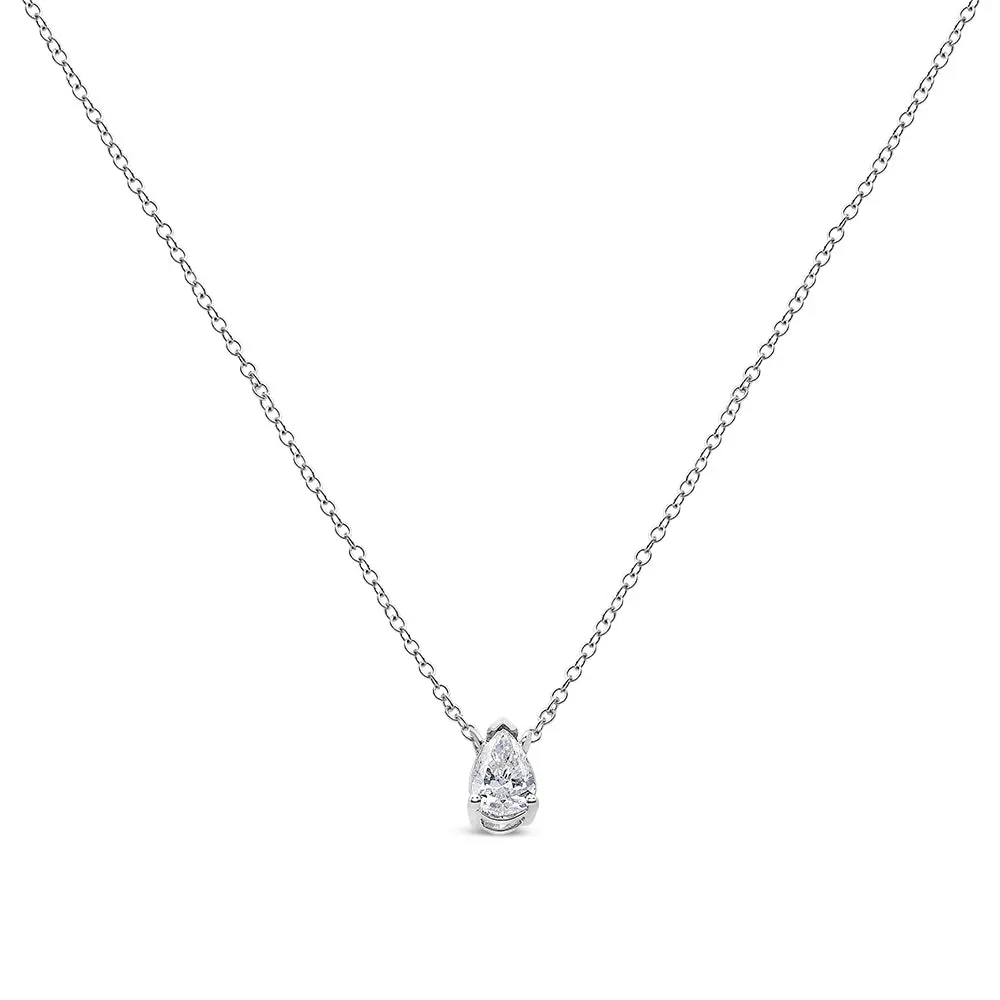 14K White Gold 1/5 Cttw Pear Shape Solitaire Diamond 18″ Pendant Necklace (G-H Color, VS2-SI1 Clarity)