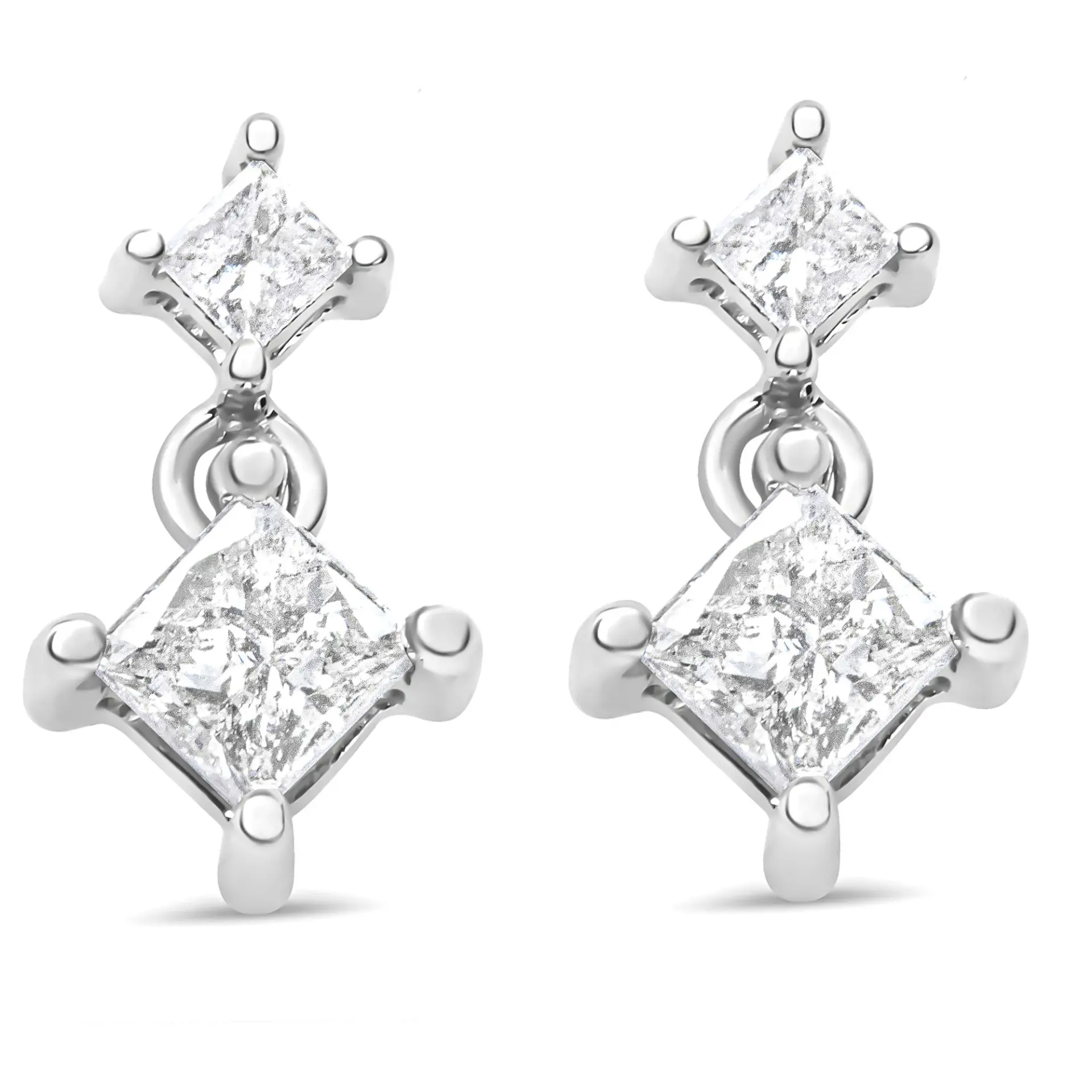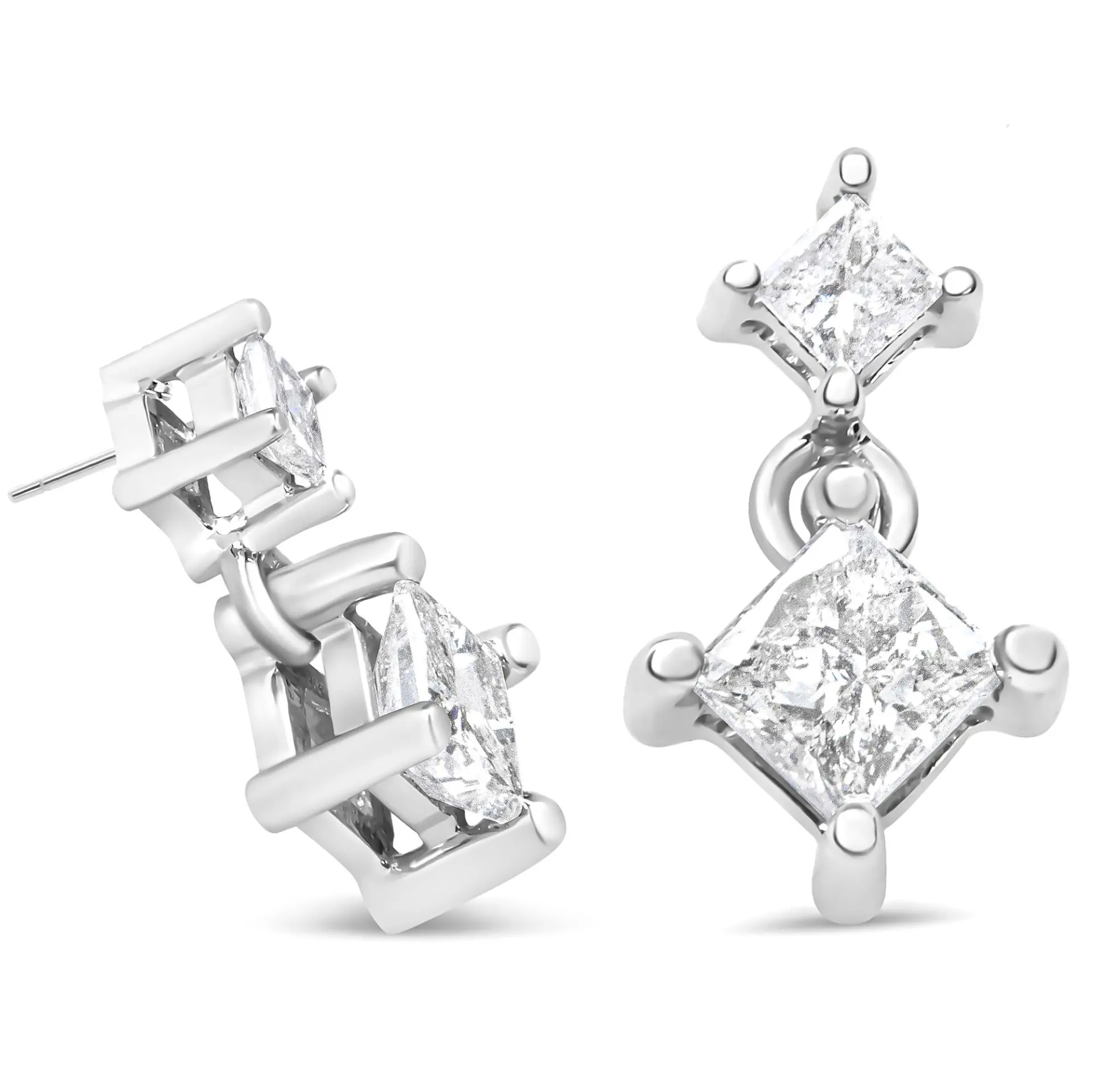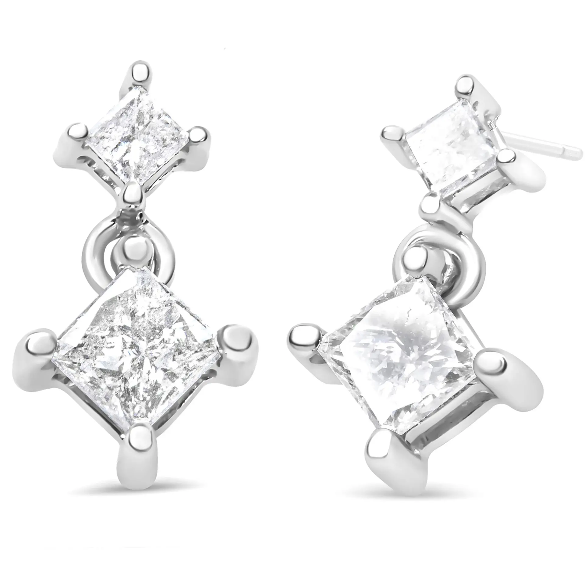 Zhuzh up your everyday jewelry by donning this stud-drop pair that amps up the elegant feel. Each side comprises two natural princess-cut diamonds in varying sizes that total up to 3/8 cttw, and theyre secured with a prong setting. The classic push-back completes the design. Whether youre pairing it with a casual summer dress for a lunch date or an LBD for a night out, these earrings versatility is proven.