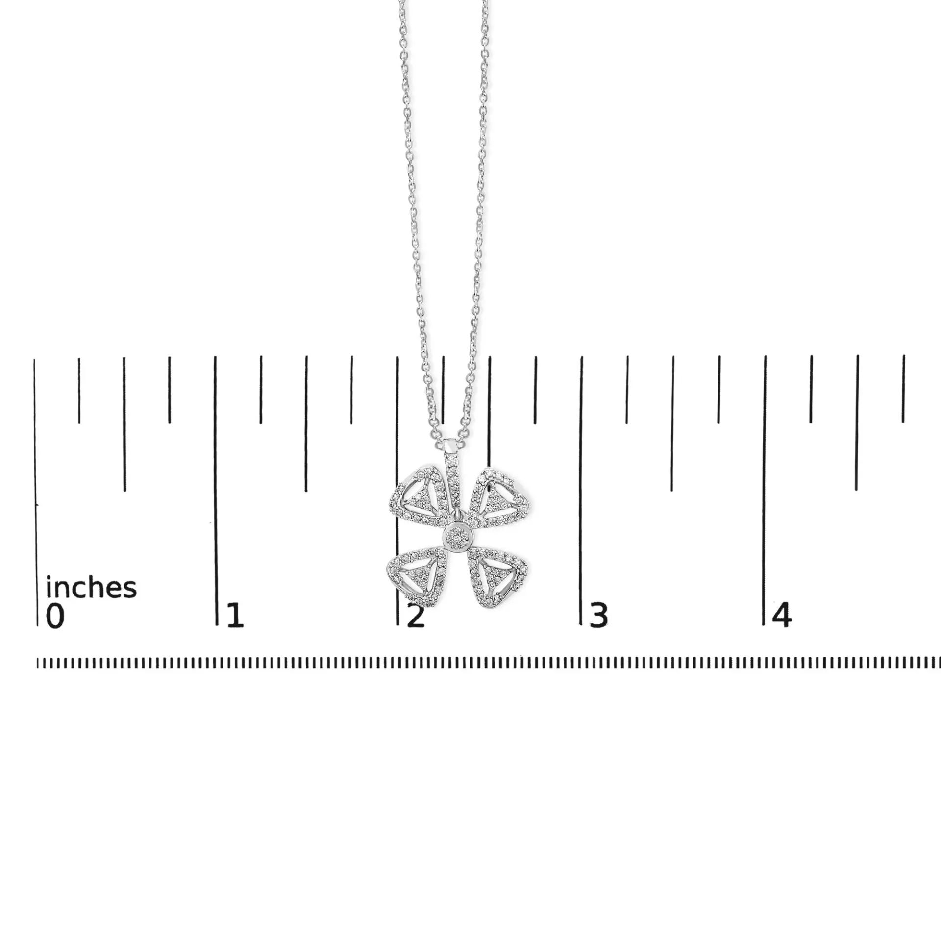 Imagine draping your neckline with the sublime elegance of this 14K gold necklace, exquisitely shaped into a four-leaf floral pendant. Each leaf, delicately crafted, is bedecked with natural diamonds totaling 5/8 carats, their radiant sparkle of H-I color and I1-I2 clarity reflecting light with every heartbeat. Rhodium-plated for added luster and durability, this stunning piece is securely suspended from an 18-inch cable chain, closing with a spring ring clasp for ease. A testament to refined taste, this necklace not only complements your finest occasions but also elevates everyday wear into moments of sheer luxury.