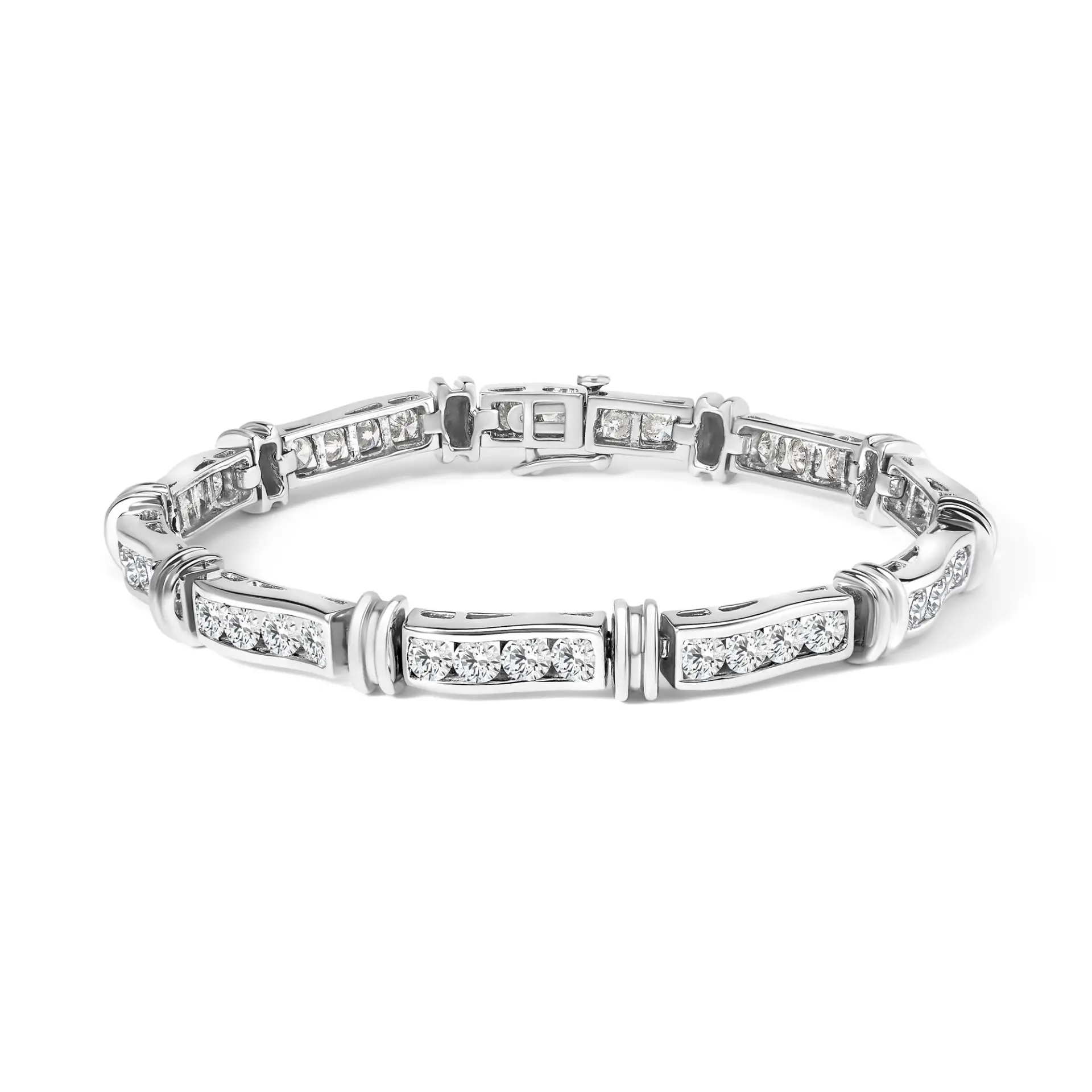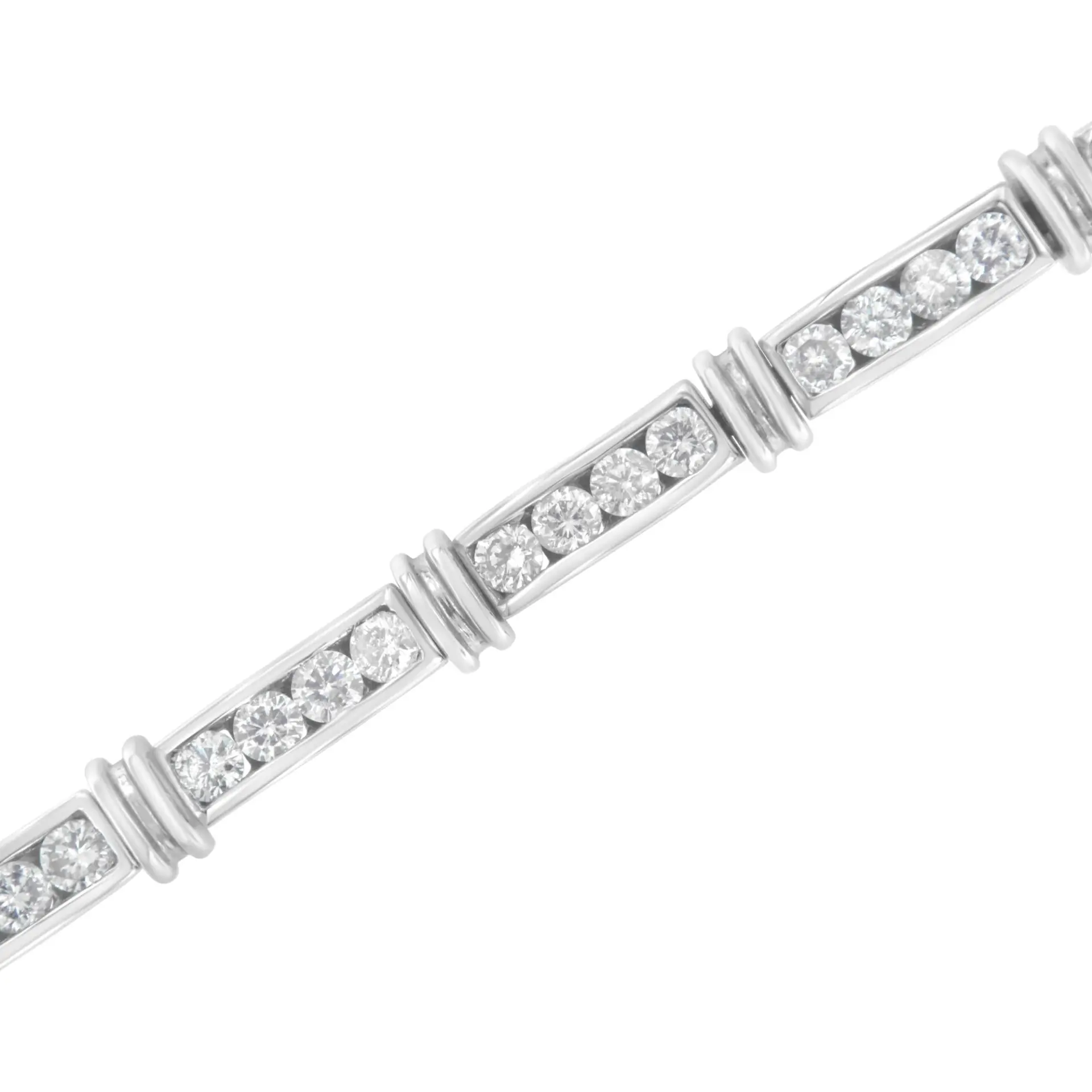 14K White Gold 6 3/4 Cttw Diamond 4 Stone Link Bracelet (H-I Color, I1-I2 Clarity) – 7″ Inches
