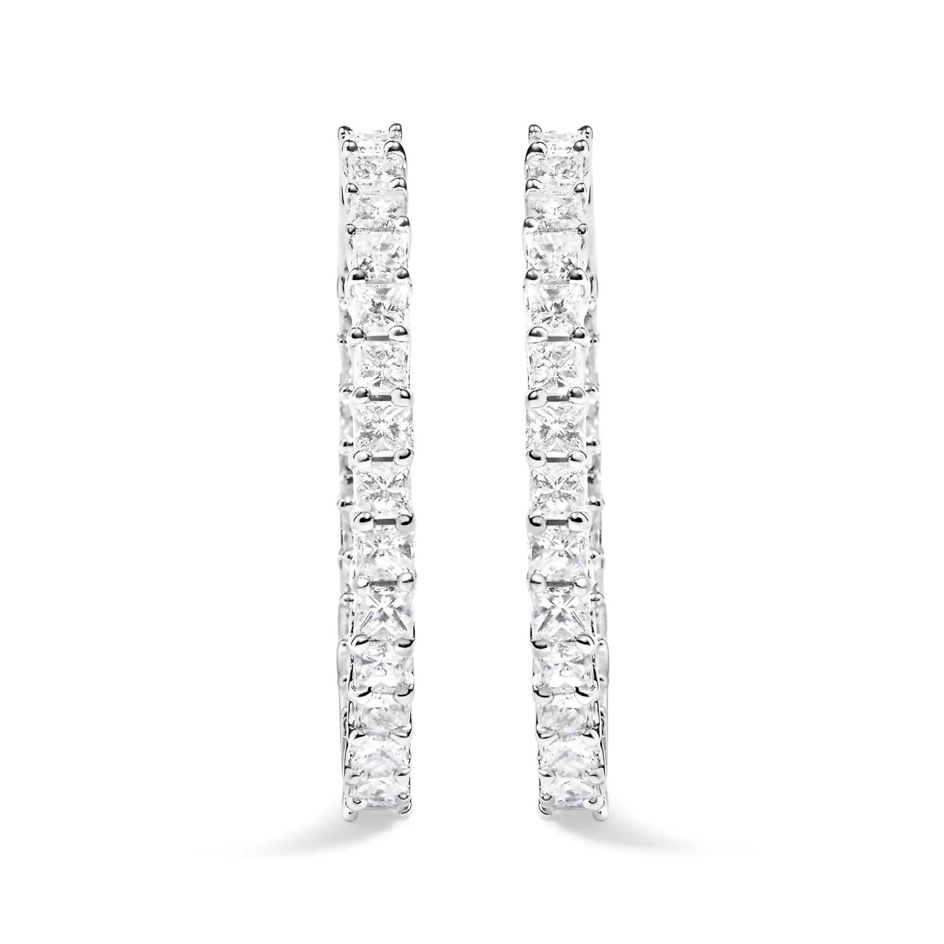 14K White Gold Natural Princess Cut Diamond Inside Out Hoop Earrings (G-H Color, SI2-I1 Clarity)
