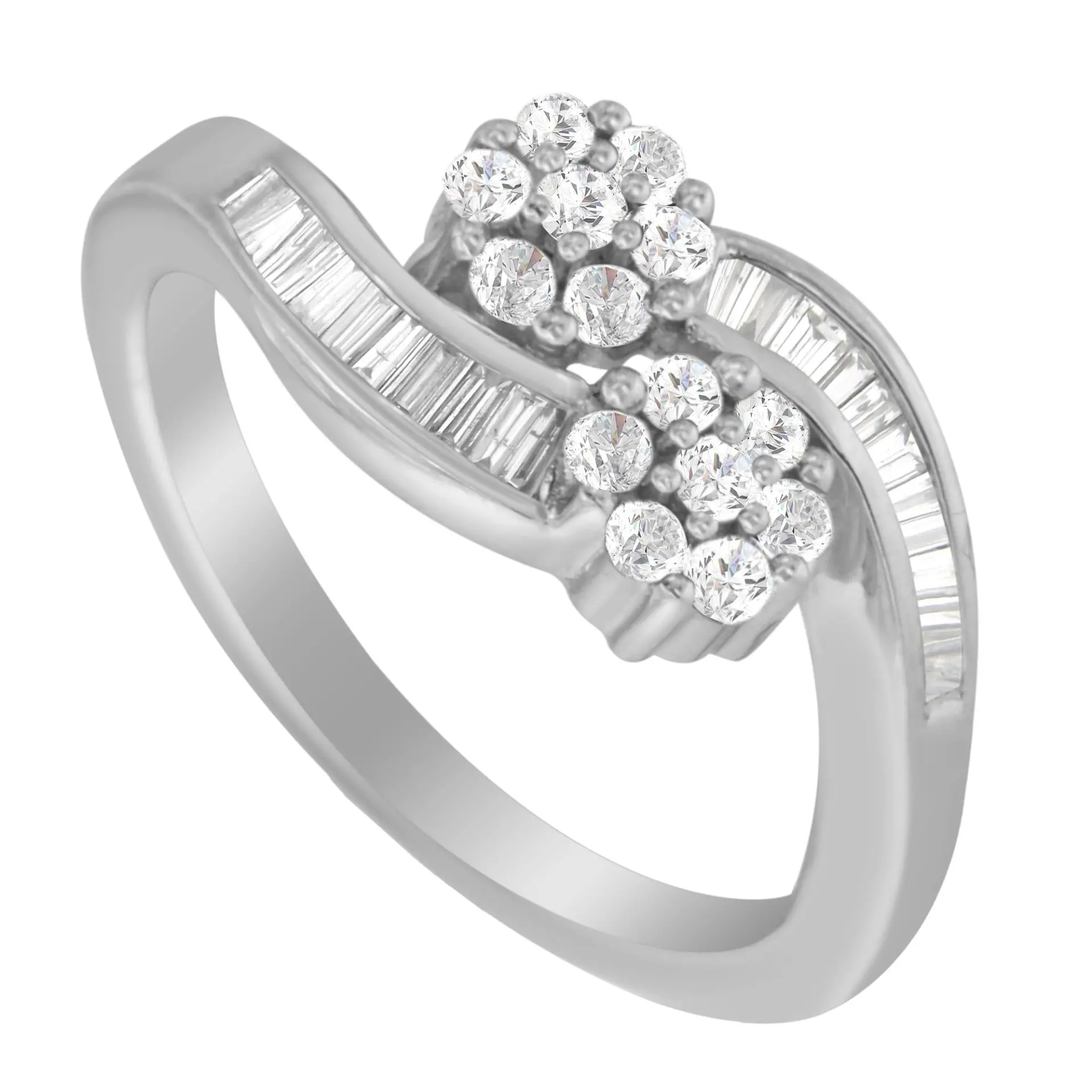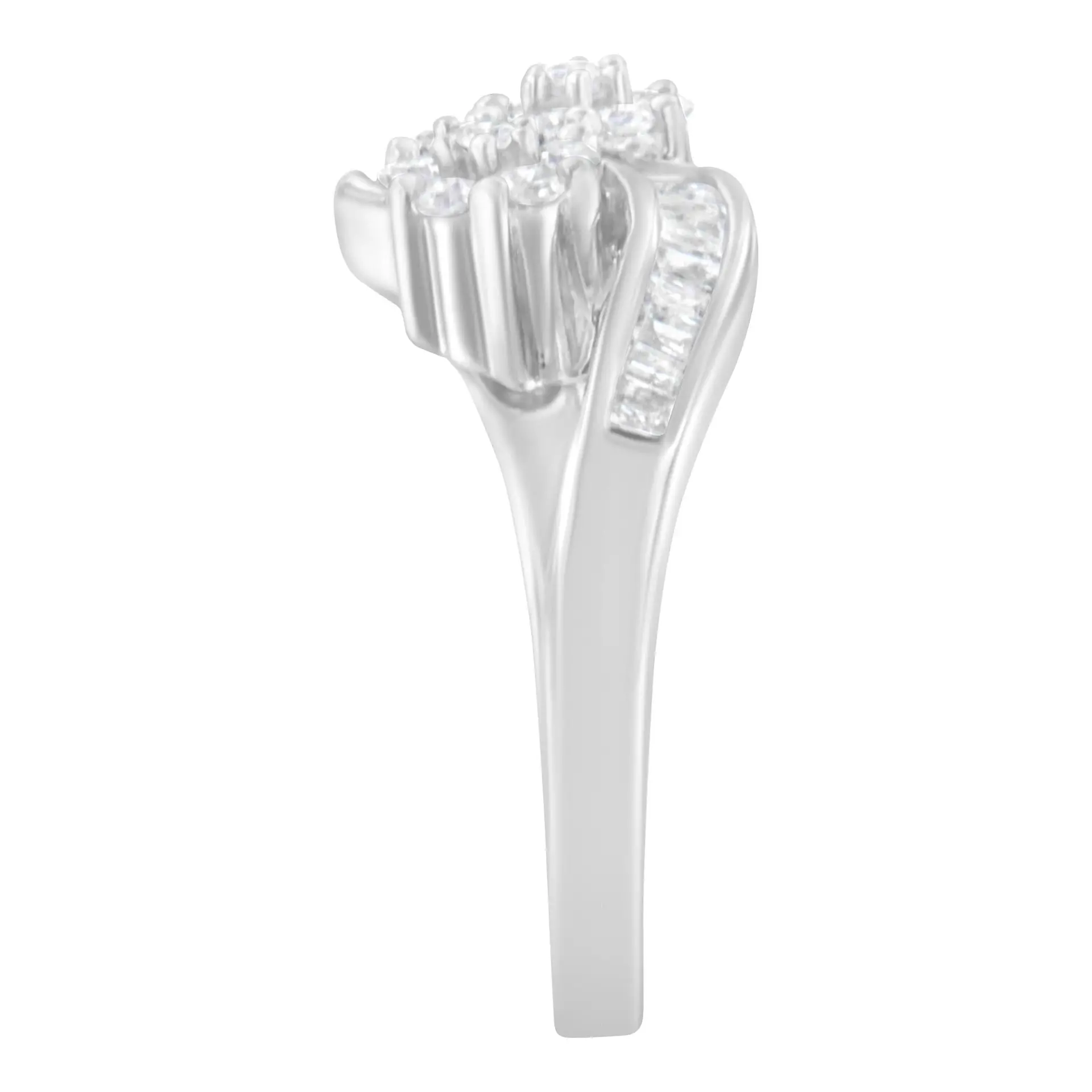 Mark an ever-lasting impression on your guests with the beauty of this spellbinding diamond ring. Fashioned in 14k white gold, this fashion ring is designed to meet the expectations of the luxury lovers. The beautiful floral pattern of the round cut diamonds is buffed with the polished lustrous shine. Framed in prong setting, this diamond ring becomes a unique display of beauty and artistry.