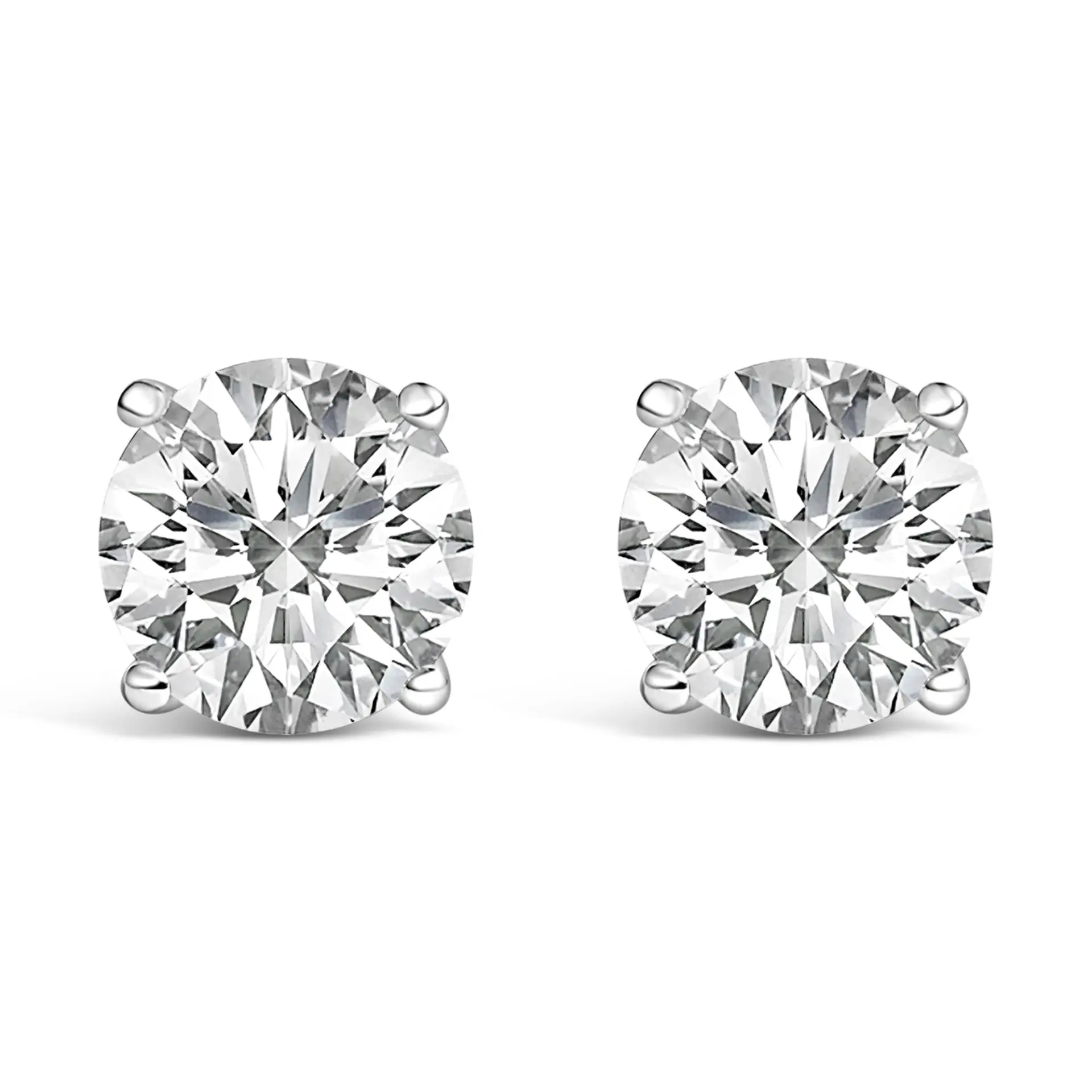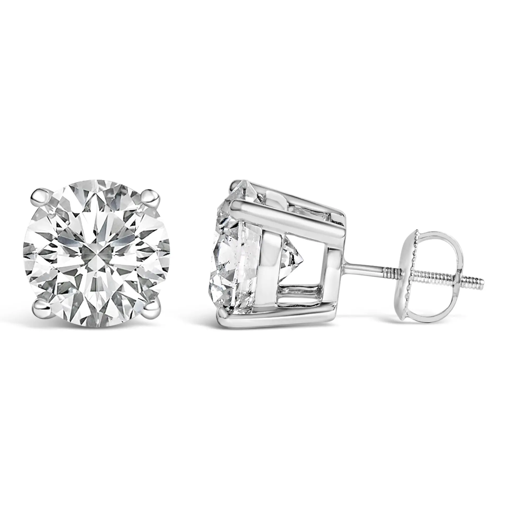 Add a touch of elegance and sophistication to your wardrobe with these classic round brilliant-cut lab-grown diamond stud earrings. Crafted from luxurious 14K white gold, these earrings showcase a total weight of 4.00 cttw of lab-grown diamonds, boasting impeccable G-H color and VS1-VS2 clarity. Expertly set in a 4-prong setting, each diamond is secured with screw backs, ensuring their safety and longevity. These lab-grown round diamond studs will effortlessly elevate any outfit, from casual to formal, making them a versatile and essential addition to your jewelry collection. These earrings are perfect for gift-giving or for treating yourself to a timeless treasure. Don’t miss out on the opportunity to own these stunning pieces of jewelry.