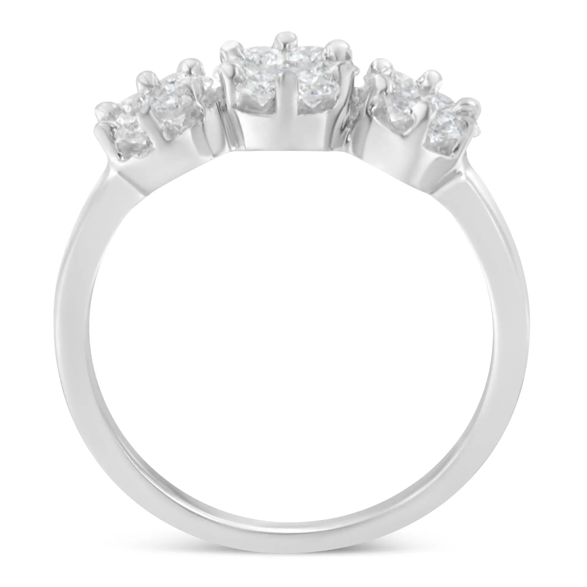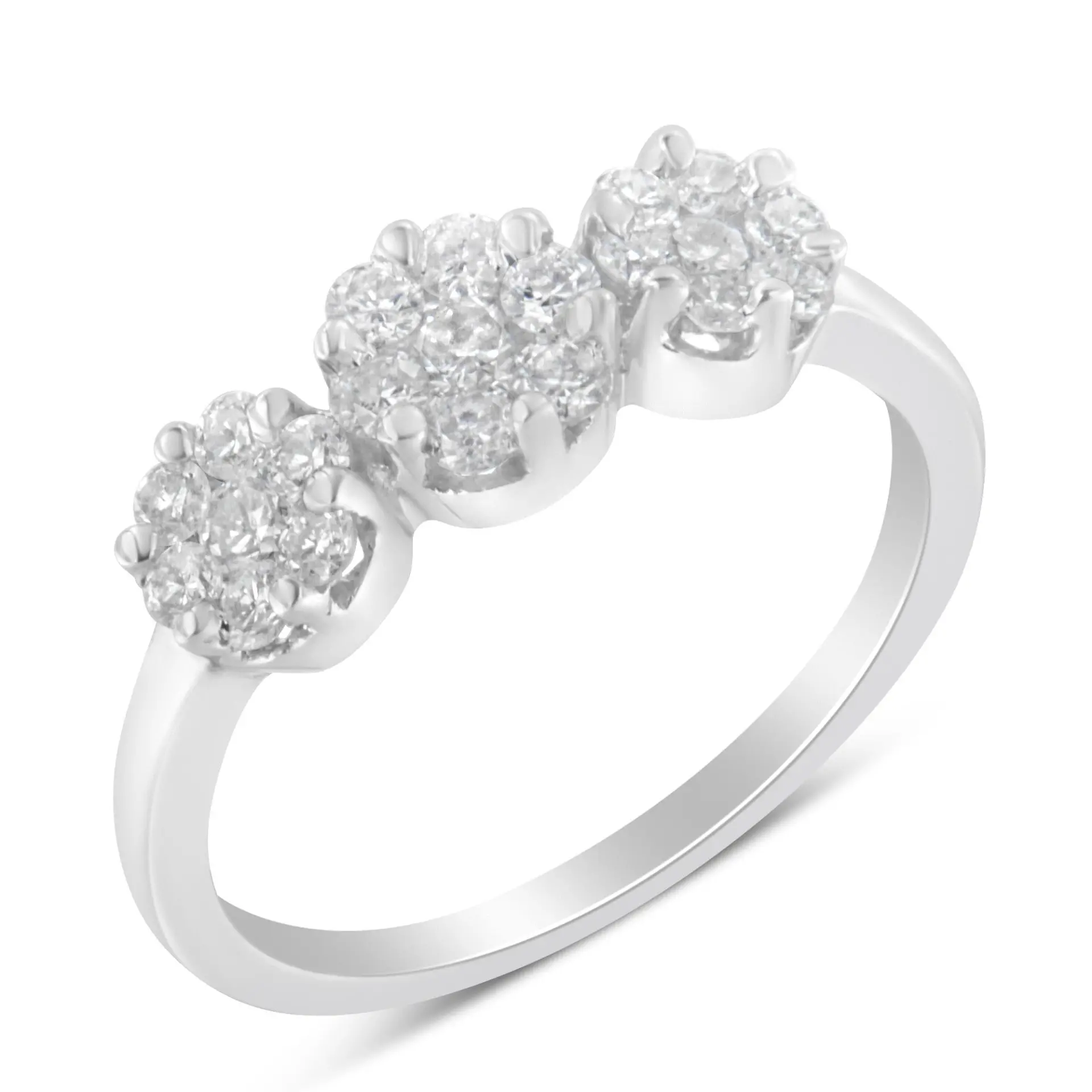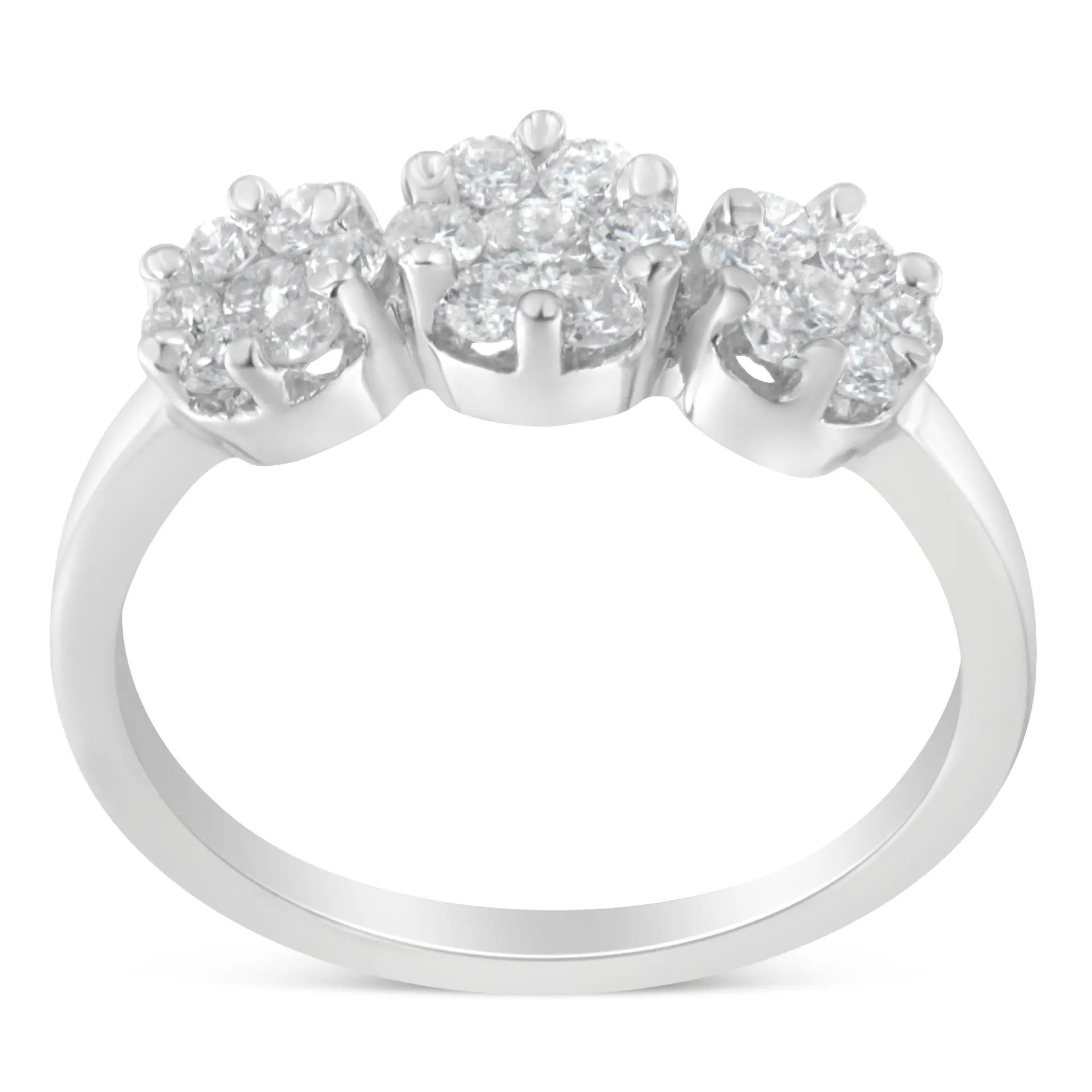 14K White Gold Three-Stone Cluster Diamond Ring (0.7 Cttw, H-I Color, SI2-I1 Clarity)